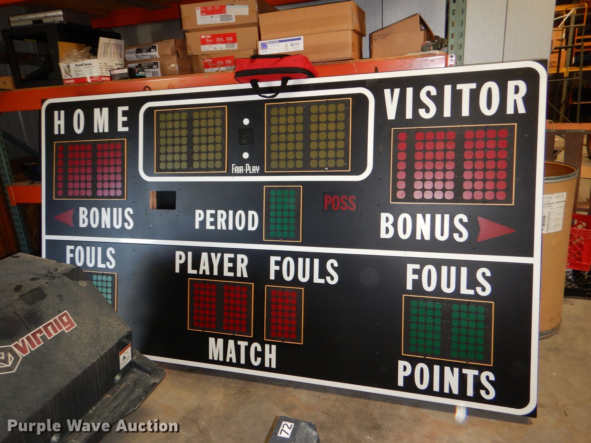Purple Wave is selling a used Sporting Goods in Kansas. This item is a Fair-Play scoreboard with the following: 9' x 5', Controls