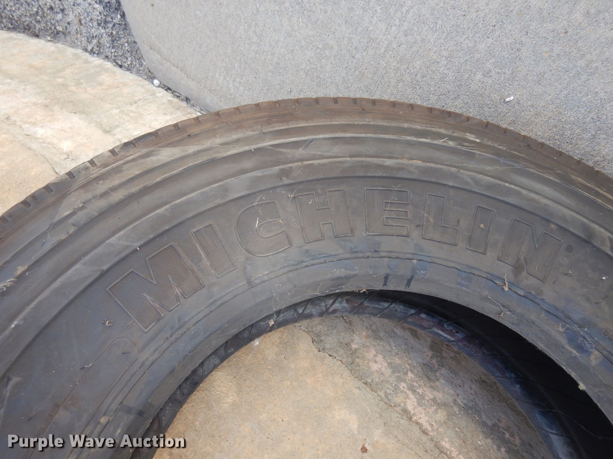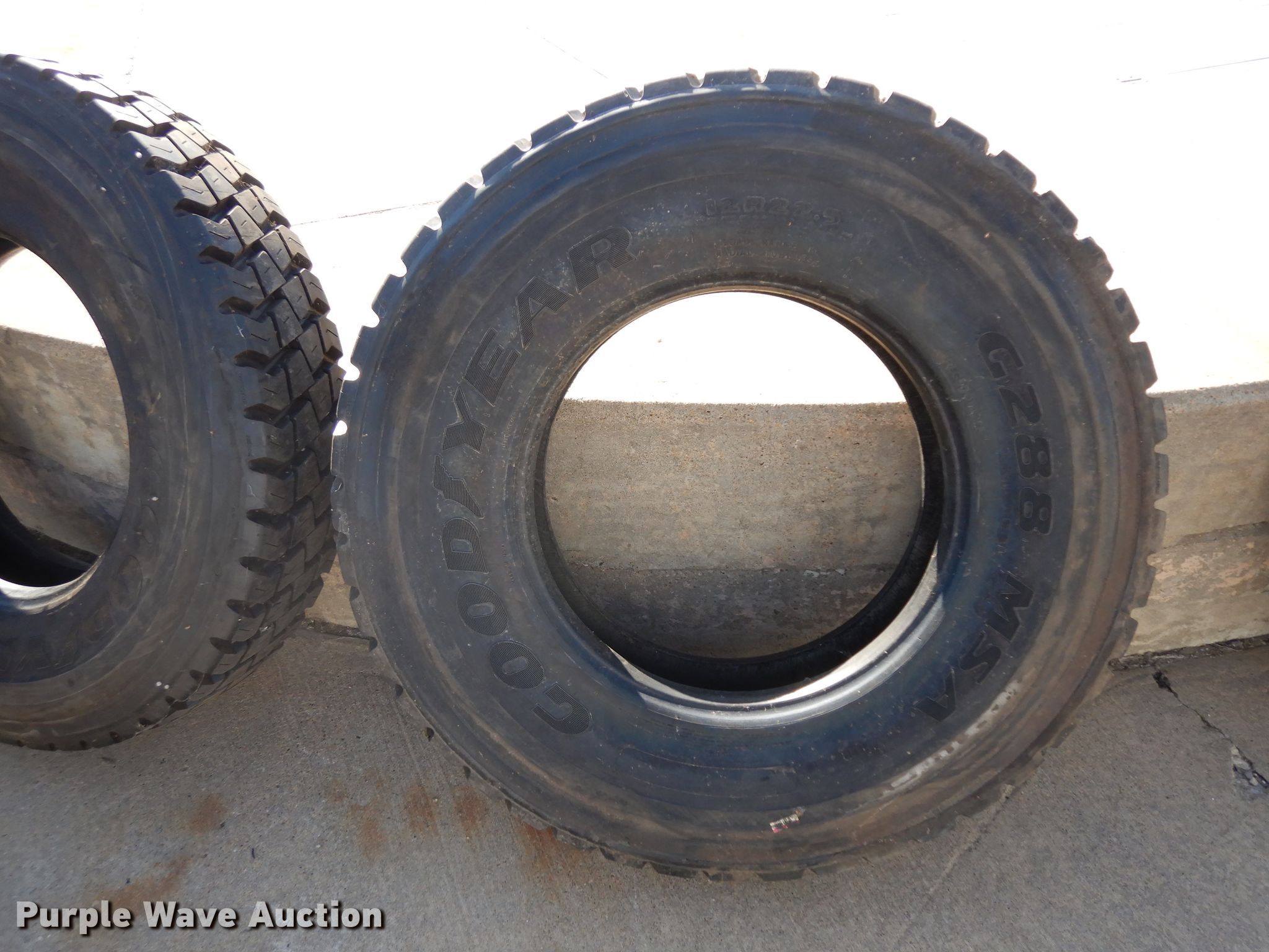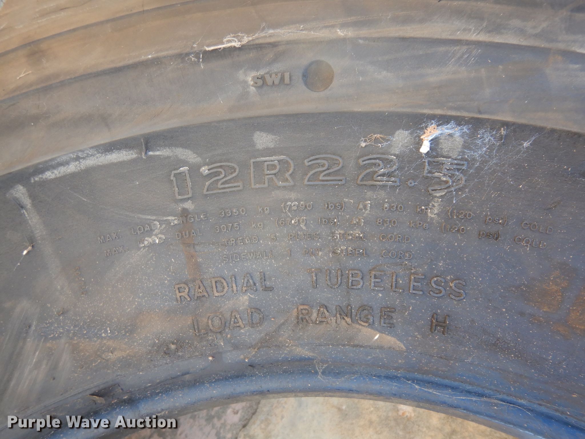 Purple Wave is selling a used Fleet Tires in Kansas. This item is a (4) recapped tires with the following: Goodyear G149 RSA 12R22.5, Goodyear G288 MSA 12R22.5, (2) Michelin XZE 12R22.5