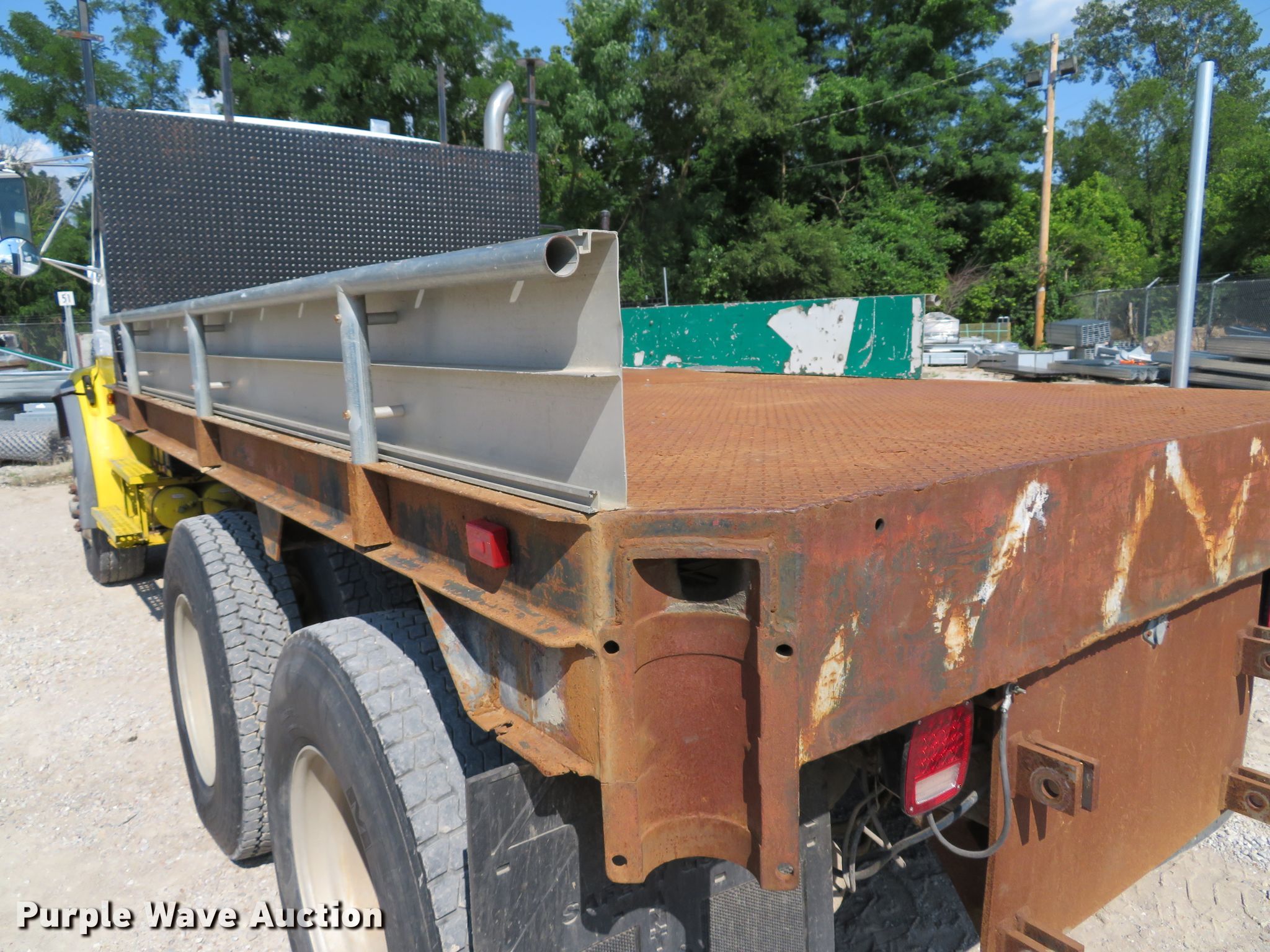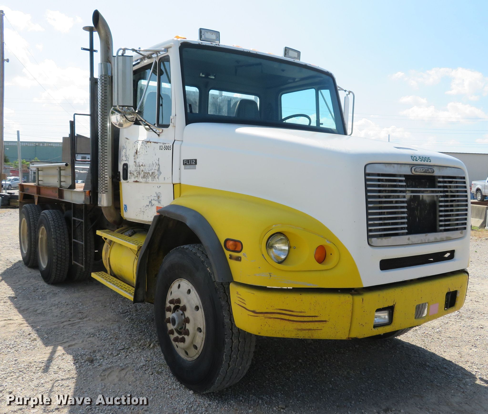 Purple Wave is selling a used Flat Bed Truck in Missouri. This item is a 1998 Freightliner FL112 flatbed truck with the following: 4,574 miles on odometer, 17,775 miles on hubodometer, Approx. 300,000 total miles, 1,457 hours on meter, Cummins M11 six cylinder diesel engine, 370 HP, Eaton Fuller nine speed manual transmission, Tandem axle, AC and heat, 13.5'L x 93"W flatbed, Removable sides, Spring suspension, Air brakes, Engine brake, 181" wheelbase, 315/80R22.5 front tires, 11R22.5 rear tires, GVWR 75,000 lbs, PTO pump has been removed, AC does not blow cold, Unit# 02-5005