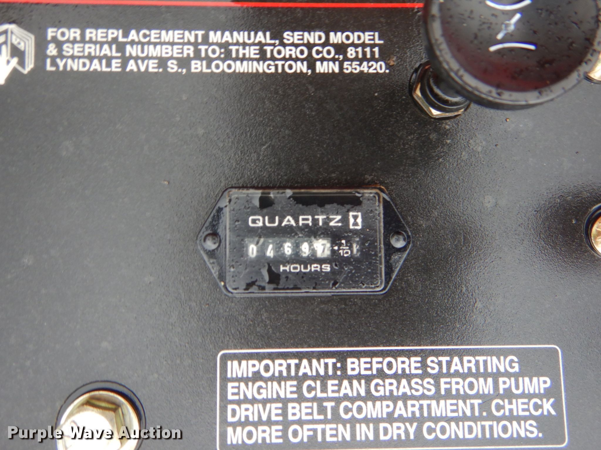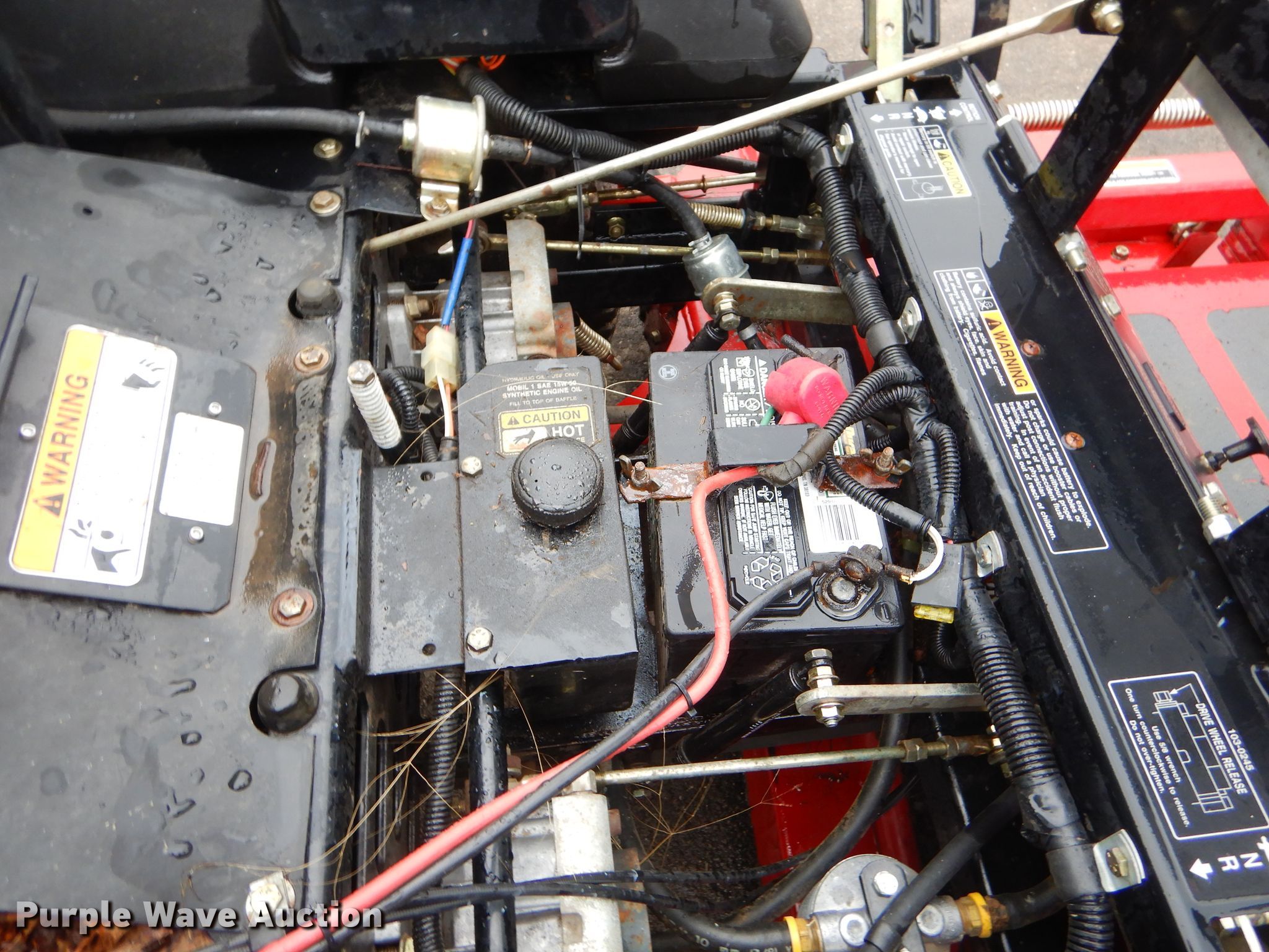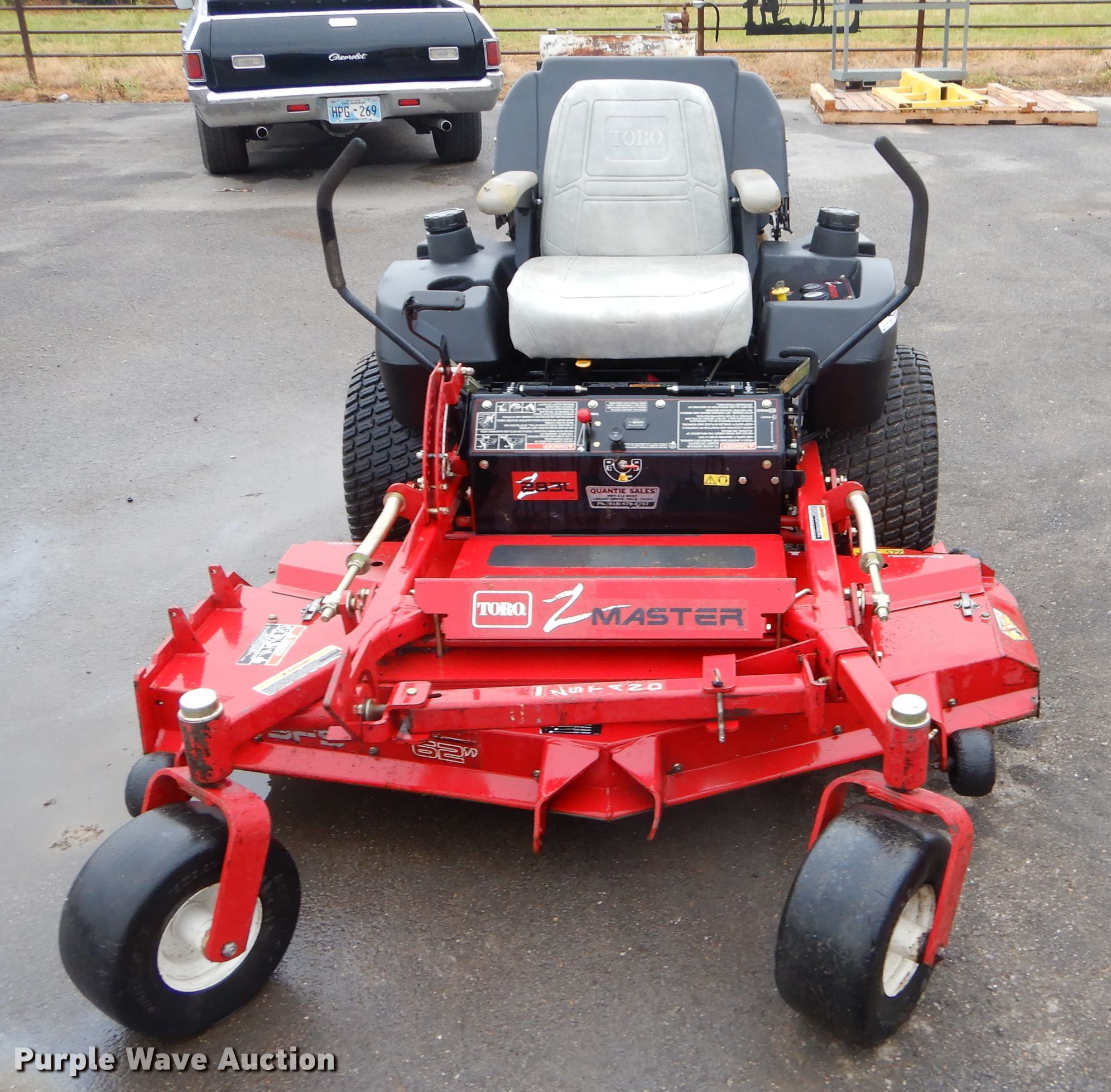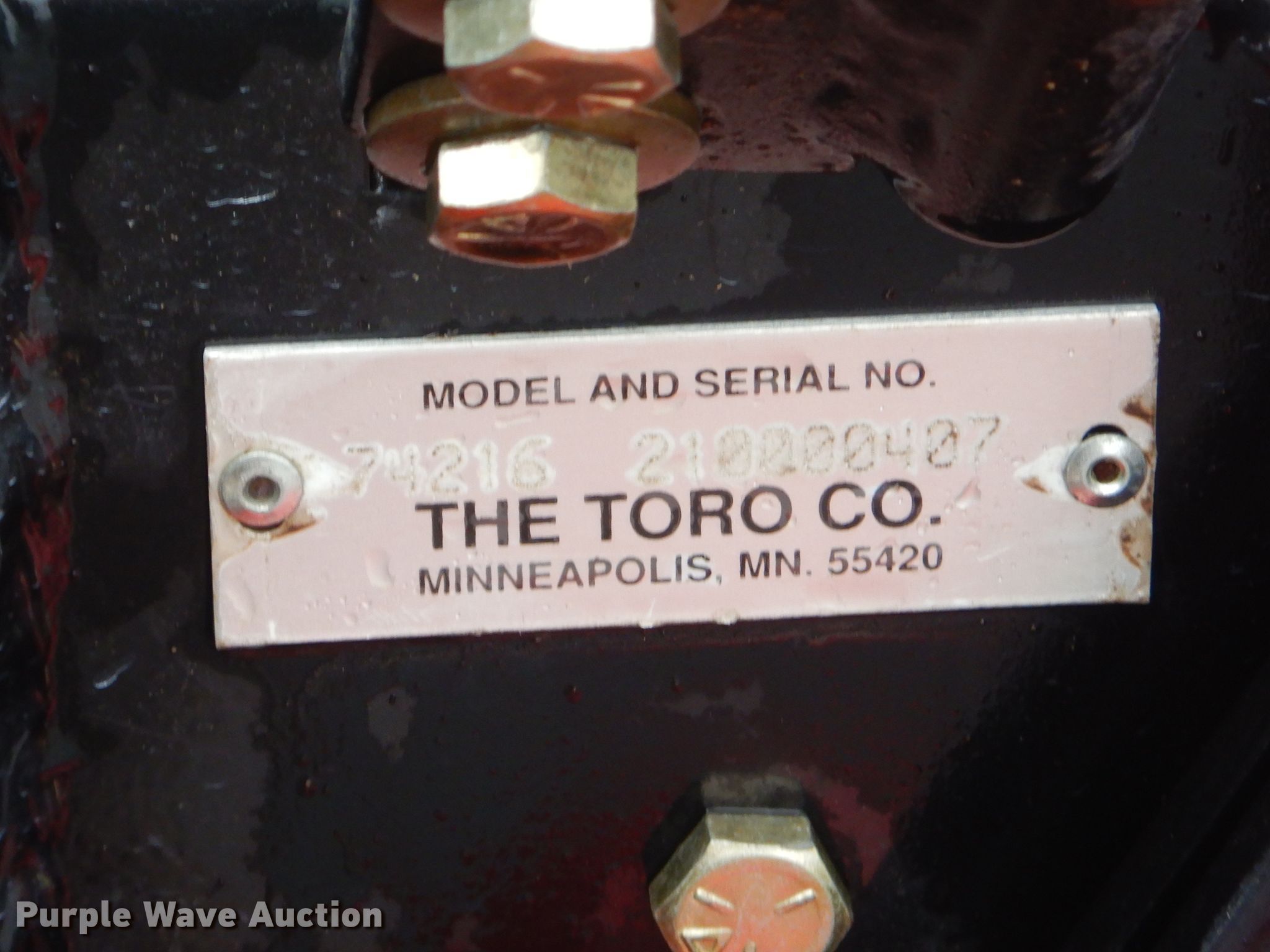 Purple Wave is selling a used Commercial Turf Mower in Oklahoma. This item is a Toro 74216 ZTR lawn mower with the following: 469 hours on meter, 62"W deck, Two cylinder gas engine, Hydrostatic transmission, 13 x 6.50-6 front tires, 24 x 12-12 rear tires, Serial 210000407