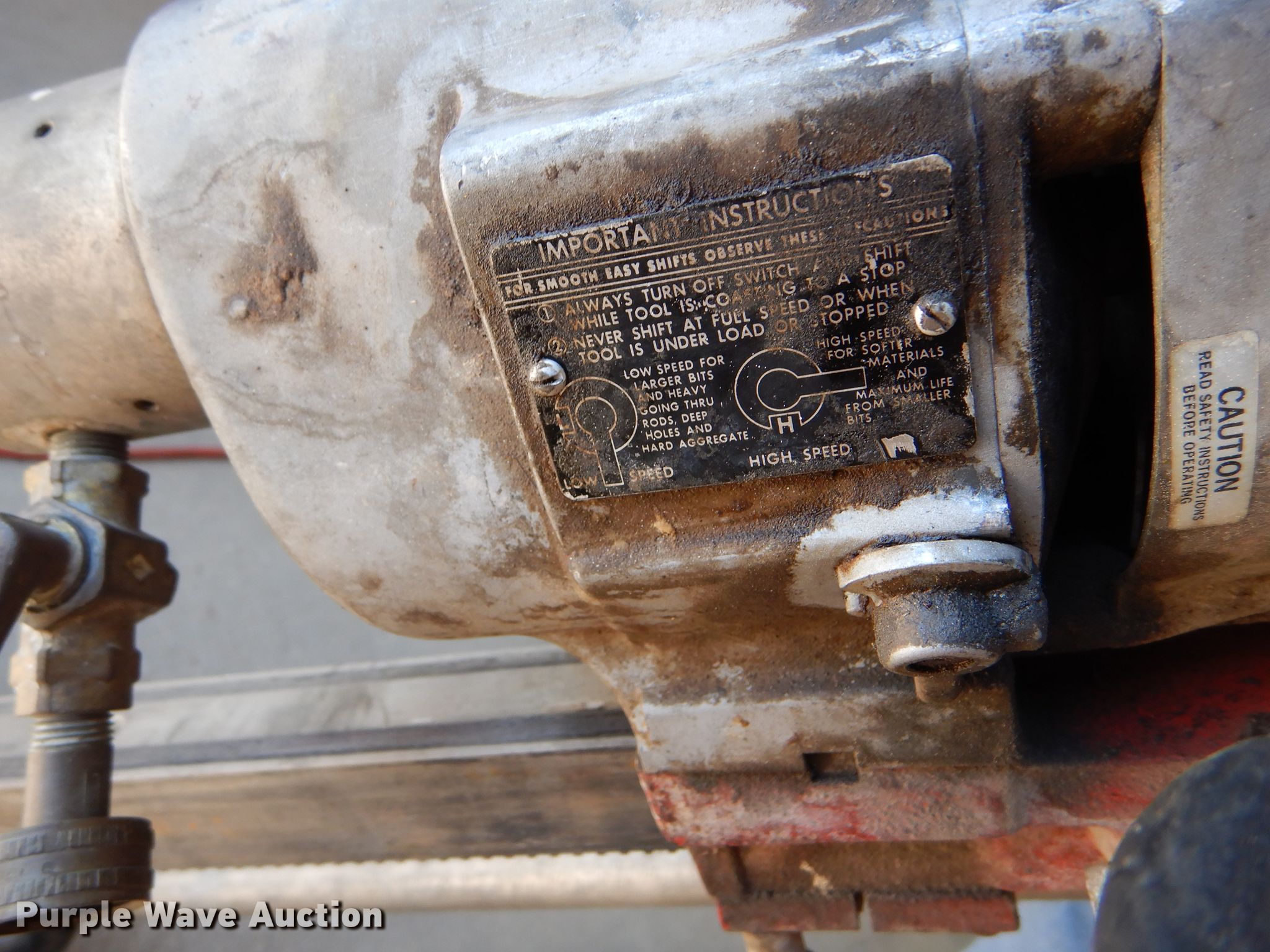 Purple Wave is selling a used Tools in Kansas. This item is a Milwaukee core drill with the following: 10" capacity, 120V, 20 amp, Two speed, Serial 5581107