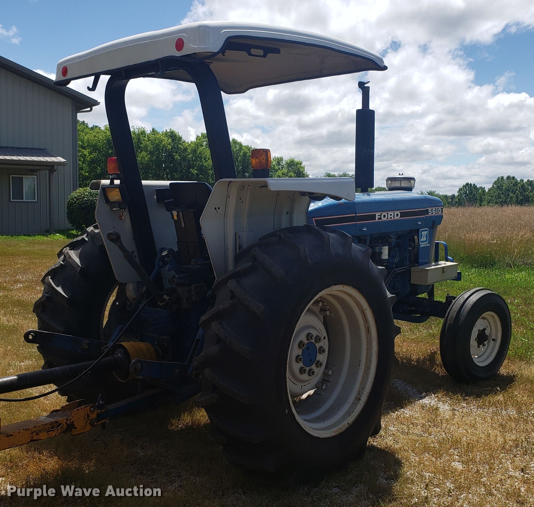 Purple Wave is selling a used Tractor in Missouri. This item is a Ford 5610 tractor with the following: 1,608 hours on meter, Four cylinder diesel engine, Manual transmission, 8F-2R gears, Three point, Top link, 540 PTO, (2) rear hydraulic remotes, 7.50-15 front tires, 16.9-30 rear tires, Mower not included