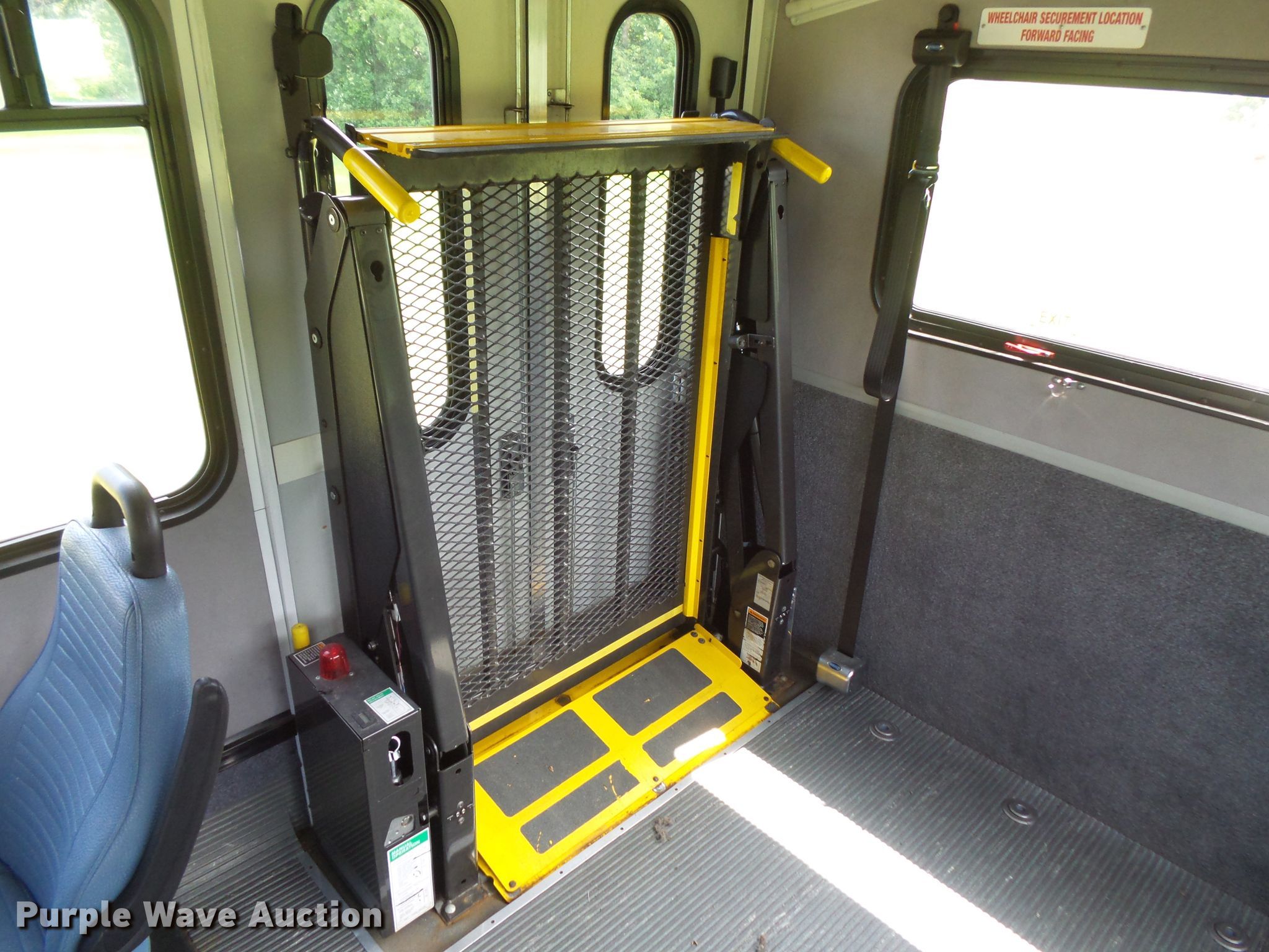 Purple Wave is selling a used Bus in Minnesota. This item is a 2013 Ford Econoline E350 shuttle bus with the following: 228,677 miles on odometer, 3,719 hours on meter, 5.4L V8 SOHC 16V FFV gas engine, Automatic transmission, Single axle, AC and heat, Electric passenger sliding door, Six passenger capacity, (6) adult seats, Wheelchair lift, Spring suspension, Hydraulic brakes, 138" wheelbase, 225/75R16 tires, GVWR 11,500 lbs