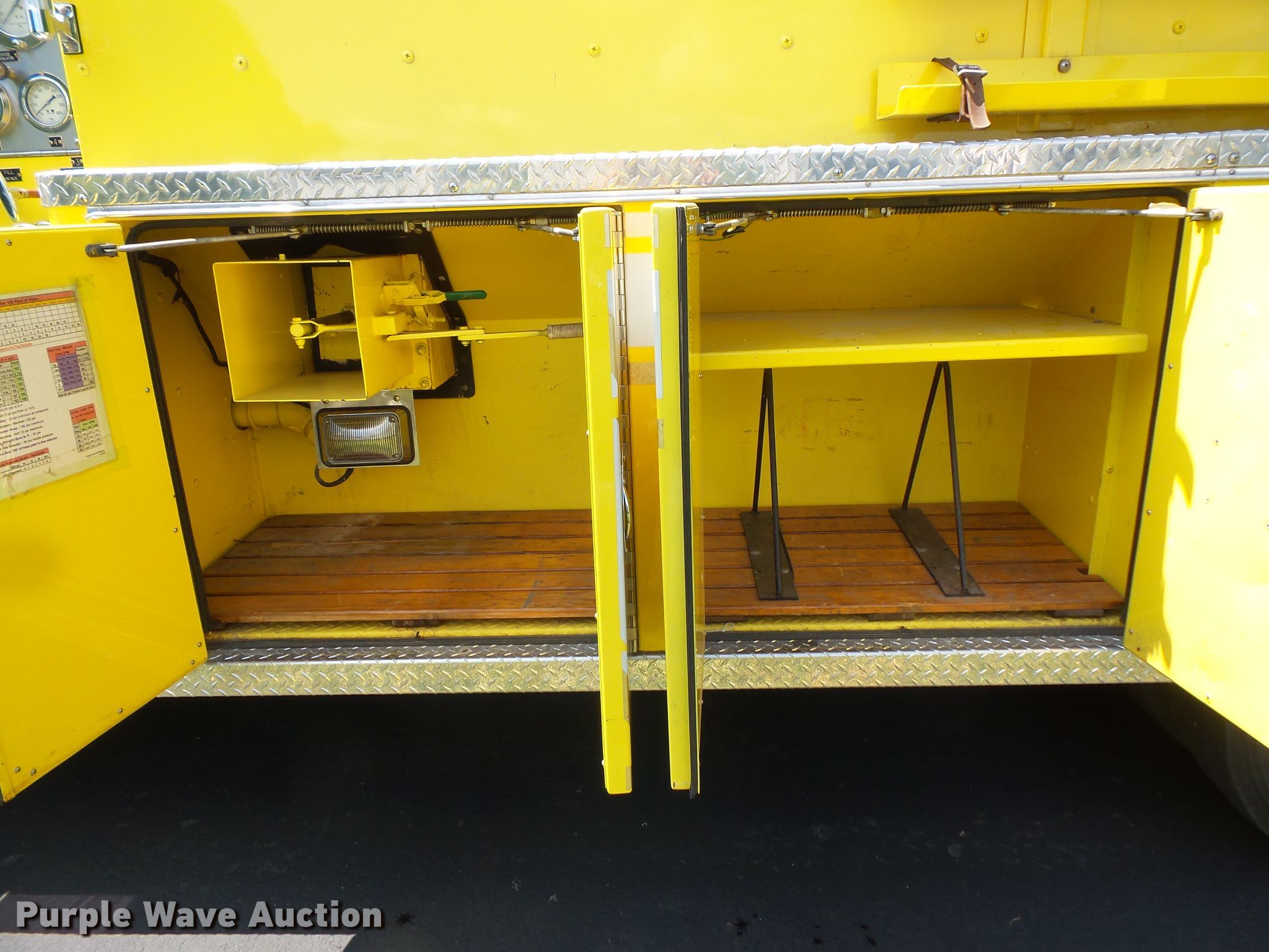 Purple Wave is selling a used Fire Truck or Emergency Vehicle in Minnesota. This item is a 1985 Ford 9000 pumper / tanker fire truck with the following: 22,948 miles on odometer, Detroit Diesel Silver 92 six cylinder diesel engine, Automatic transmission, Tandem axle, Heat, PTO, Approx. 3,000 gallon tank, Walking beam suspension, Air brakes, 215" wheelbase, 11R22.5 front tires, 295/75R22.5 rear tires, GVWR 52,000 lbs