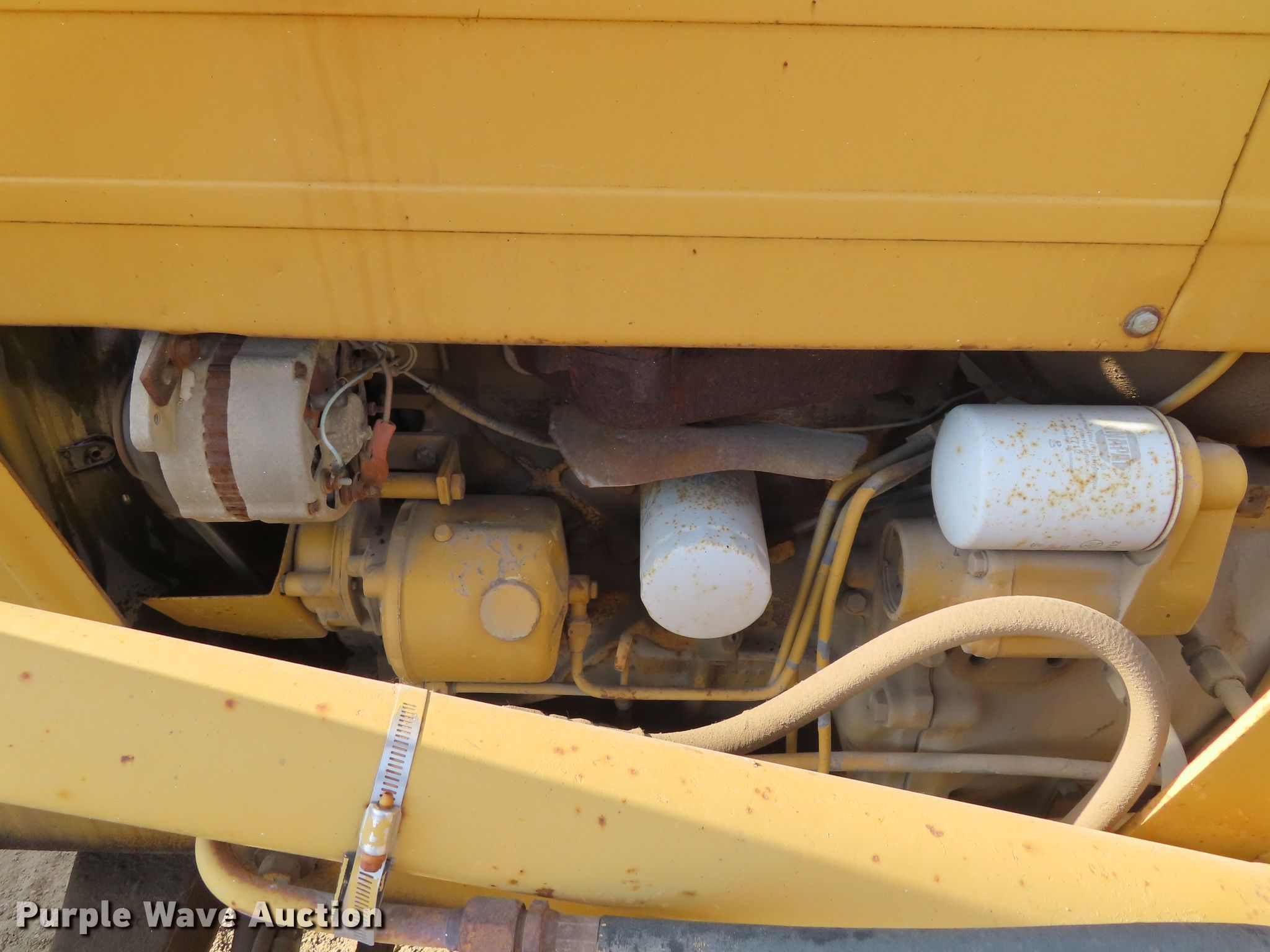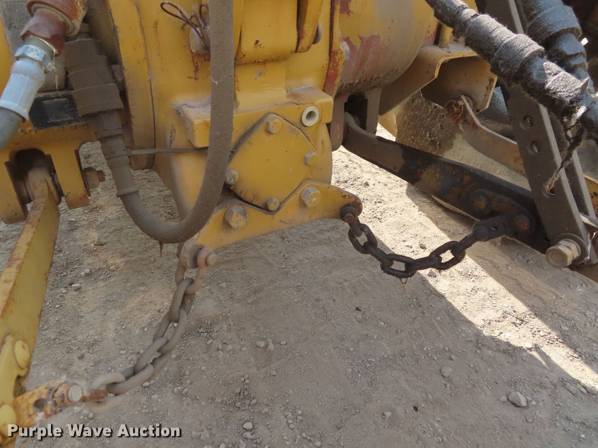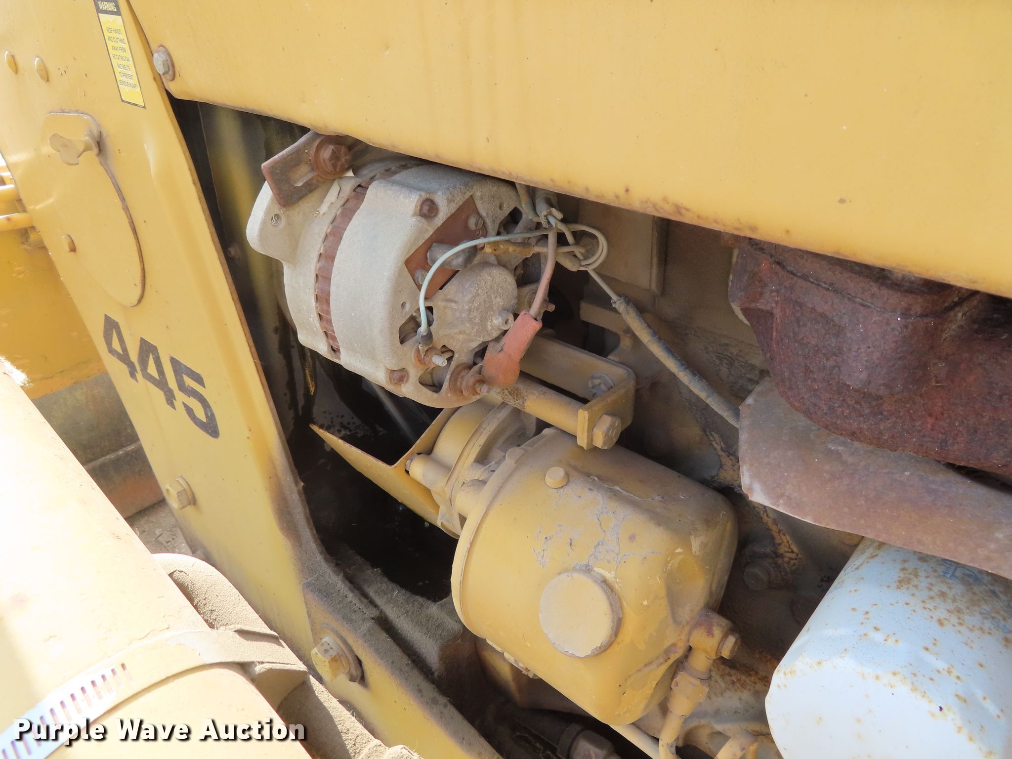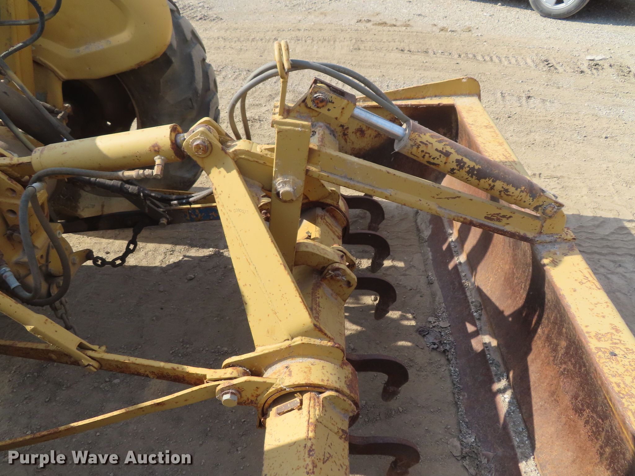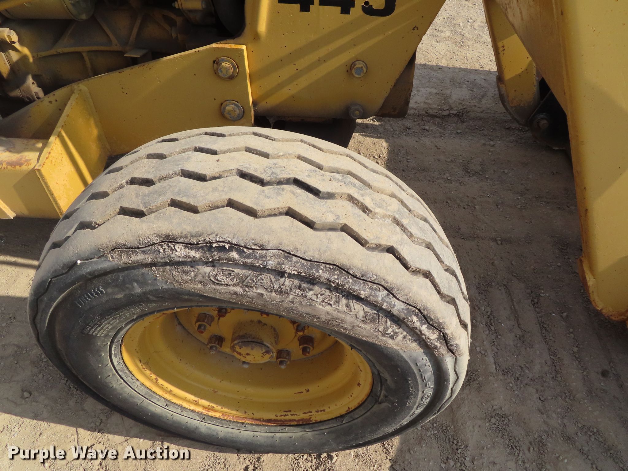 Purple Wave is selling a used Tractor in Kansas. This item is a Ford 445 tractor with the following: 2,190 hours on meter, Ford 3.0L three cylinder diesel engine, 4F-4R gears, Left-hand reverser, Ford 19-856 loader, 84"W bucket, Joystick controls, Three point, Top link, 80"W box blade, (8) shanks, Hydraulic shank control, Three point, 11L-16 front tires, 17.5-24 rear tires, Dead battery, Coolant leak, Serial C714642