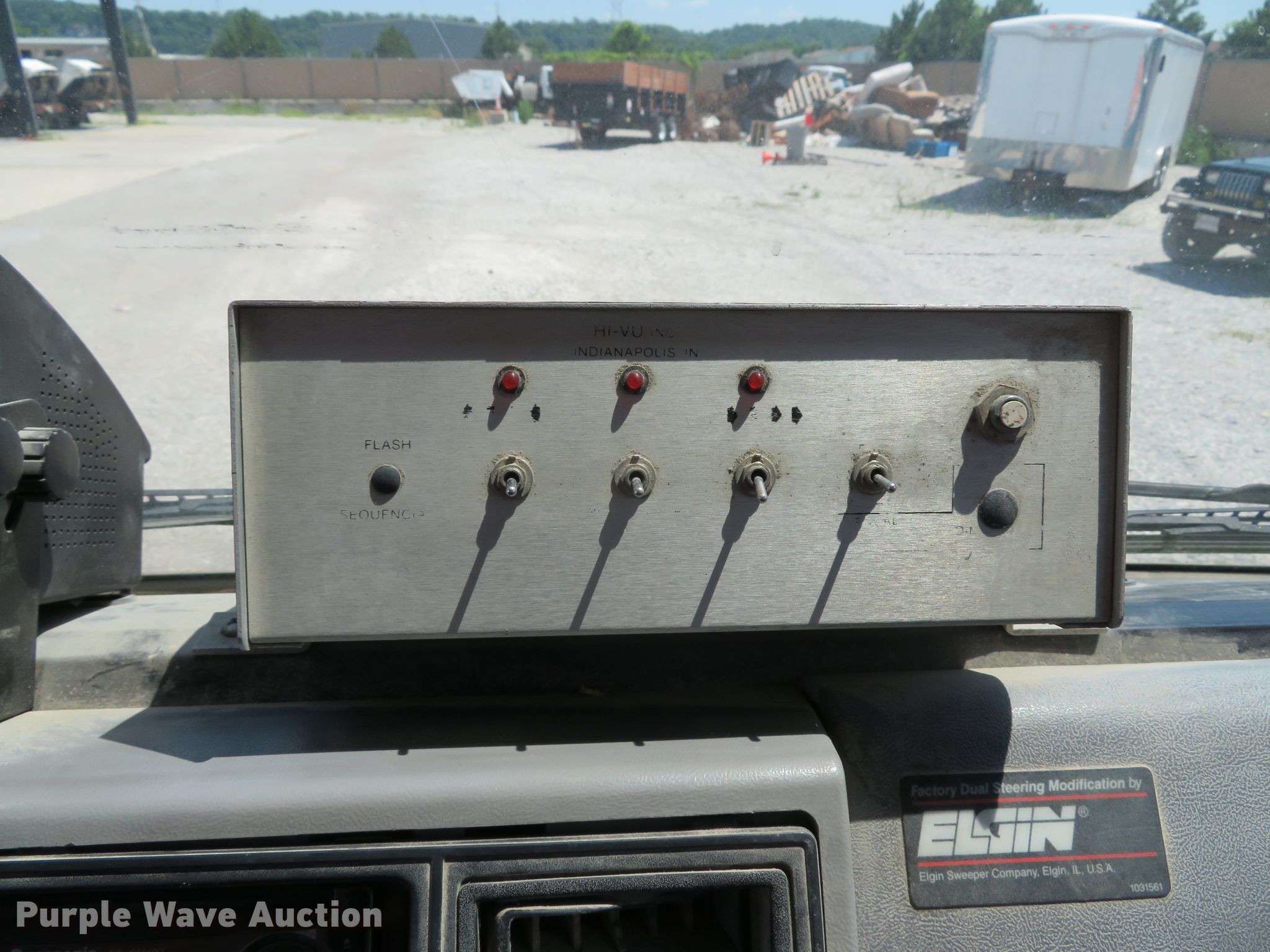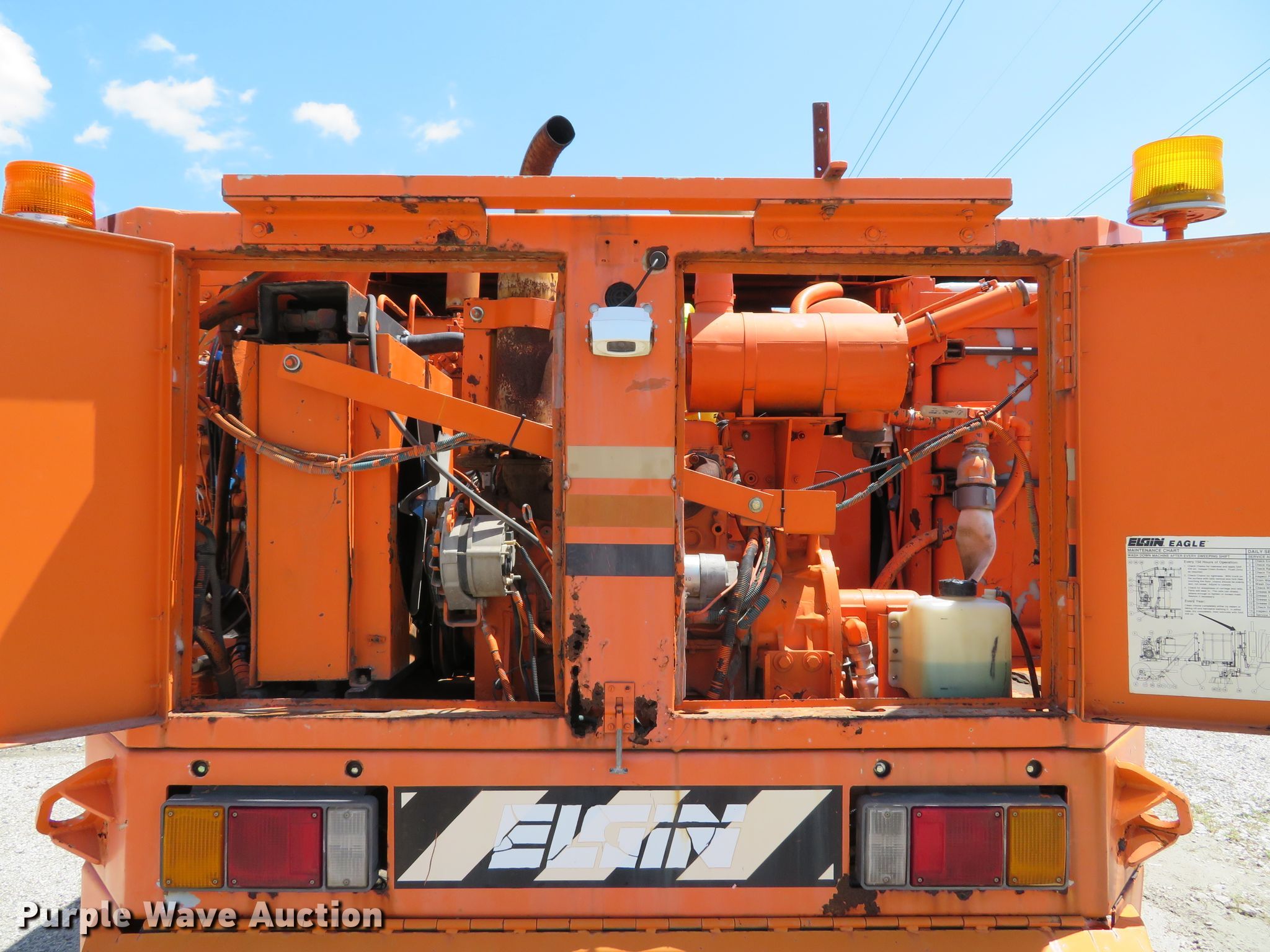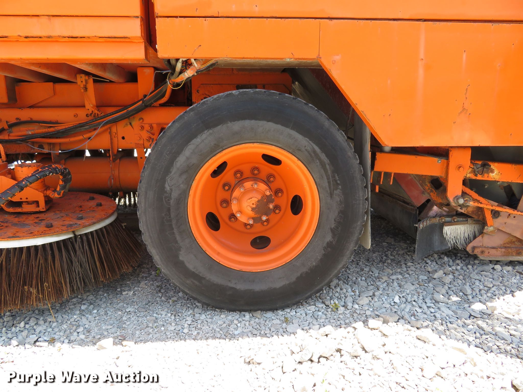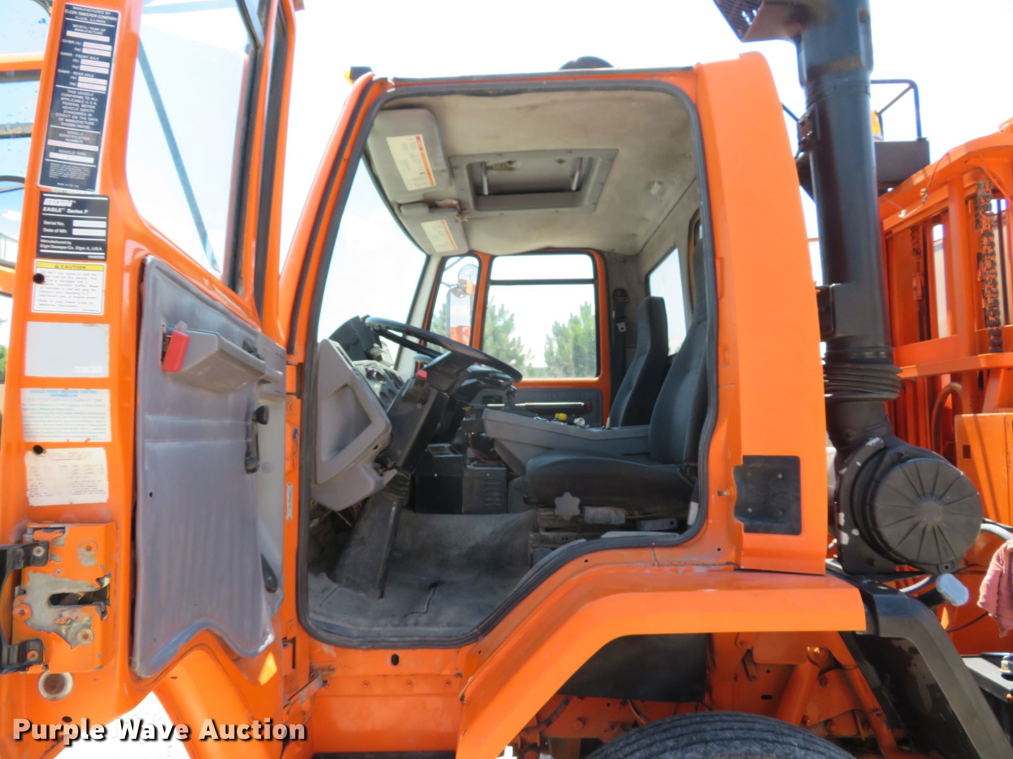 Purple Wave is selling a used Street Sweeper Truck in Illinois. This item is a 1997 Ford CF8000 street sweeper truck with the following: 60,115 miles on odometer, 5,926 hours on meter, Cummins B5.9-19 5.9L L6 diesel engine, 190 HP, Automatic transmission, AC and heat, AM/FM, Video monitoring system, Backup camera, 60"W broom, Water spray system, Elgin Ealge F series conveyor sweeper bed, 4.5 cu. yd. capacity, Isuzu four cylinder engine, 3,091 hours on meter, 36" diameter left gutter broom, 36" diameter right gutter broom, Serial F0772D, Air suspension, Air brakes, 11R22.5 tires, GVWR 32,000 lbs, Non-operational AC, Non-operational video monitoring system, Non-operational brooms, Rust in fuel tank, will only run temporary on fuel cans