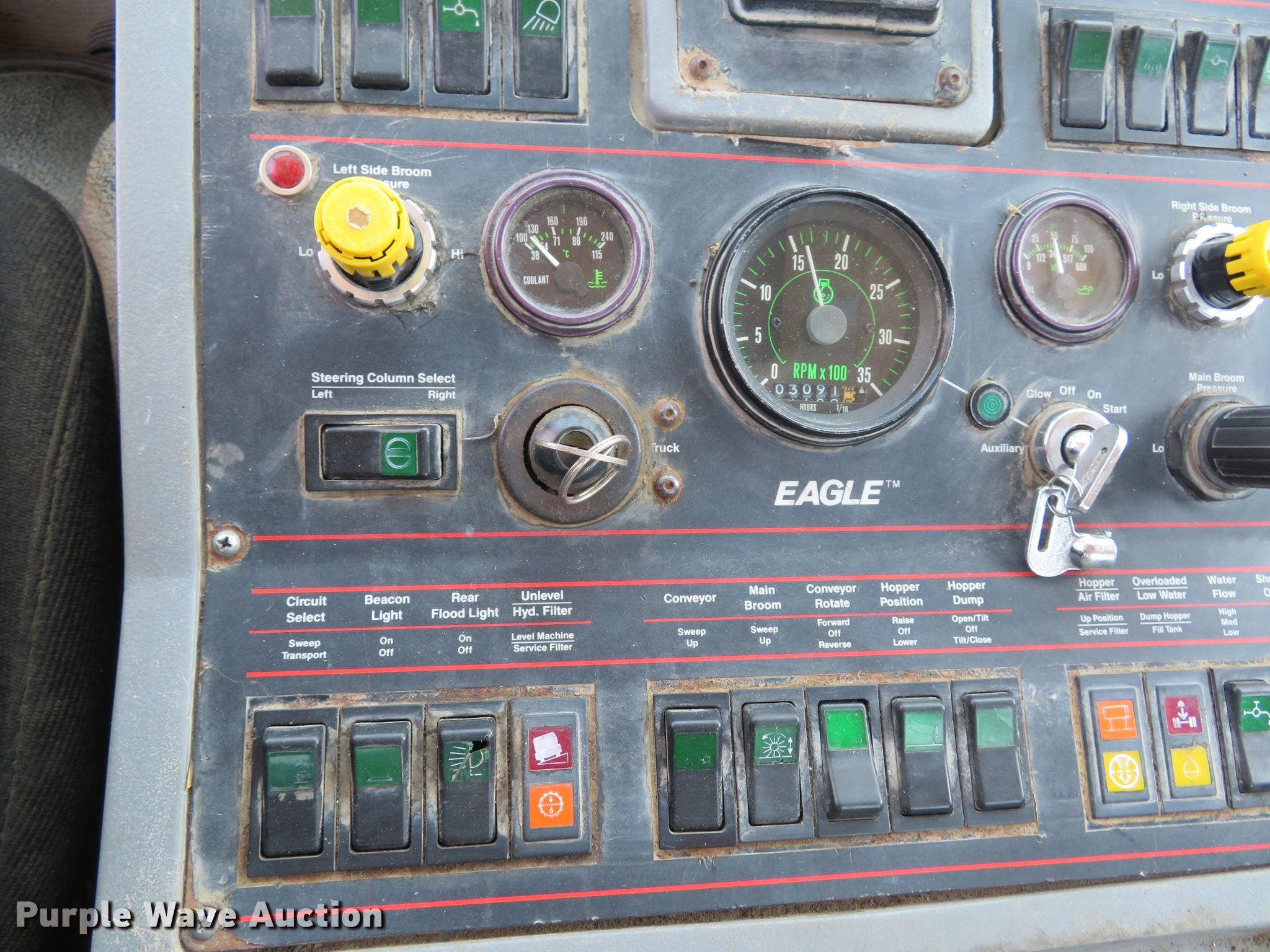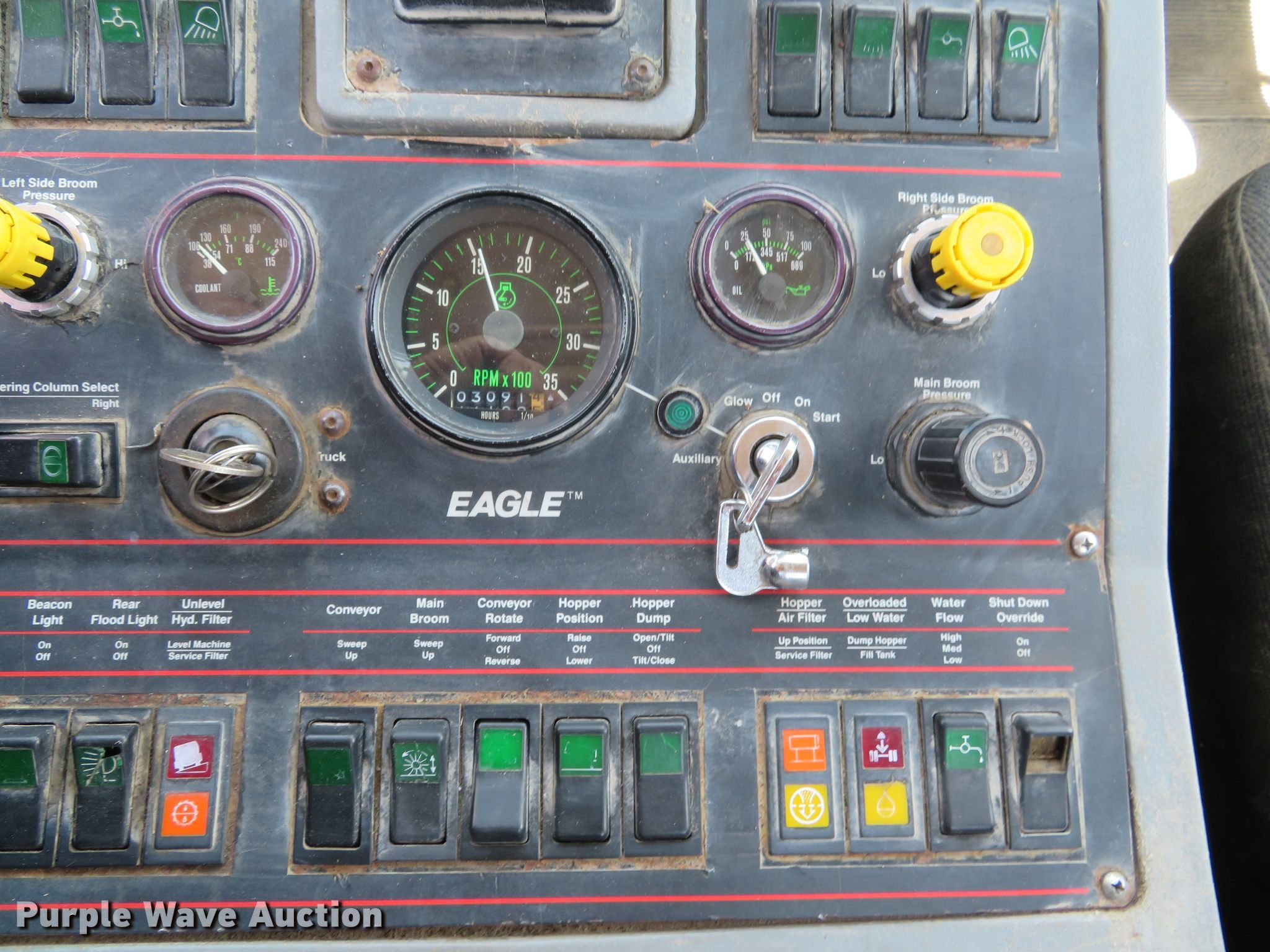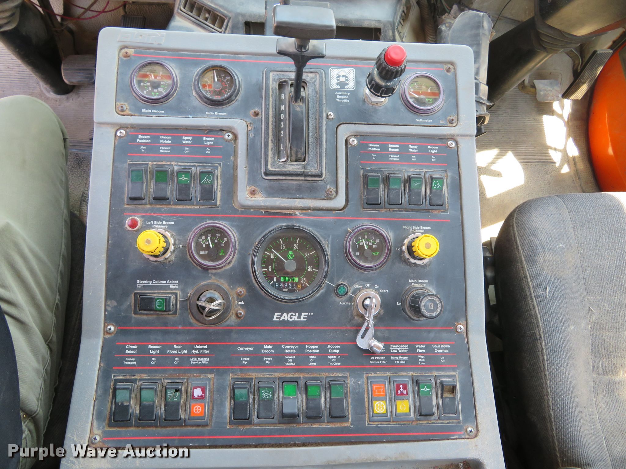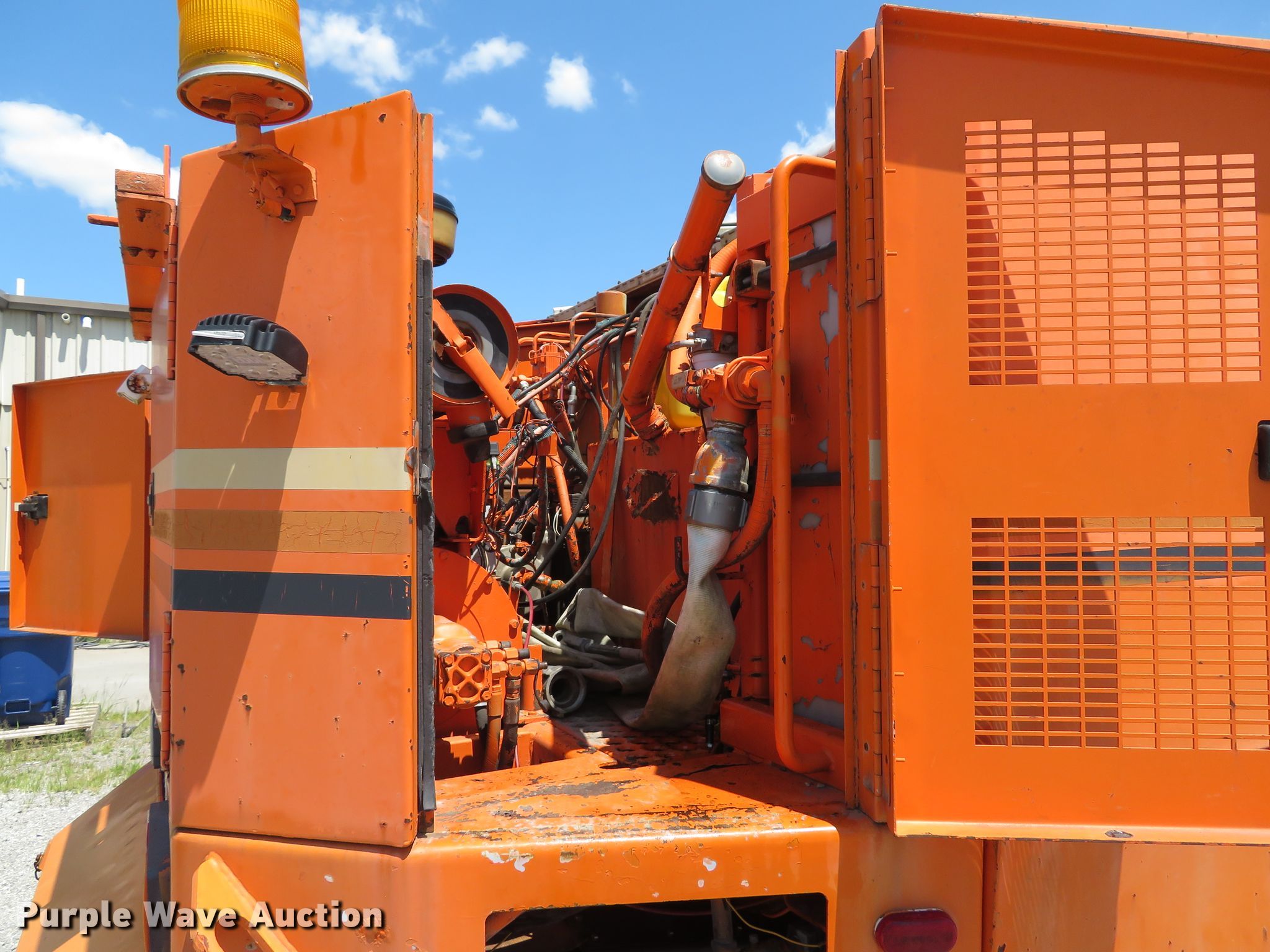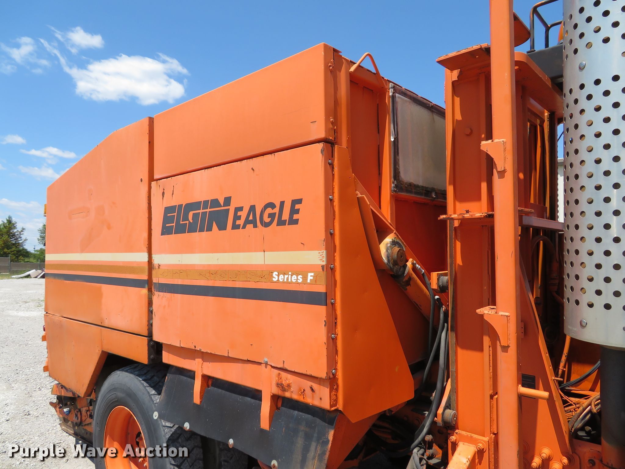 Purple Wave is selling a used Street Sweeper Truck in Illinois. This item is a 1997 Ford CF8000 street sweeper truck with the following: 60,115 miles on odometer, 5,926 hours on meter, Cummins B5.9-19 5.9L L6 diesel engine, 190 HP, Automatic transmission, AC and heat, AM/FM, Video monitoring system, Backup camera, 60"W broom, Water spray system, Elgin Ealge F series conveyor sweeper bed, 4.5 cu. yd. capacity, Isuzu four cylinder engine, 3,091 hours on meter, 36" diameter left gutter broom, 36" diameter right gutter broom, Serial F0772D, Air suspension, Air brakes, 11R22.5 tires, GVWR 32,000 lbs, Non-operational AC, Non-operational video monitoring system, Non-operational brooms, Rust in fuel tank, will only run temporary on fuel cans