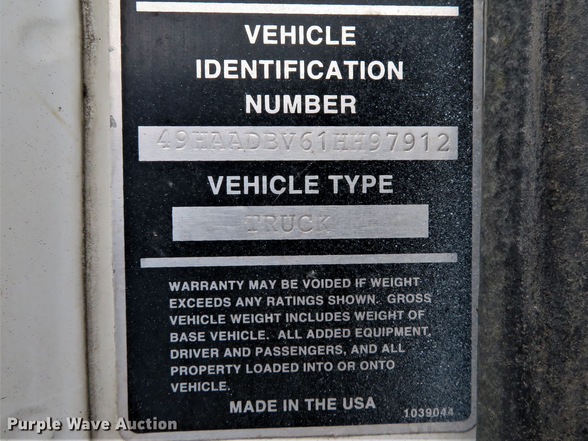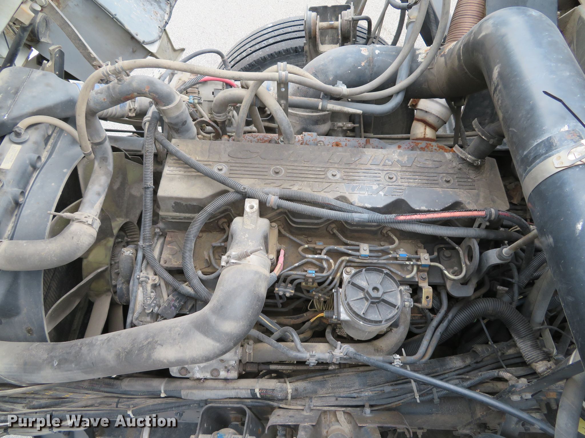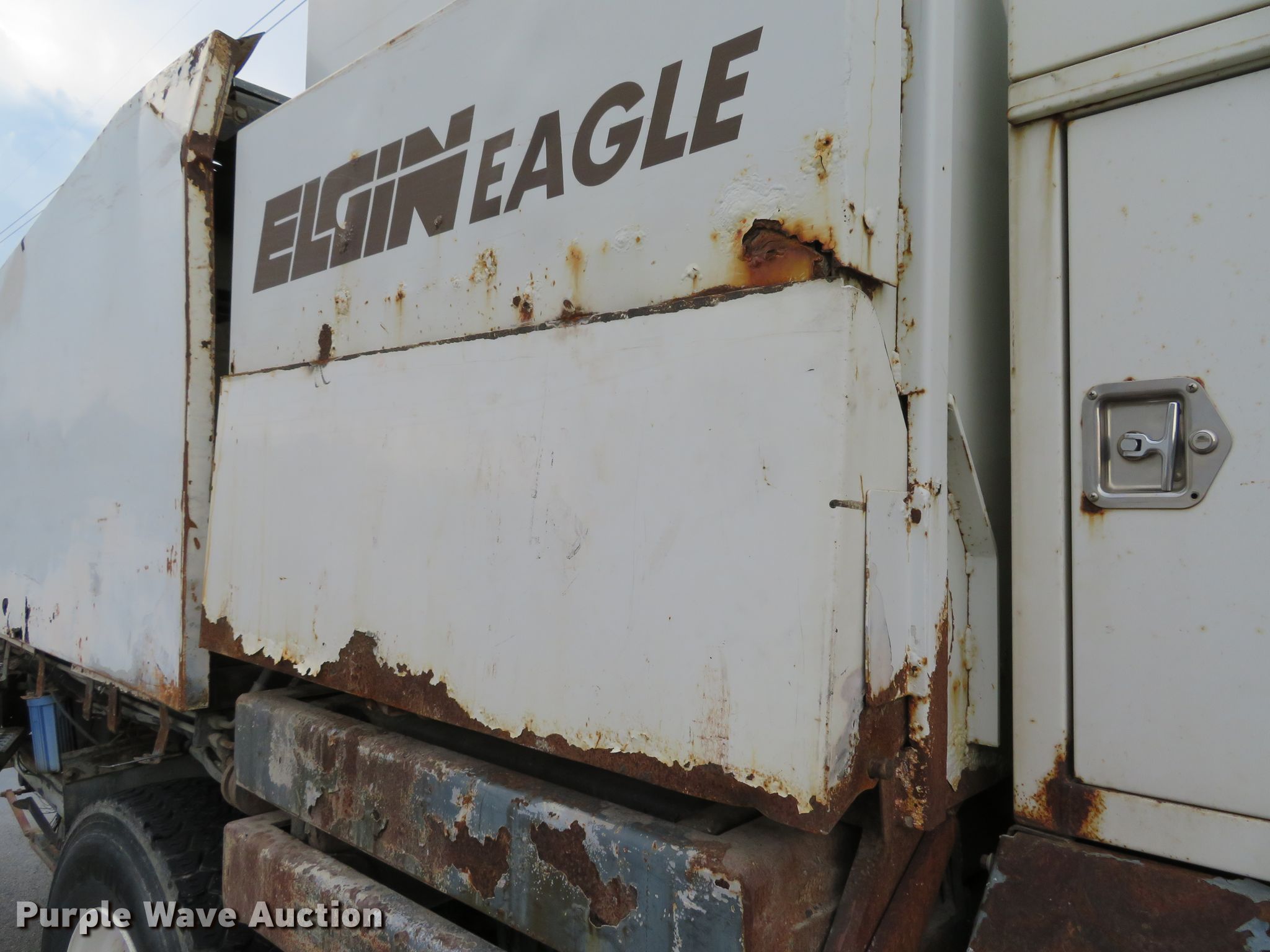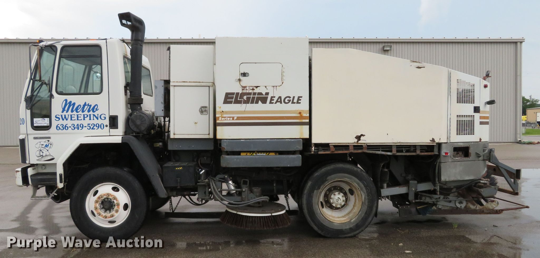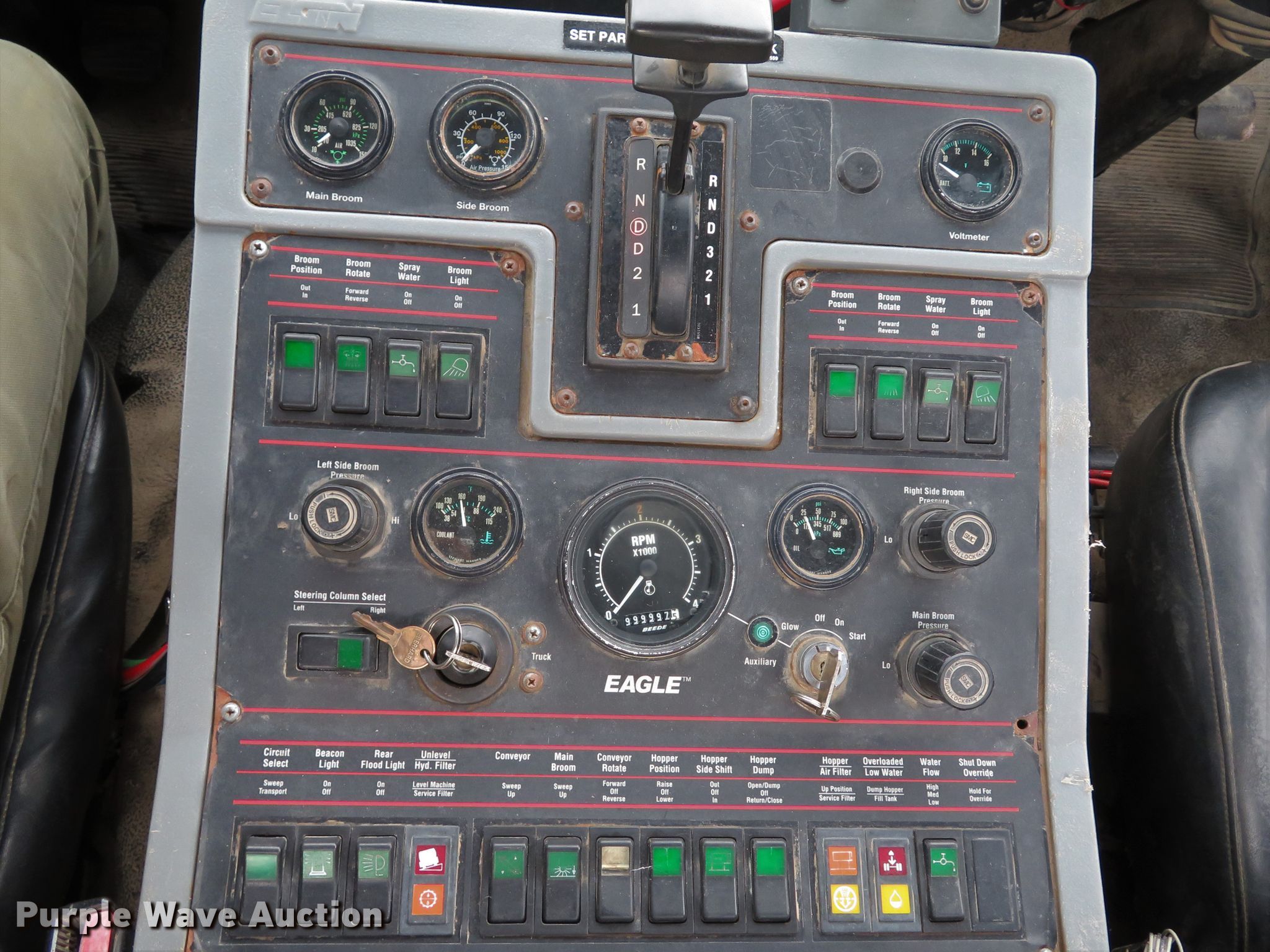 Purple Wave is selling a used Street Sweeper Truck in Illinois. This item is a 2001 Sterling SC8000 street sweeper truck with the following: 64,556 miles on odometer, 7,858 hours on meter, Cummins ISB205 5.9L L6 diesel engine, 205 HP, Automatic transmission, AC and heat, AM/FM, Dual operating station, Video monitoring system, 60"W broom, Water spray system, Elgin Eagle F series conveyor bed, 4.5 cu. yd. capacity, Isuzu four cylinder engine, 36" diameter left gutter broom, 36" diameter right gutter broom, Serial F1202D, Air suspension, Air brakes, 11R22.5 tires, GVWR 32,000 lbs, Non-operational driver's window, AC does not blow cold, Non-operational water system, possibly due to belt missing on pump, Non-operational tachometer, Non-operational hour meter, Non-operational sweeper engine