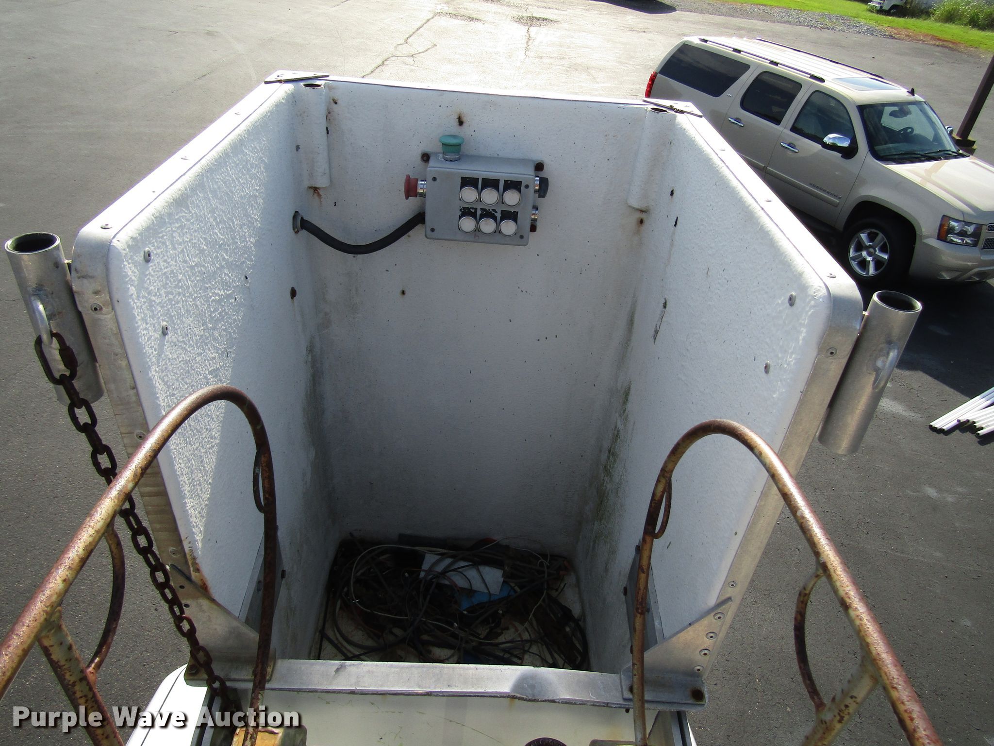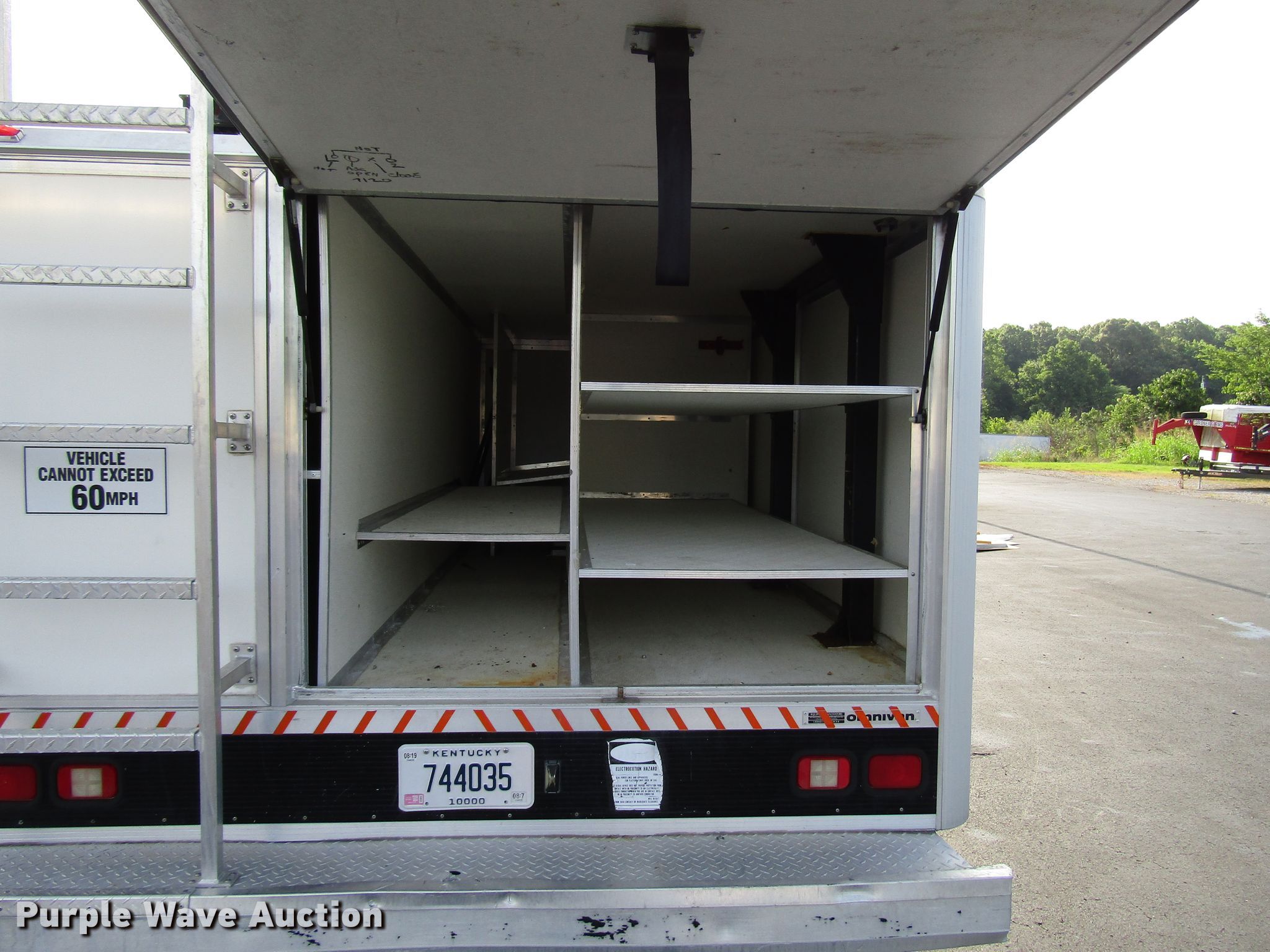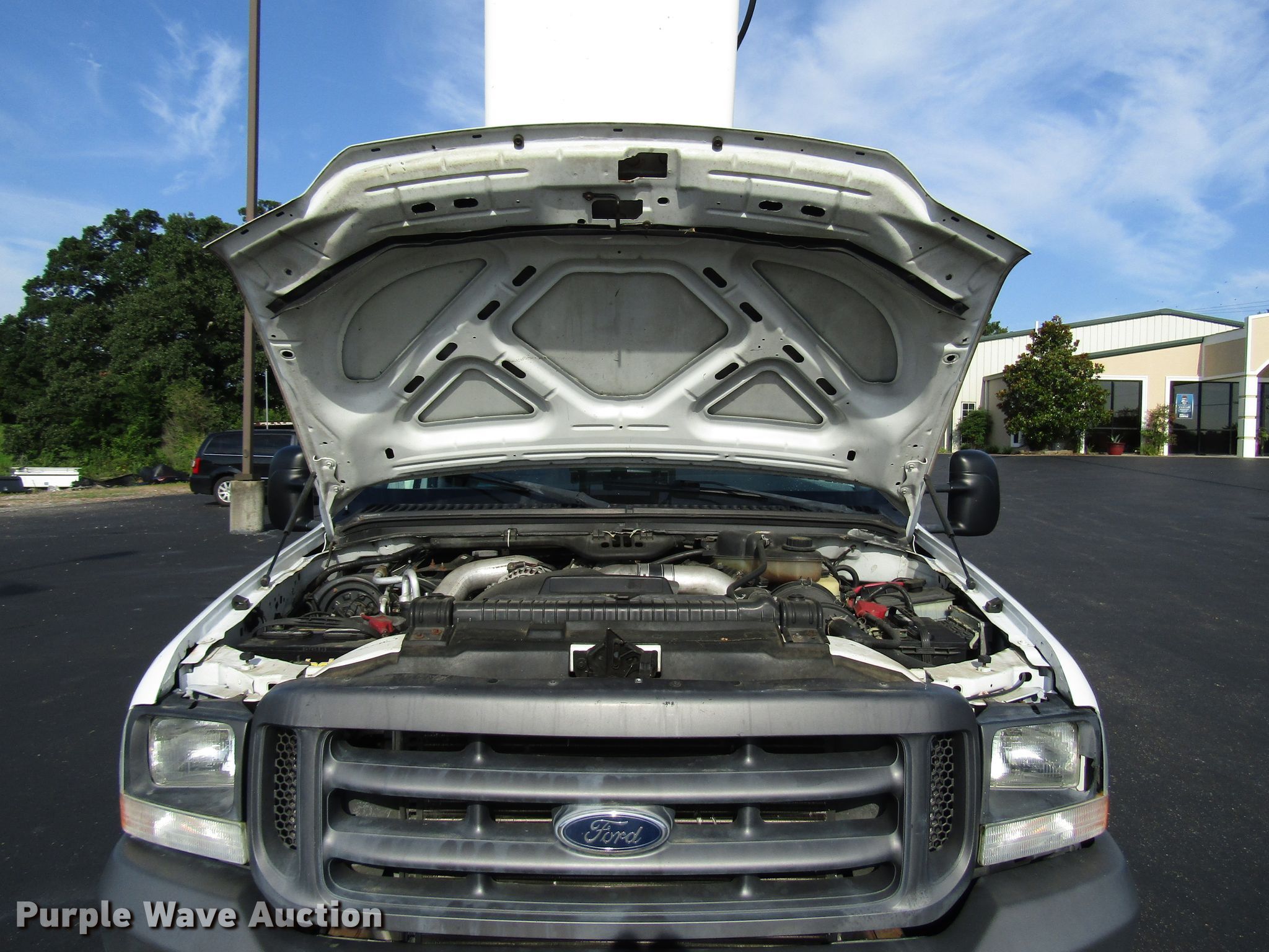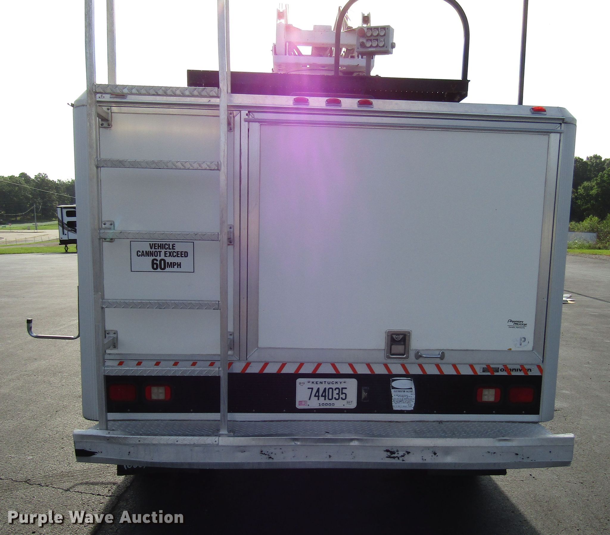 Purple Wave is selling a used Bucket Truck in Kentucky. This item is a 2004 Ford F450 Super Duty bucket truck with the following: 94,899 miles on odometer, 6.0L V8 OHV 32V diesel engine, Automatic transmission, Single axle, AC and heat, Omnivan 12.5' utility bed, 2004 Telelift TTS25-B-GY telescopic boom, 300 lbs maximum lift capacity, 35.5' maximum lift height, Man basket, Ground and platform controls,, 188" wheelbase, Spring suspension, Hydraulic brakes, 225/70R19.5 tires, GVWR 15,000 lbs