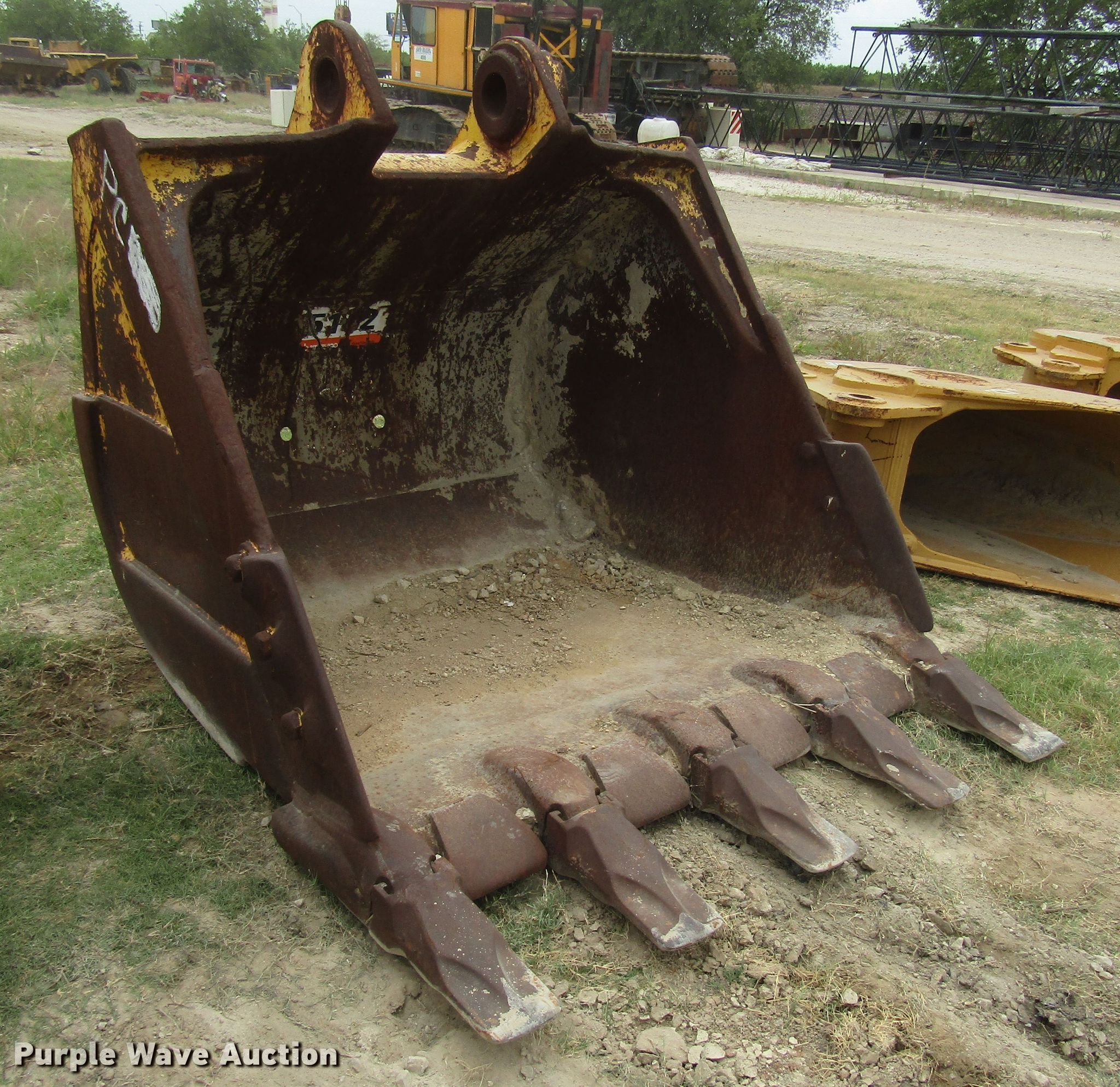 Purple Wave is selling a used Excavator Attach. in Texas. This item is a MWE bucket with the following: 64"W, (5) teeth, Fits Komatsu PC400, 450, and 490 excavators