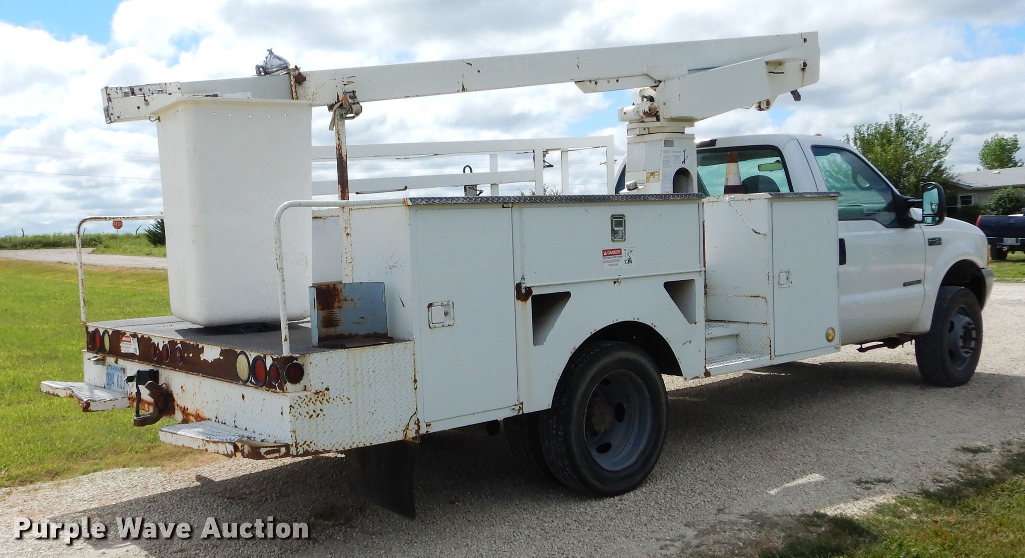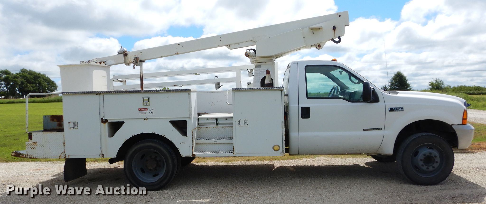 This 1999 Ford F450 Super Duty bucket truck will sell to the highest bidder regardless of price.