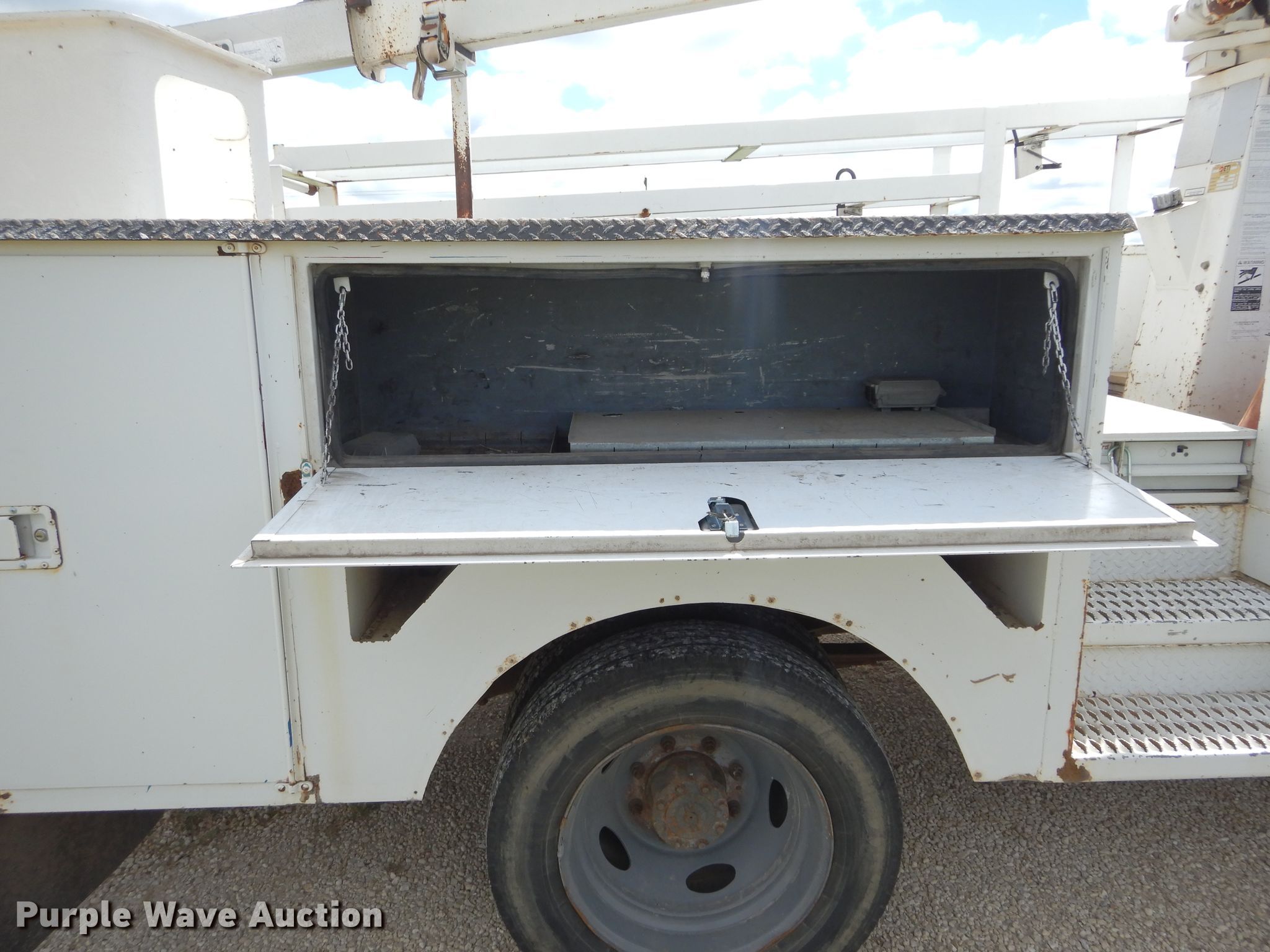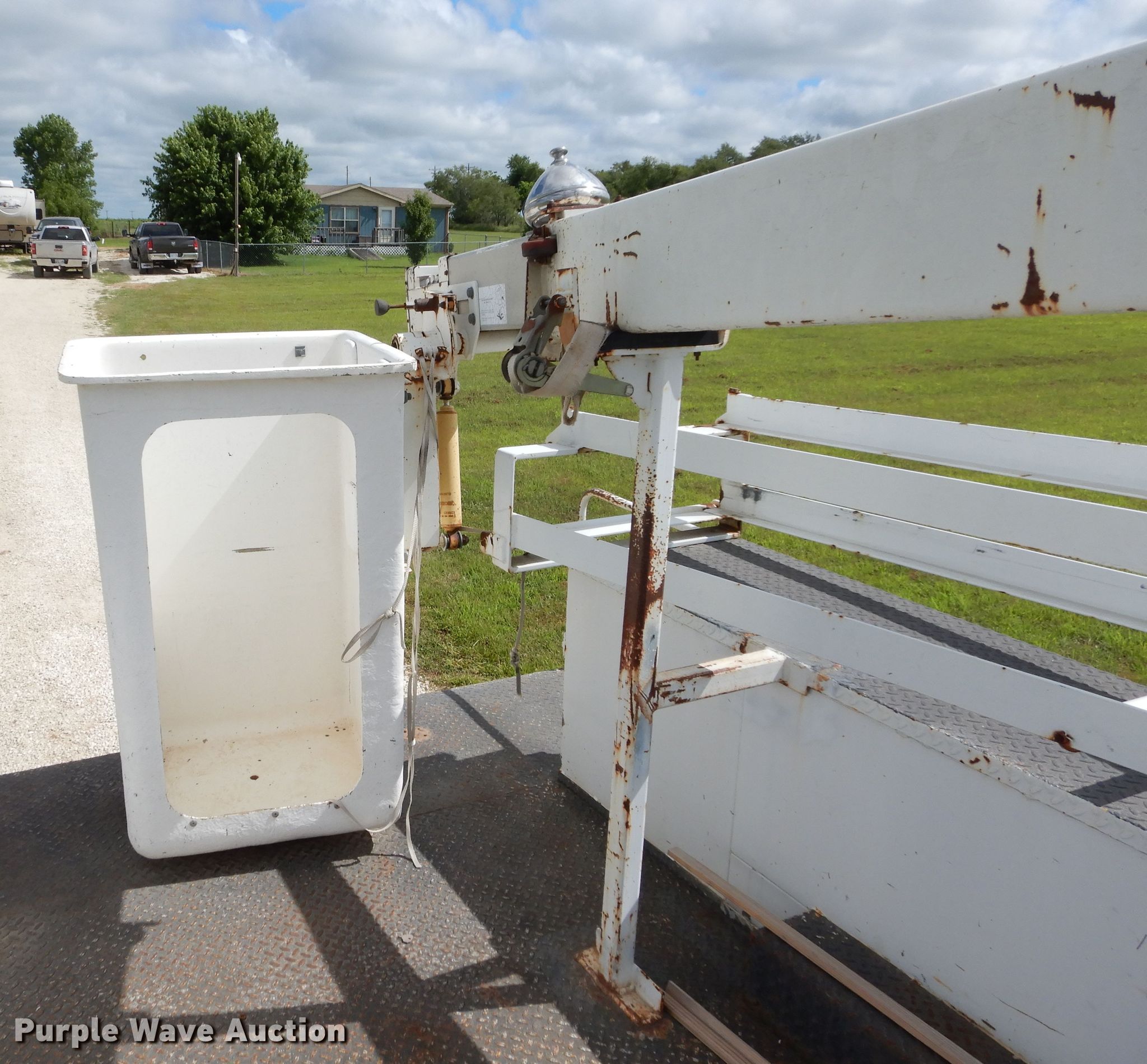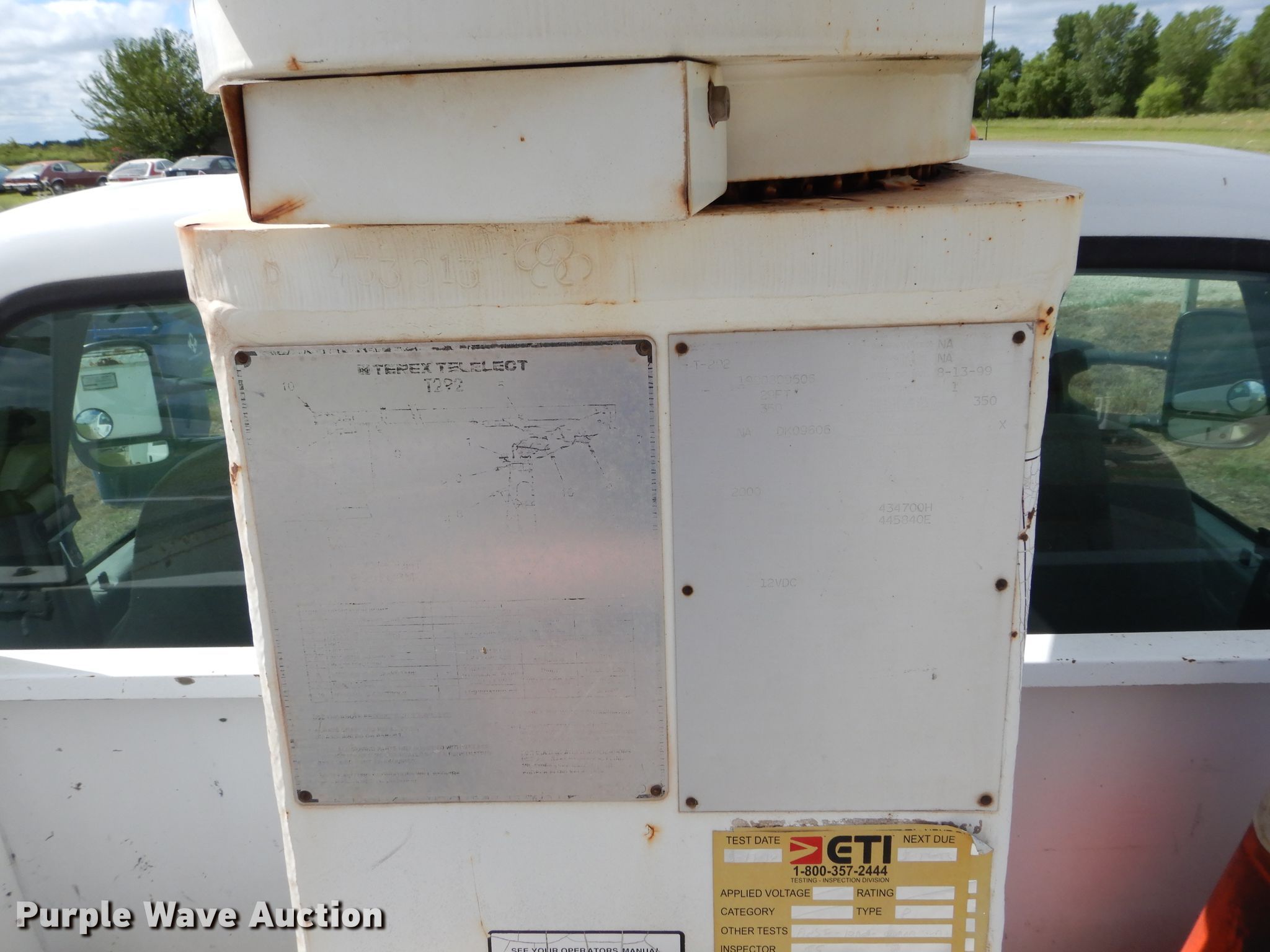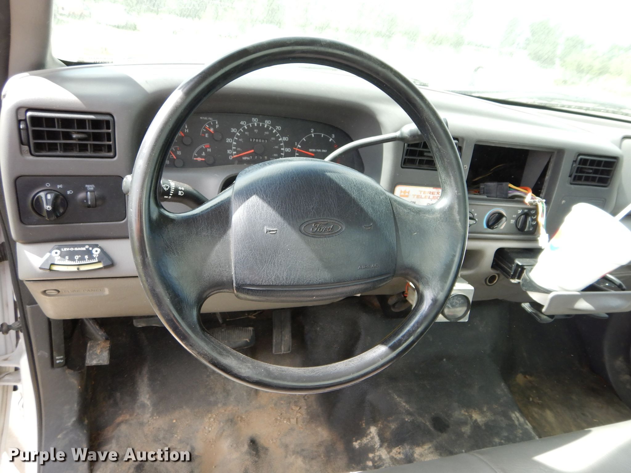 Purple Wave is selling a used Bucket Truck in Kansas. This item is a 1999 Ford F450 Super Duty bucket truck with the following: 178,683 miles on odometer, 7.3L V8 OHV 16V diesel engine, Automatic transmission, Single axle, AC and heat, PTO, 1999 Terex Telect T-292 telescopic boom, 350 lbs maximum lift capacity, 29' maximum lift height, Man basket, Ground and platform controls,, Spring suspension, Hydraulic brakes, 225/70R19.5 tires