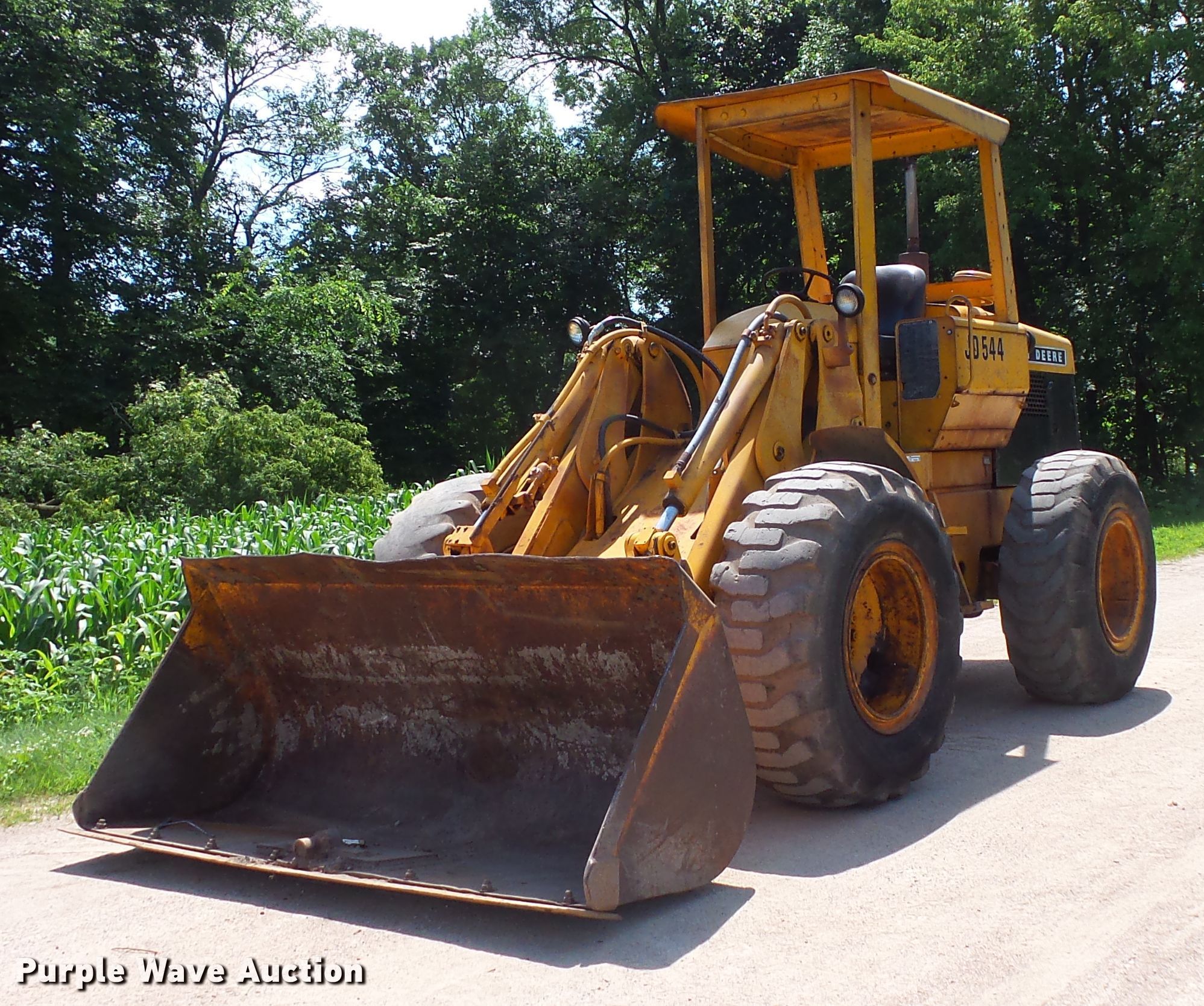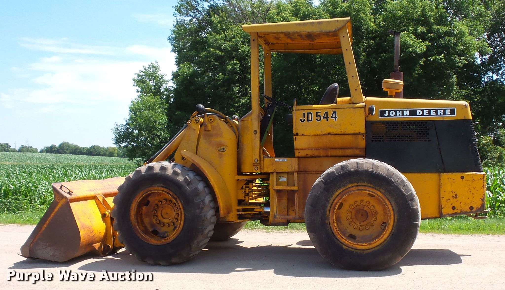 Purple Wave is selling a used Wheel Loader in Minnesota. This item is a John Deere 544 wheel loader with the following: 409 hours on meter, John Deere six cylinder diesel engine, Powershift transmission, 2F-1R gears, Joystick bucket controls, 91"W general purpose bucket, Bolt-on cutting edge, 17.5-25 tires, Serial TEB3T07167ET