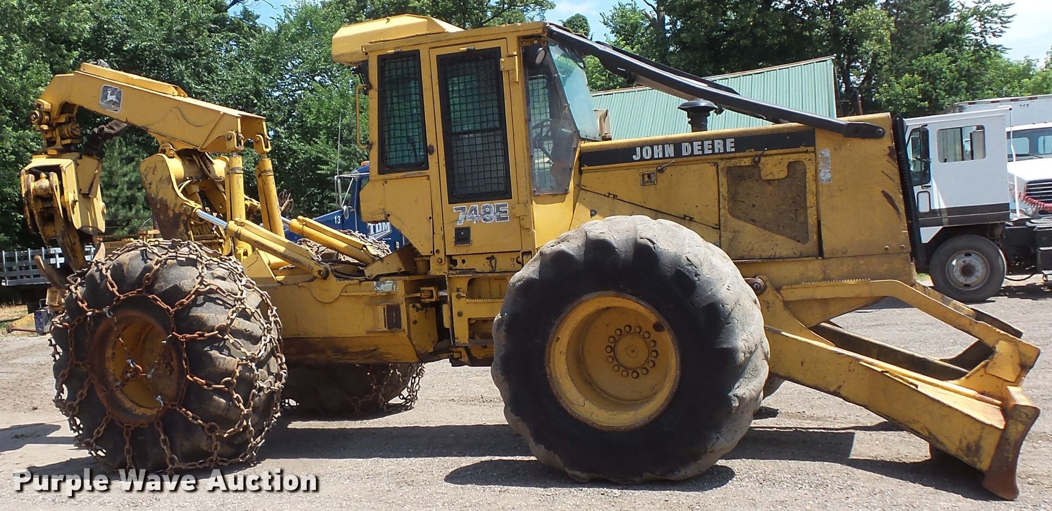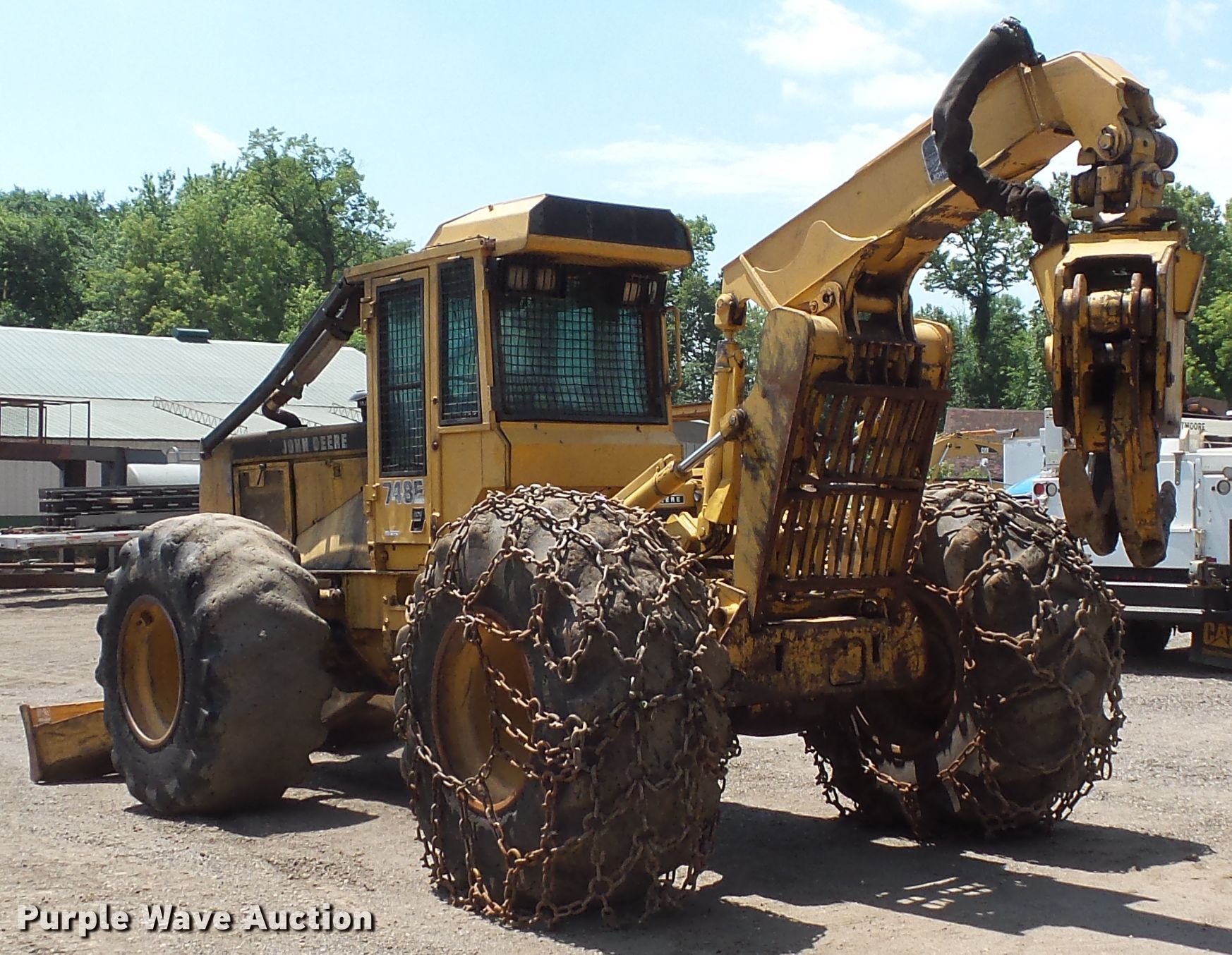 Purple Wave is selling a used Skidder in Minnesota. This item is a John Deere 748E skidder with the following: Six cylinder diesel engine, Powershift transmission, 8F-4R gears, Sweeps, Screens, 116"W blade, 4' grapple jaws, 10' maximum jaw opening, 30.5L-38 tires, Possible turbo issues