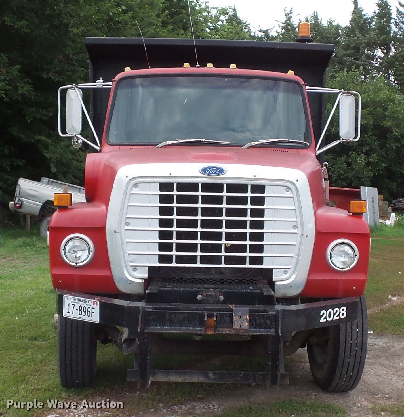 Purple Wave is selling a used Construction Dump Truck in Nebraska. This item is a 1984 Ford L8000 dump truck with the following: 248,799 miles on odometer, Caterpillar 3208 10.4L V8 diesel engine, Five speed manual transmission, Two speed rear end, Single axle, Heat, Front mounted PTO, 10'L x 96"W steel dump bed, Single ram hoist, Manual operated end gate, Spring suspension, Air brakes, 150" wheelbase, 11R22.5 tires, GVWR 29,800 lbs