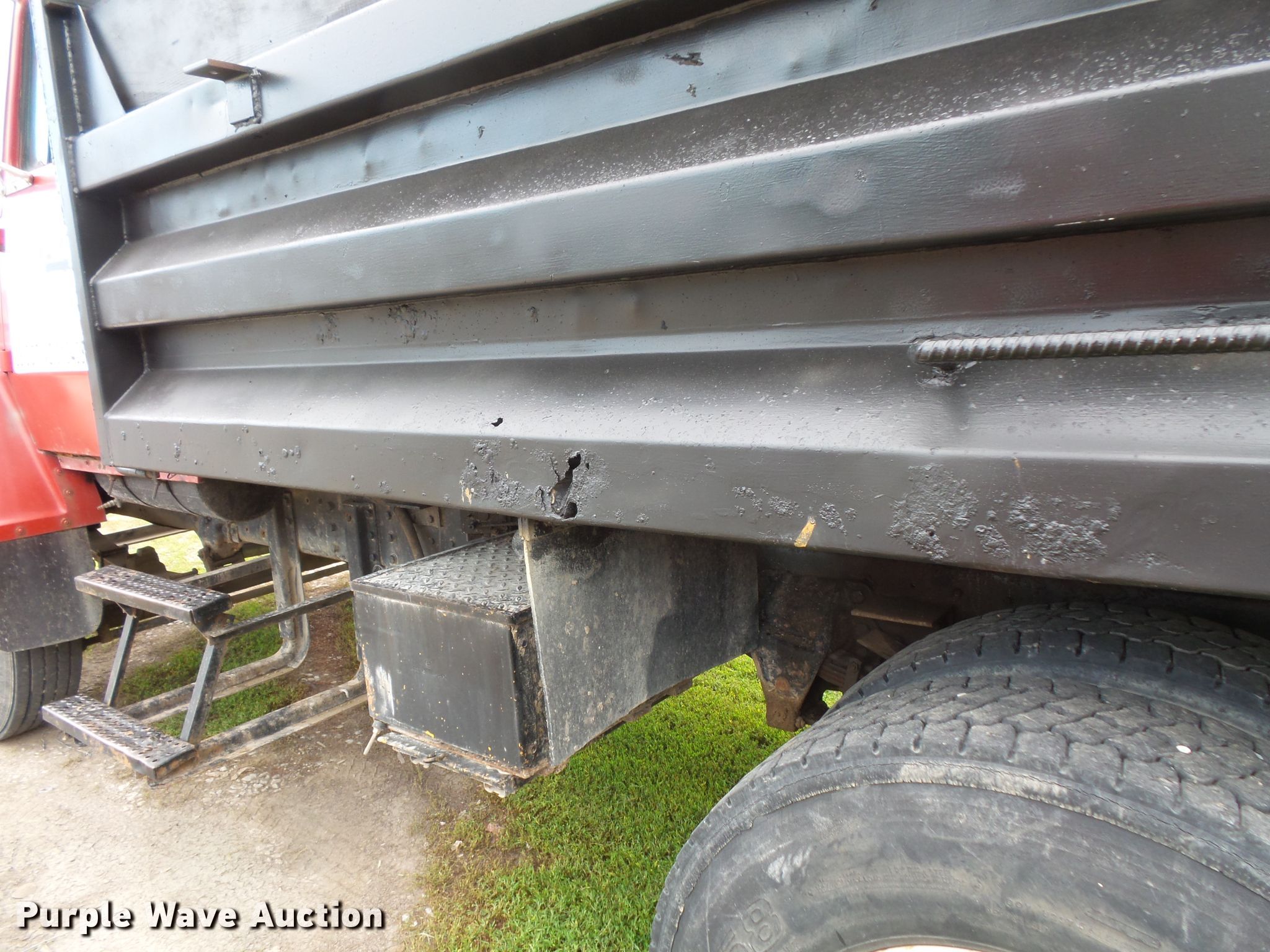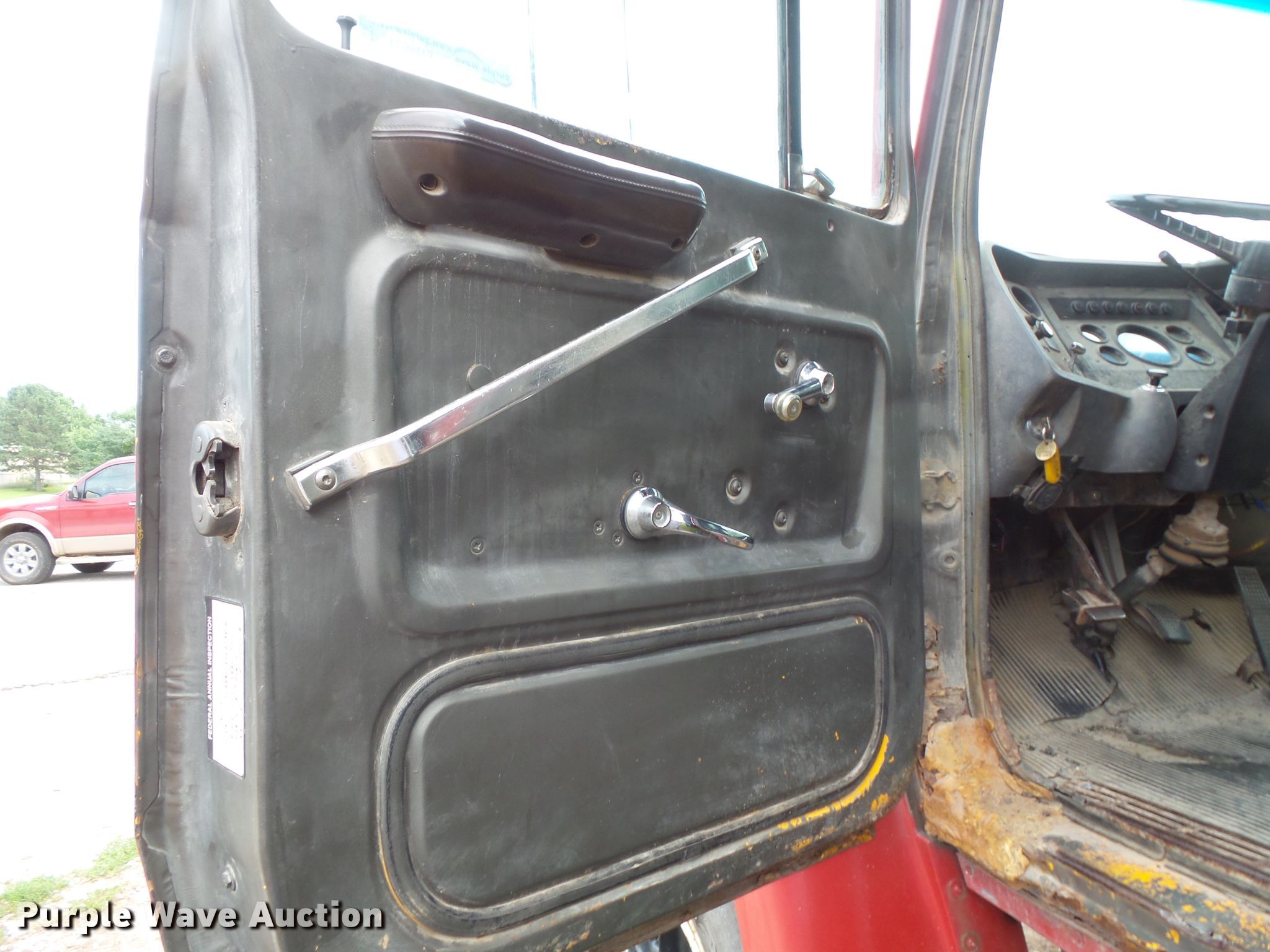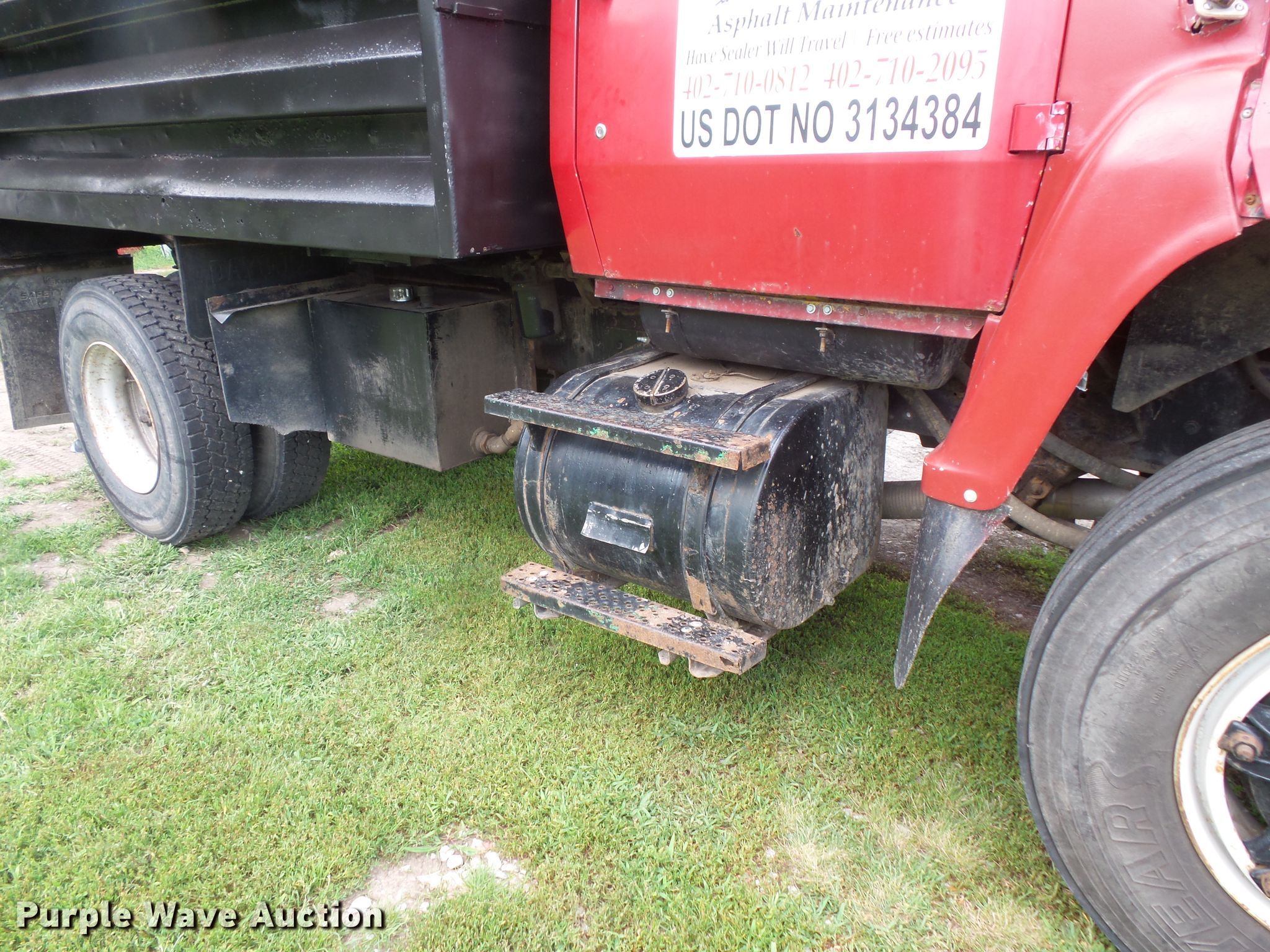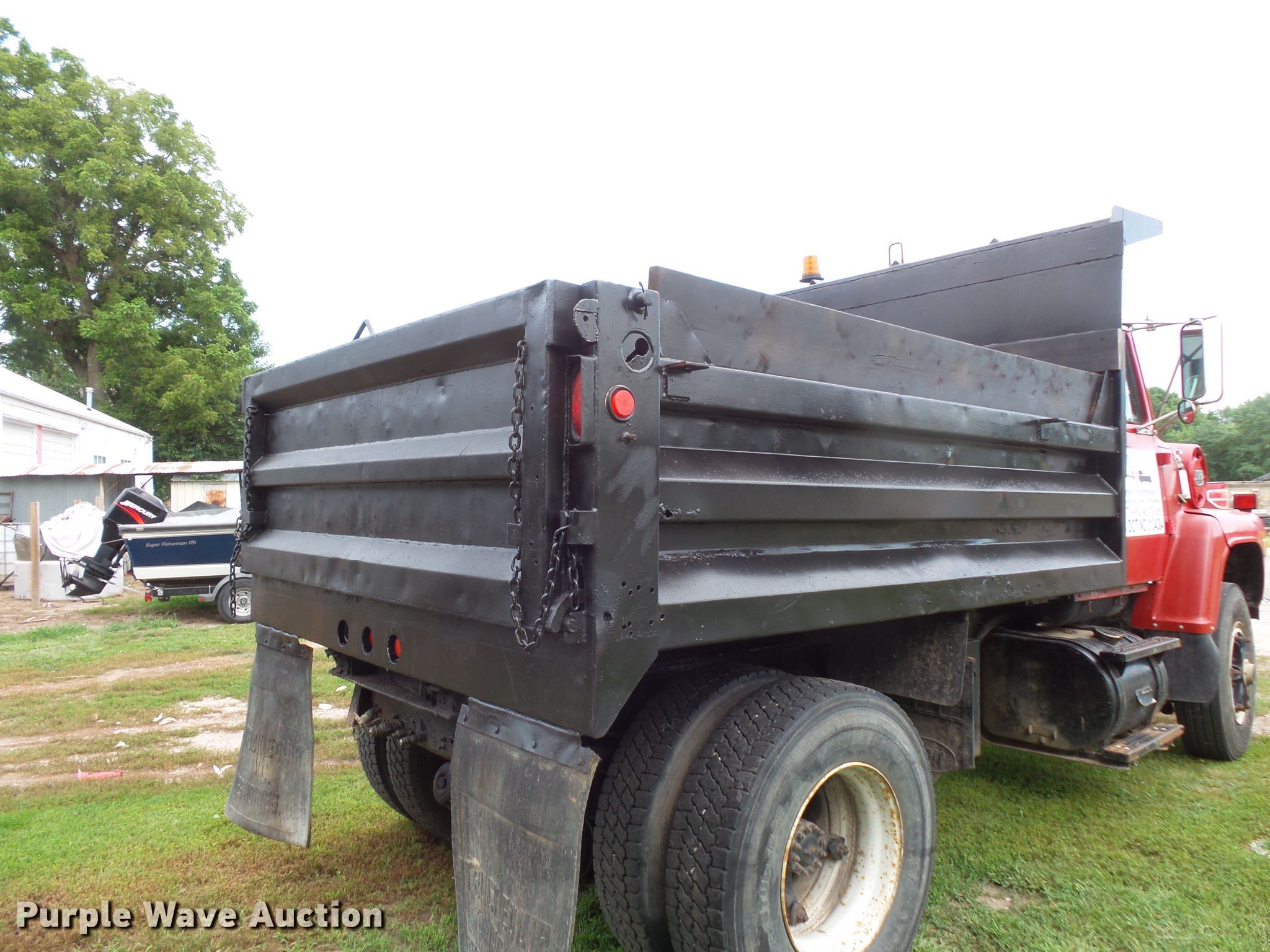 1984 Ford L8000 dump truck. 248,799 miles on odometer, Caterpillar 3208 10.4L V8 diesel engine, Five speed manual transmission, Two speed rear end, Single axle, Heat, Front mounted PTO, 10'L x 96"W steel dump bed Single ram hoist, Manual operated end gate, Spring suspension, Air brakes, 150" wheelbase, 11R22.5 tires, GVWR 29,800 lbs. Nebraska title. Title distribution may be delayed up to 14 days from verification of funds. 1FDXR80U1EVA39854. 1330 Indiana Ave. York, NE 68467