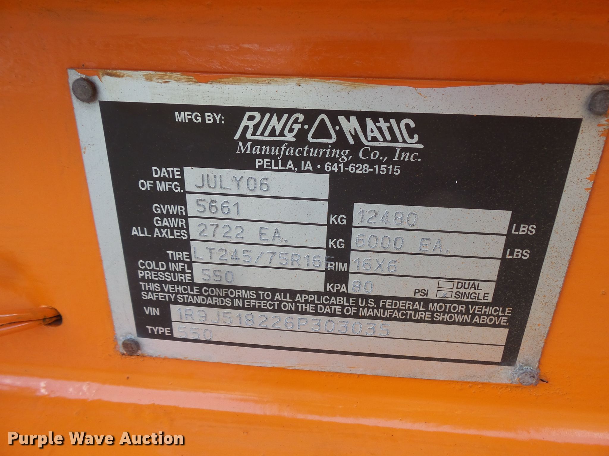 Purple Wave is selling a used Vacuum Excavator in Minnesota. This item is a 2006 Vermeer Ring-o-matic 550 vacuum excavator with the following: Caterpillar 3024C four cylinder diesel engine, 465 hours on meter, Rear manway, 4" rear outlet, 15'4"L x 3" diameter telescopic boom, Remote control, Rear hose reel, Jack stand, Spring suspension, Electric brakes, Tandem axle, 245/75R16 tires