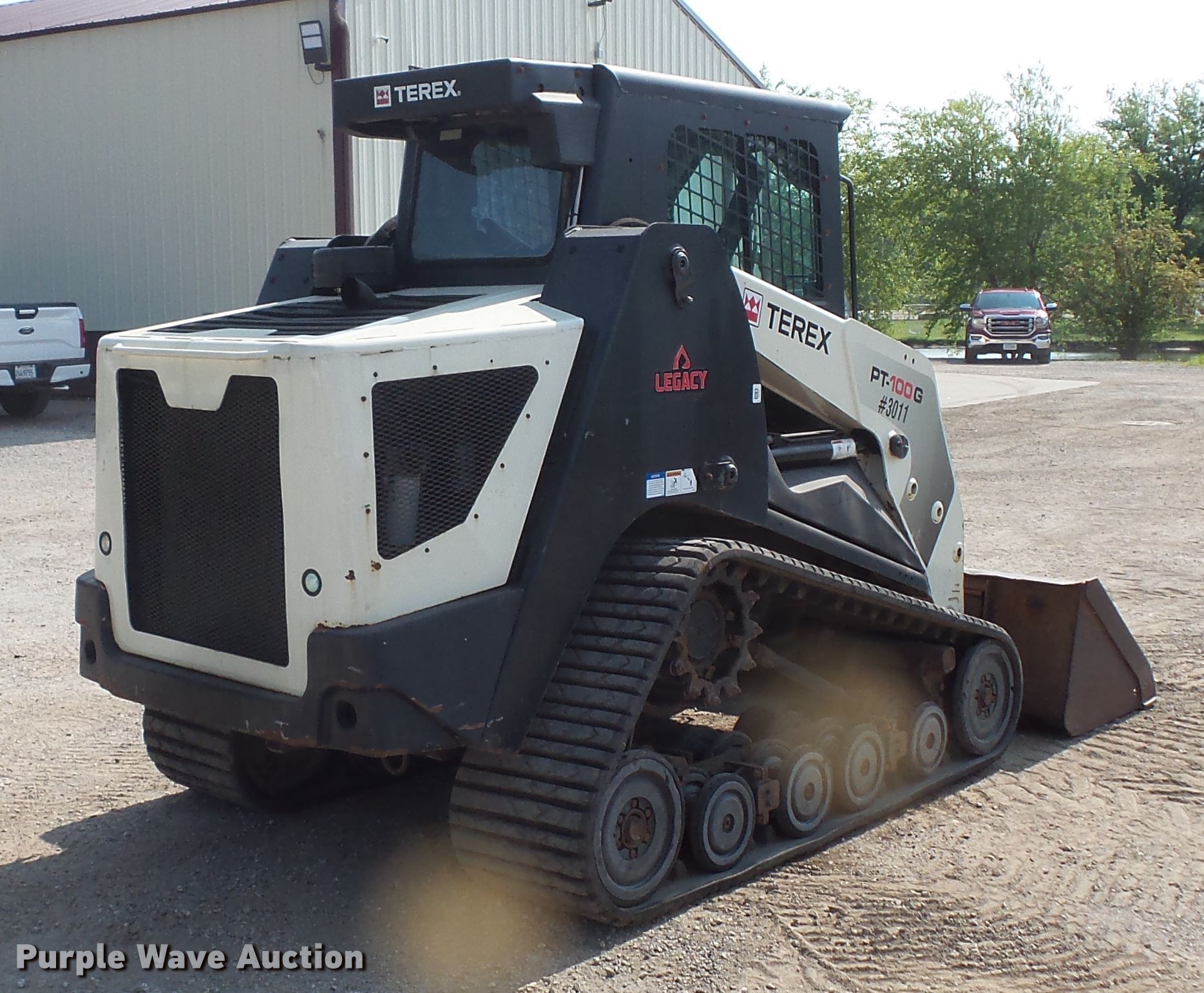 Purple Wave is selling a used Tracked Skid Steer Loader in Illinois. This item is a 2011 Terex PT100G skid steer with the following: 2,560 hours on meter, Four cylinder diesel engine, Hydrostatic transmission, Enclosed cab, AC and heat, Hand bucket controls, 72"W general purpose bucket, Manual quick coupler, Auxiliary hydraulics, Auxiliary electrical outlet, 18"W tracks, Serial ASVPT100CDGS00278