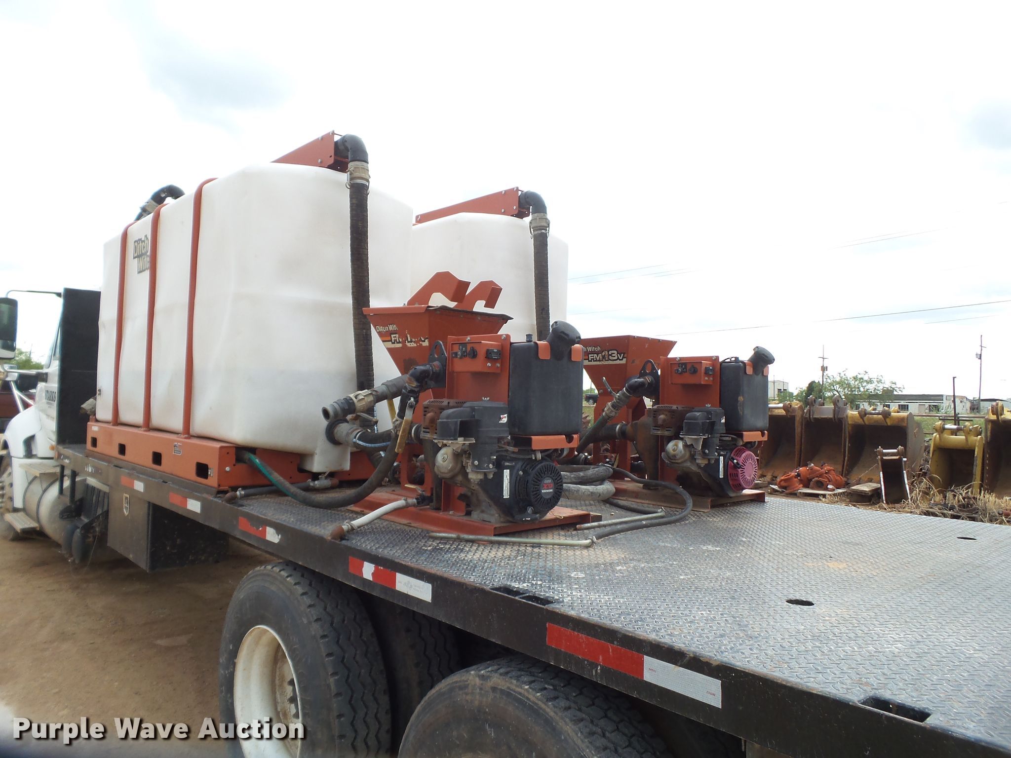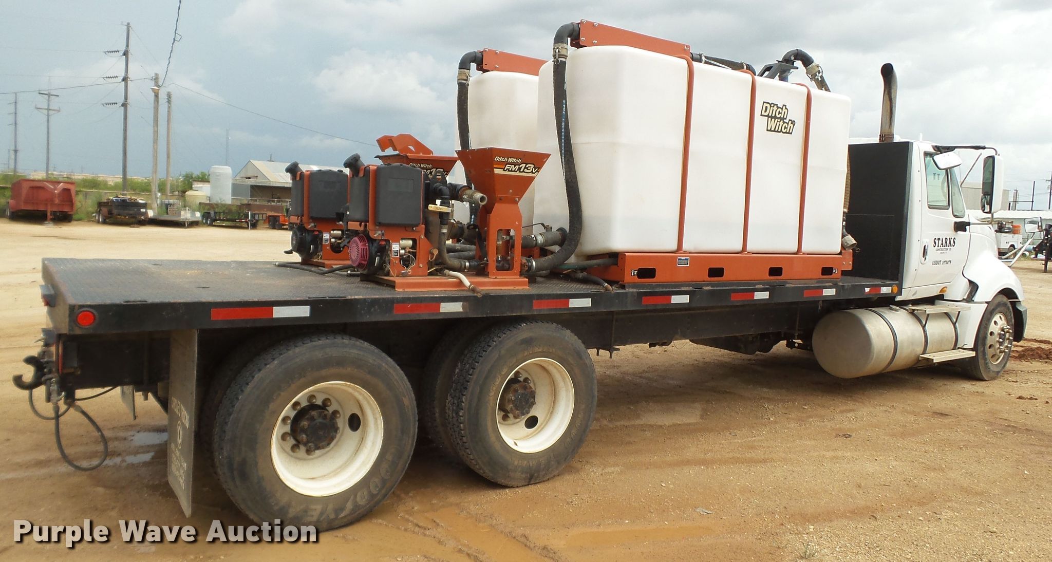 Purple Wave is selling a used Flat Bed Truck in Texas. This item is a 2009 International ProStar Premium flatbed truck with the following: 11,977 hours on meter, 19,181 kilometers on odometer, Cummins ISX 14.9L L6 diesel engine, Eaton Fuller 10 speed manual trasnmission, Tandem axle, AC and heat, PTO, 22'L flatbed, (2) Ditch Witch FM13V mud mixers, 514 hours on meter, 806 hours on meter, Honda GX390 gas engines, 1,000 gallon tanks,, Spring suspension, Air brakes, 11R22.5 tires, GVWR 52,350 lbs