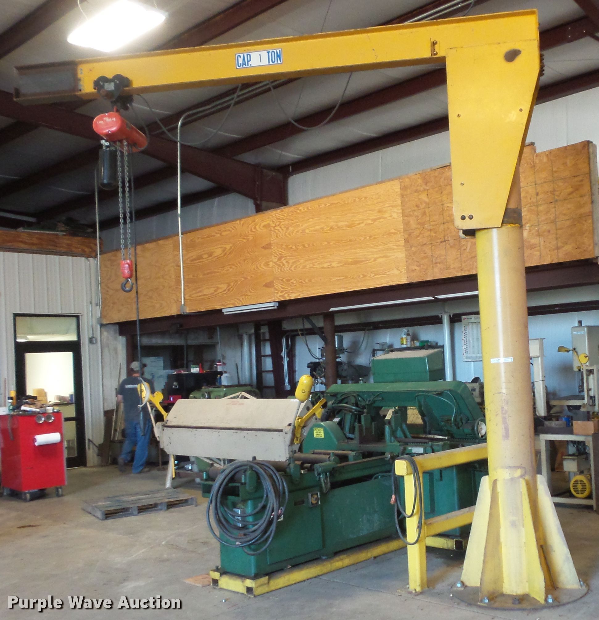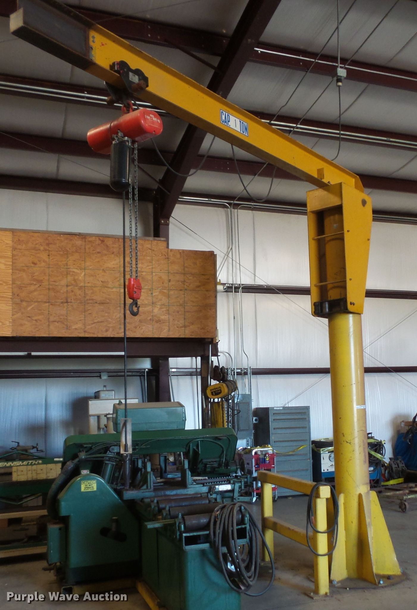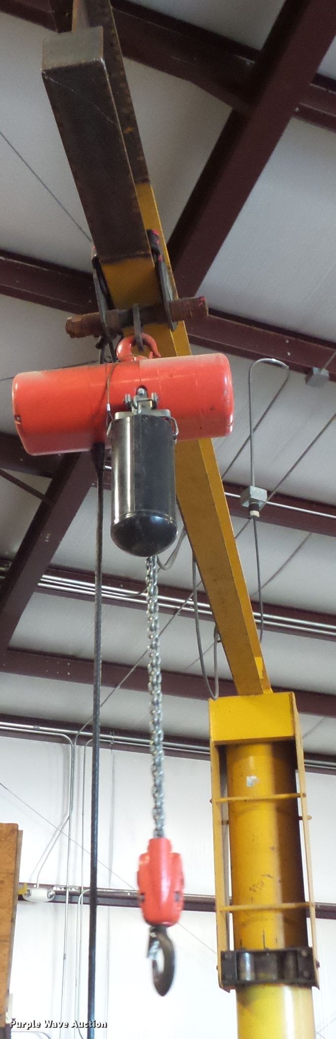 Purple Wave is selling a used Overhead or Straddle Crane in Iowa. This item is a Pivot hoist with the following: One ton capacity, CM Lodestar electric chain hoist, 12'10"H base, 11' arm