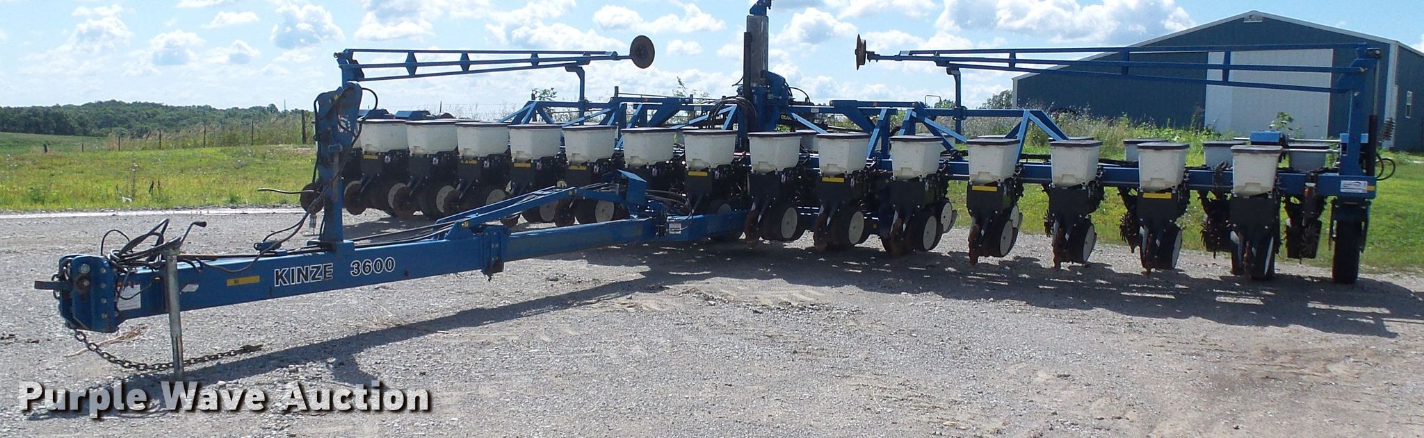 Purple Wave is selling a used Planter in Missouri. This item is a Kinze 3600 split row planter with the following: 40'W, 31 row units, 30" row spacing, 15" split row spacing, Marker arms, Hydraulic pivot fold, Individual seed hoppers, Ground meter drive, Corn and soybean seed meters, Row cleaners, No-till coulters, Double disk openers, Double gauge wheels, Seed firmers, Double rubber closing system, (8) 7.50-20SL transport tires, (4) 480/400-8 drive/outside tires, Serial 617921