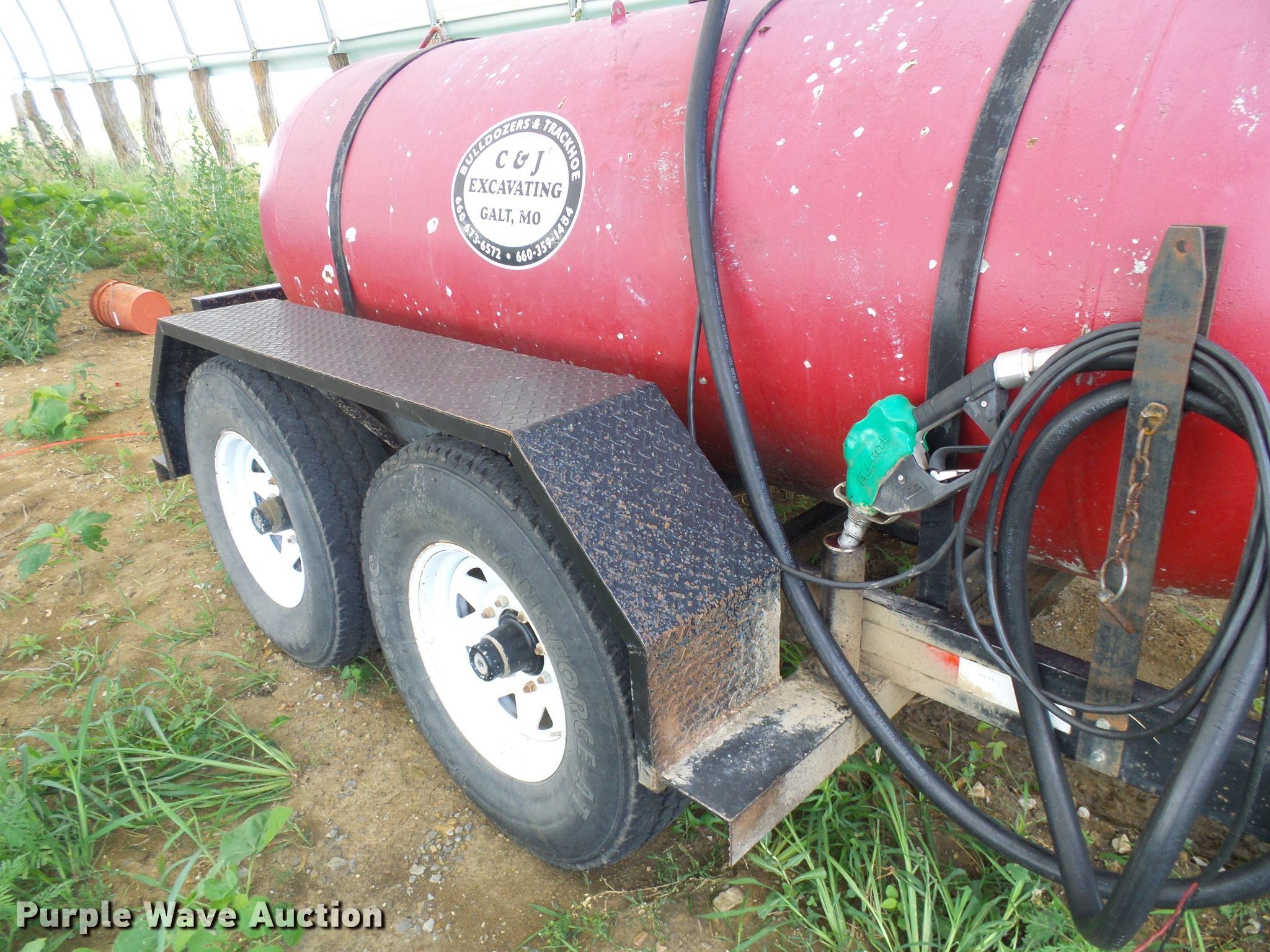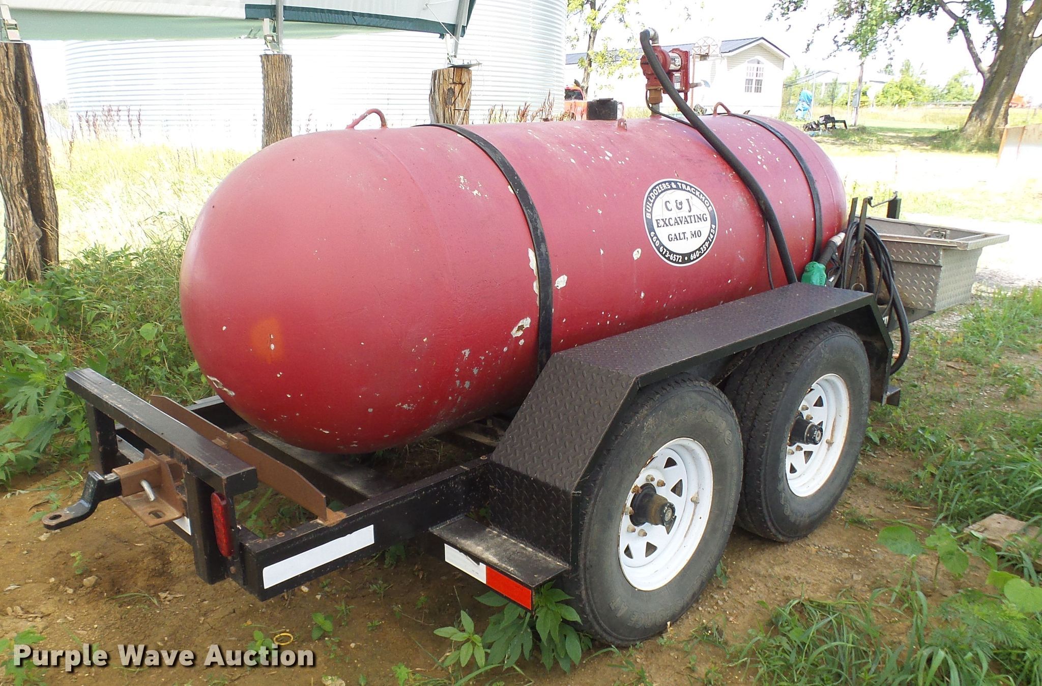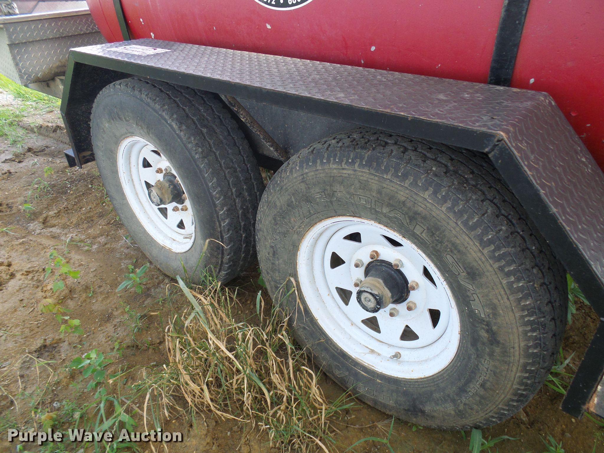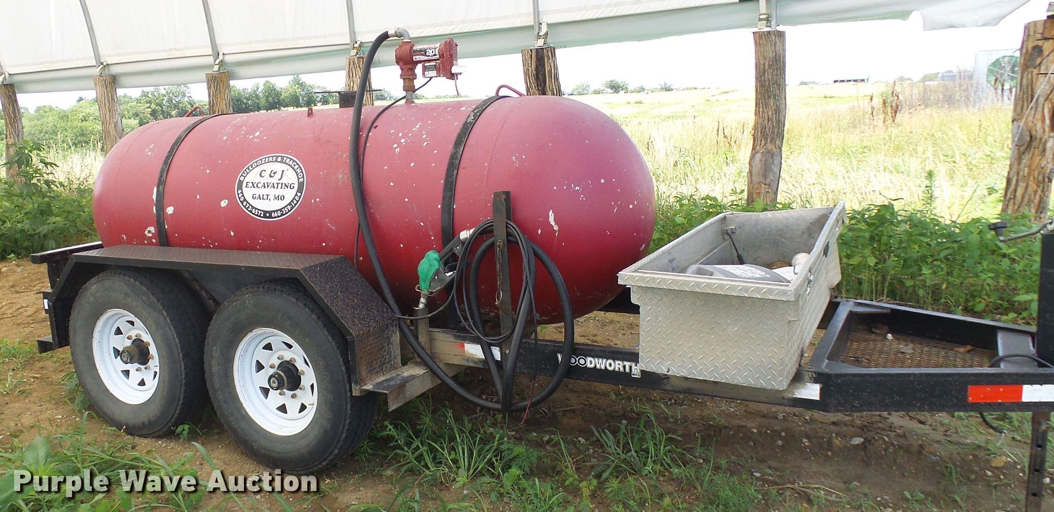 Purple Wave is selling a used Tank Trailer in Missouri. This item is a Woodworth propane tank trailer with the following: 17'9"L x 70"W deck, 500 gallon propane tank, Fill-Rite pump, 12V, 20 gpm, 2" ball hitch, Rear draw bar, Jack stand, LT235/85R16 tires