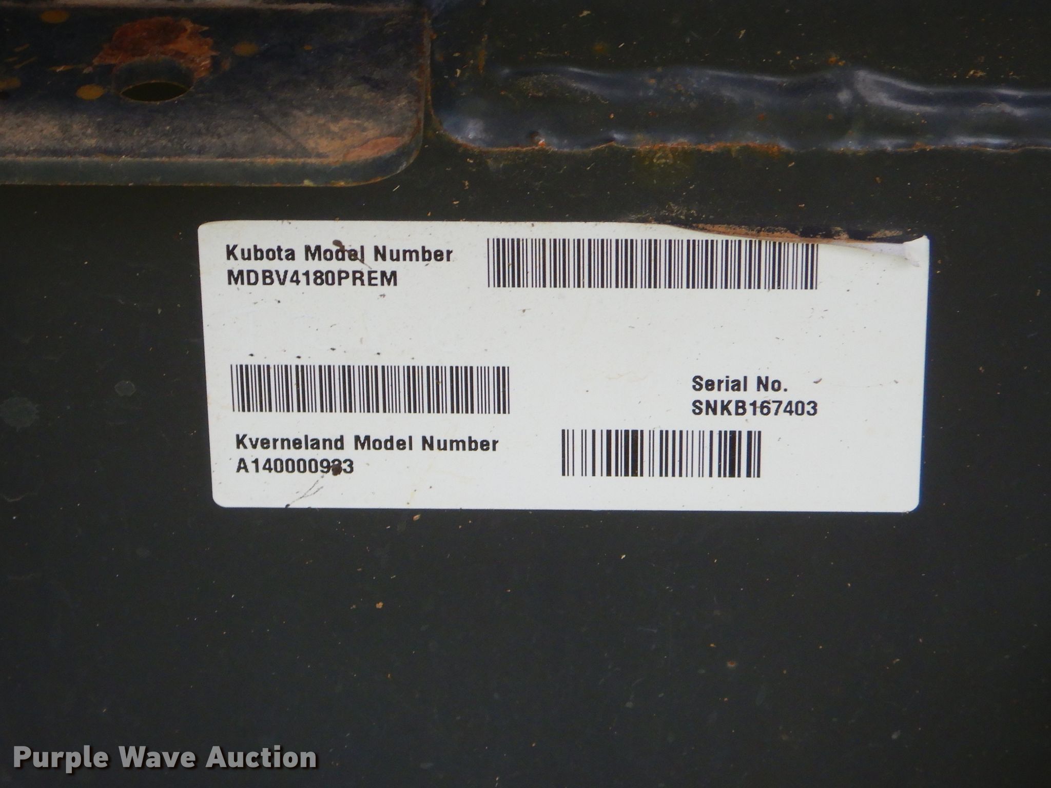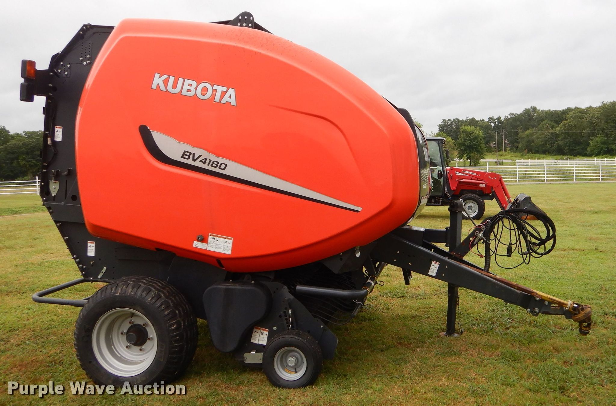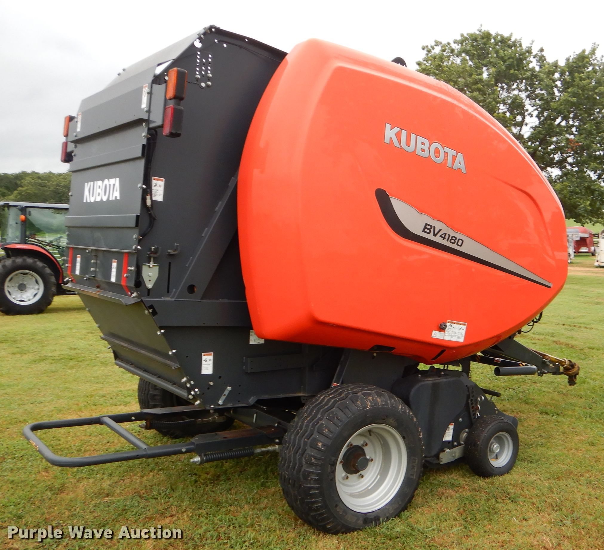 Purple Wave is selling a used Round Baler in Oklahoma. This item is a Kubota BV4180 round baler with the following: Approx. 4,300 bale count, 4' x 5' bale capacity, 72"W pickup, Hydraulic pickup lift, 16x6.50 gauge wheels, Monitor, Net-wrap, Bale kicker, 15.0/55-17 tires, Serial SNKB167403