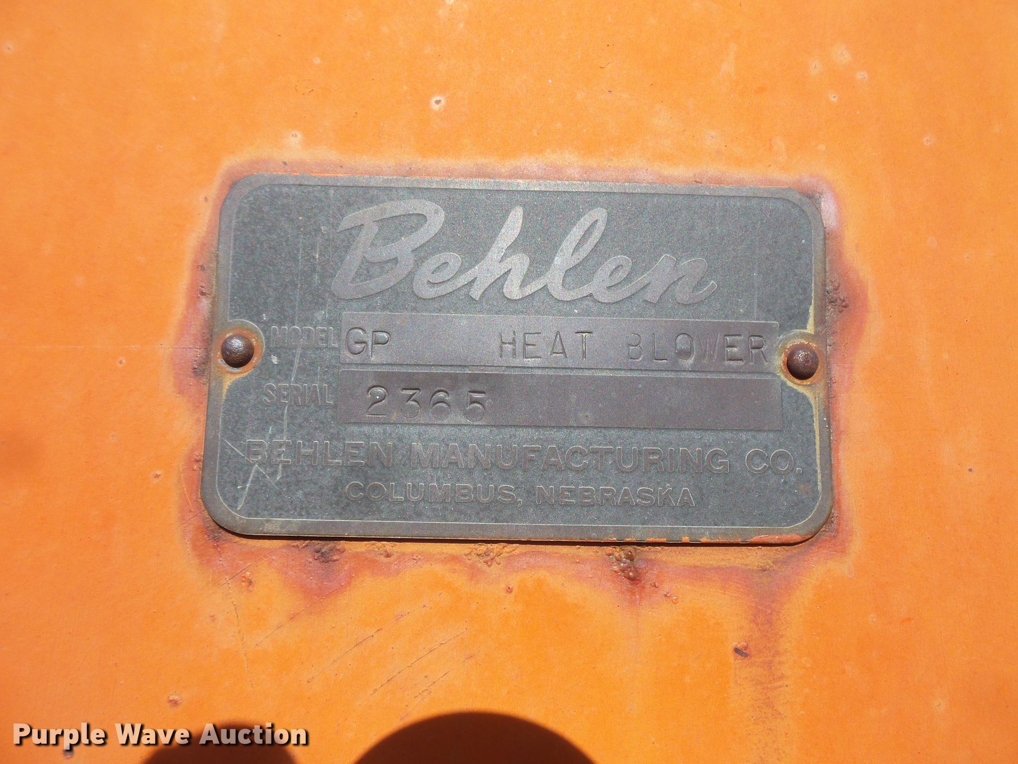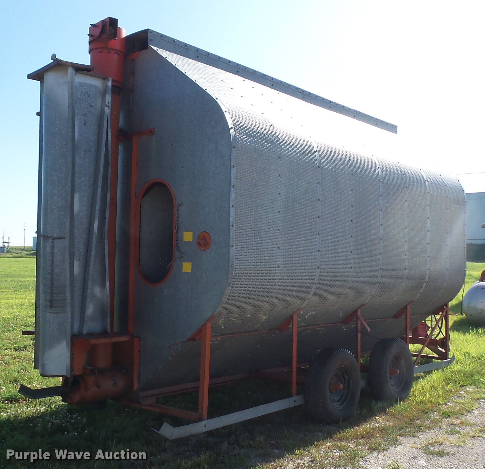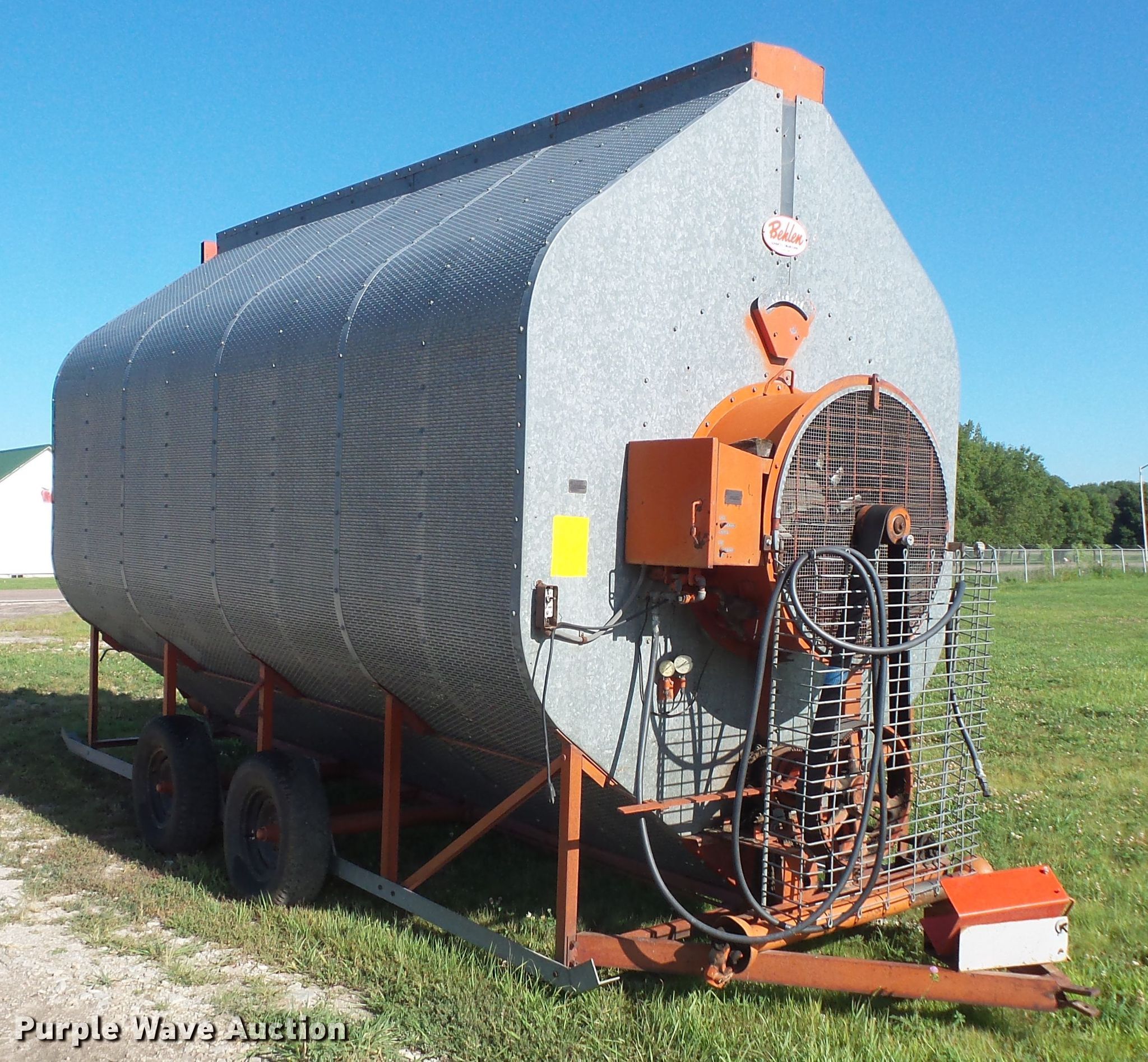 Purple Wave is selling a used Grain Dryer in Iowa. This item is a Behlen H grain dryer with the following: Heat blower, Model GP, Serial 2365, 540 PTO, Pin hitch, Tandem axle, 235/75R15 tires, Serial 2355