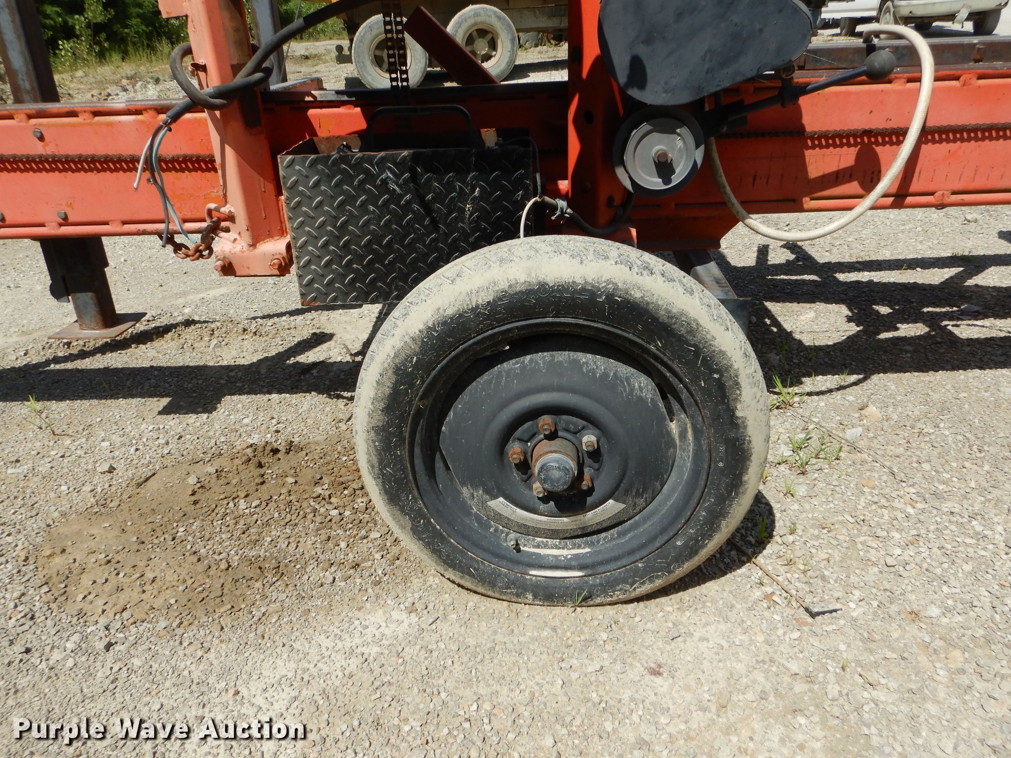 Wood-mizer LT30 sawmill. Approx. 17'L x 70"W, Briggs & Stratton Twin 16 two cylinder gas engine, Manual height blade adjustment, 2" ball hitch, 165/80D13 tires, T125/90D16 tires, Serial 03872865N. 48878 Sage Rd. Milan, MO 63556