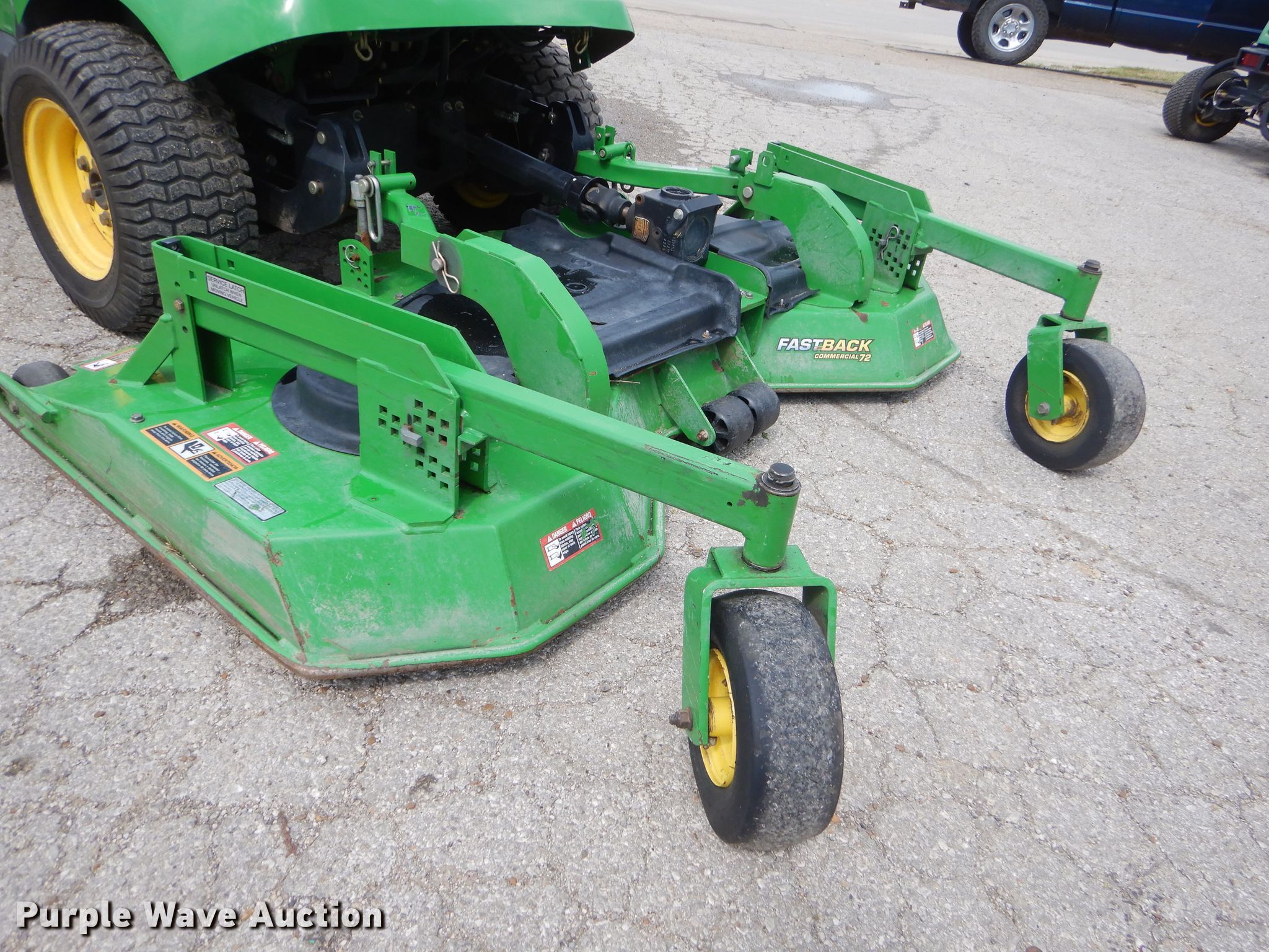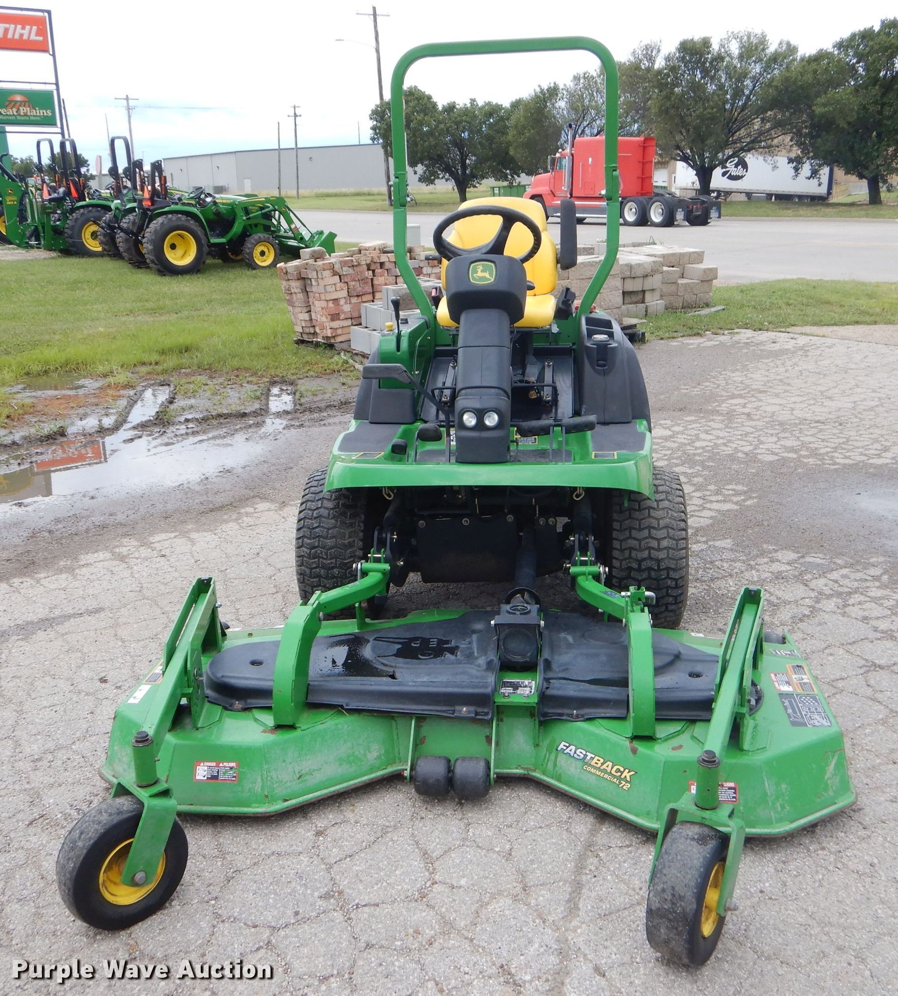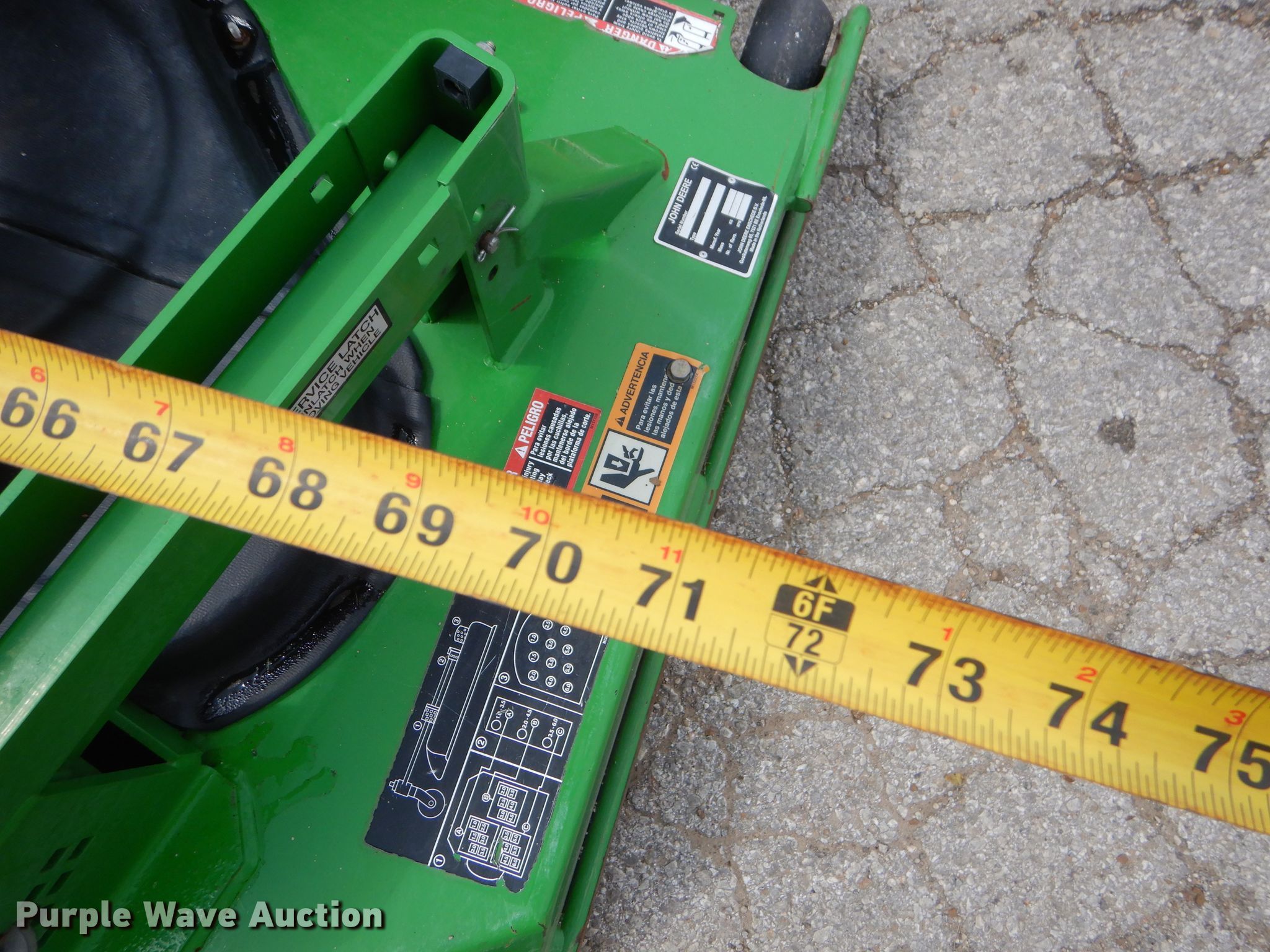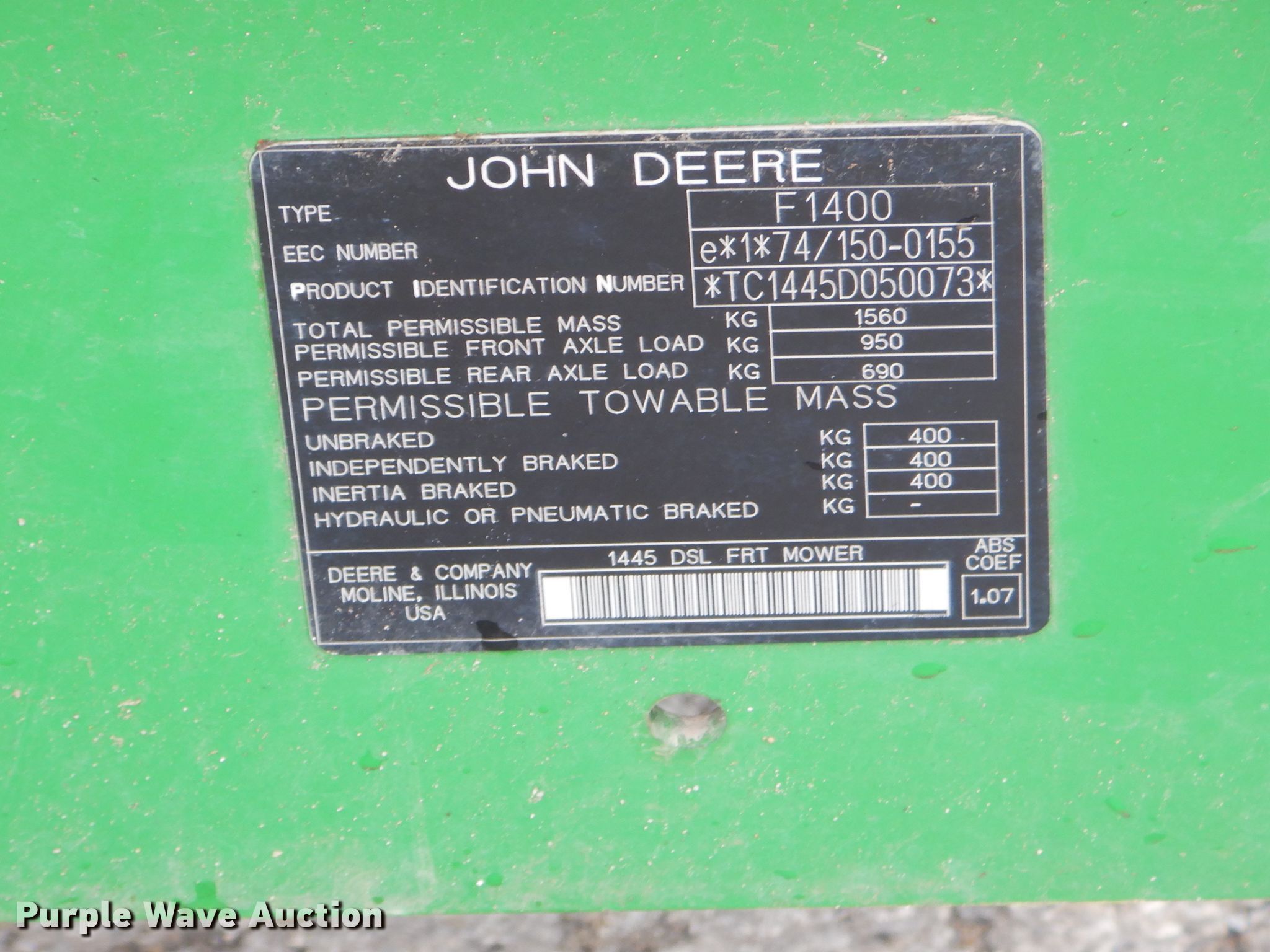 Purple Wave is selling a used Commercial Turf Mower in Kansas. This item is a John Deere 1445 lawn mower with the following: 2,273 hours on meter, 72" cut, Yanmar 3TNV82A-D three cylinder diesel engine, Hydrostatic transmission, OROPS, John Deere 75"W mower deck, Serial DM7203X211303, Hydraulic front deck lift, 23x10.50-12 front tires, 18x8.50-8 rear tires, Serial TC1445D050073
