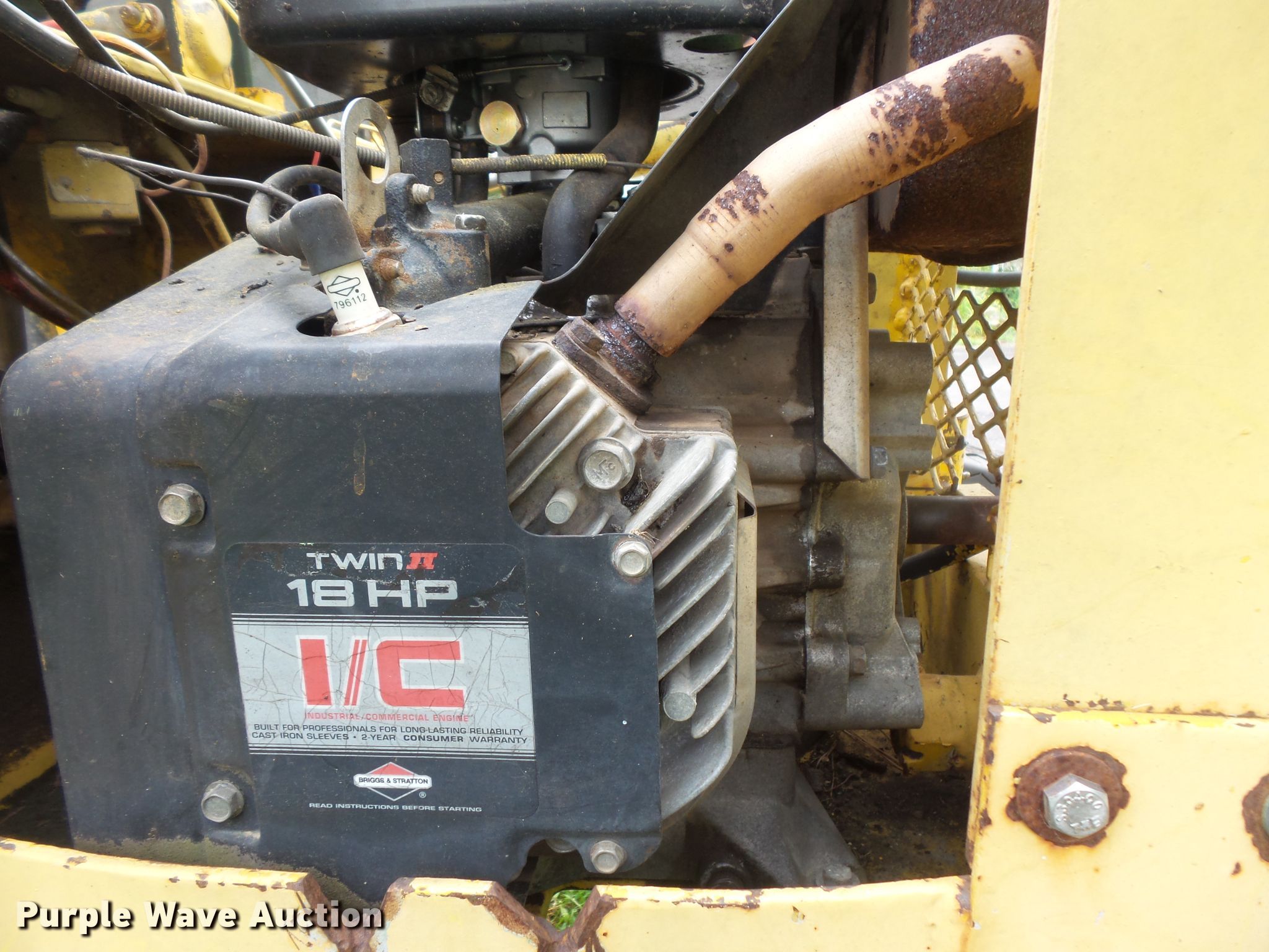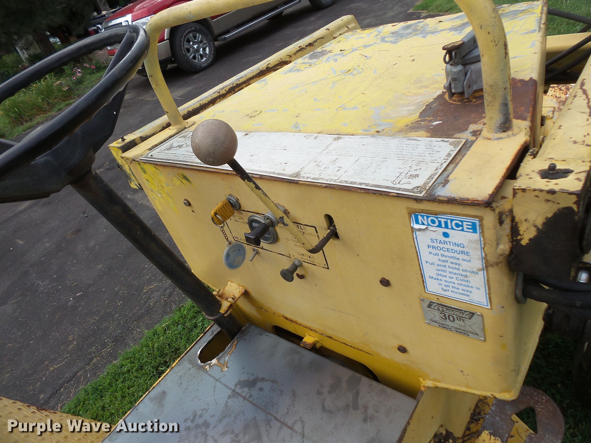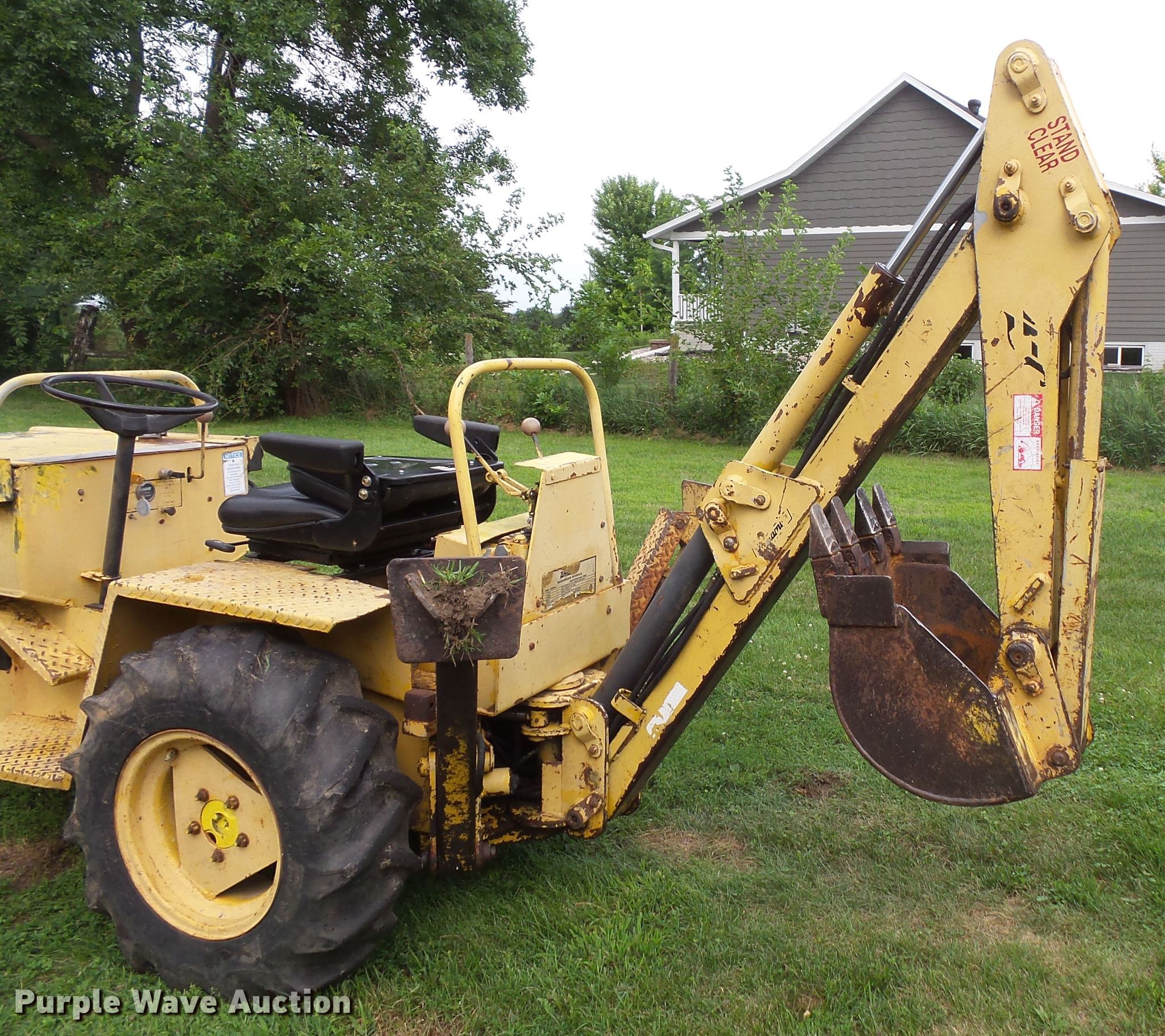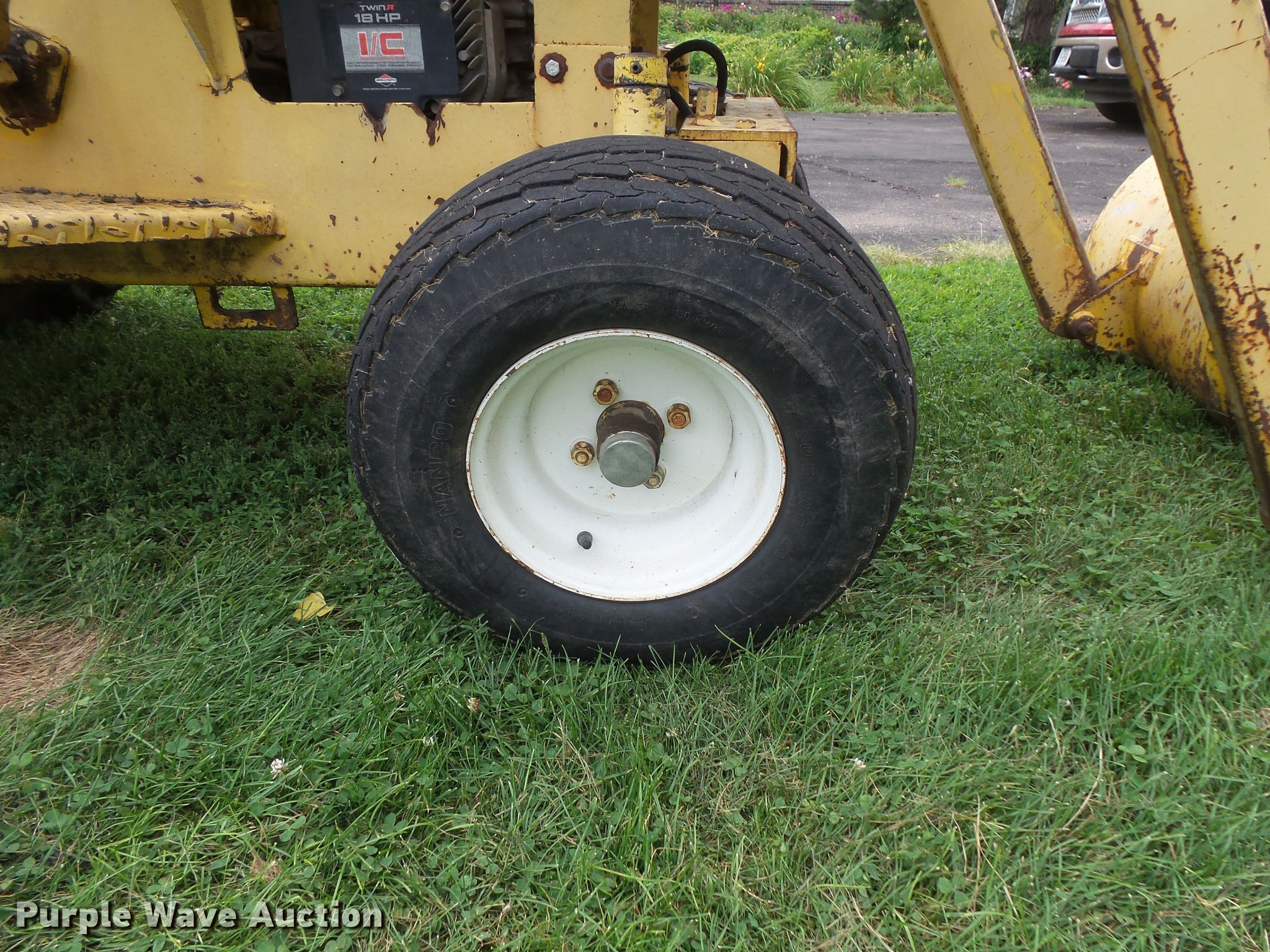 Purple Wave is selling a used Tractor Loader Backhoe in Iowa. This item is a Terramite T5C backhoe with the following: 2,648 hours on meter, Briggs & Stratton two cylinder gas engine, Hydrostatic transmission, Two stick backhoe controls, 48"W loader bucket, Weld-on cutting edge, 33" stick length, 16"W backhoe bucket, Weld-on cutting edge, 20x5x8.00-10 front tires, 9.5-16 rear tires