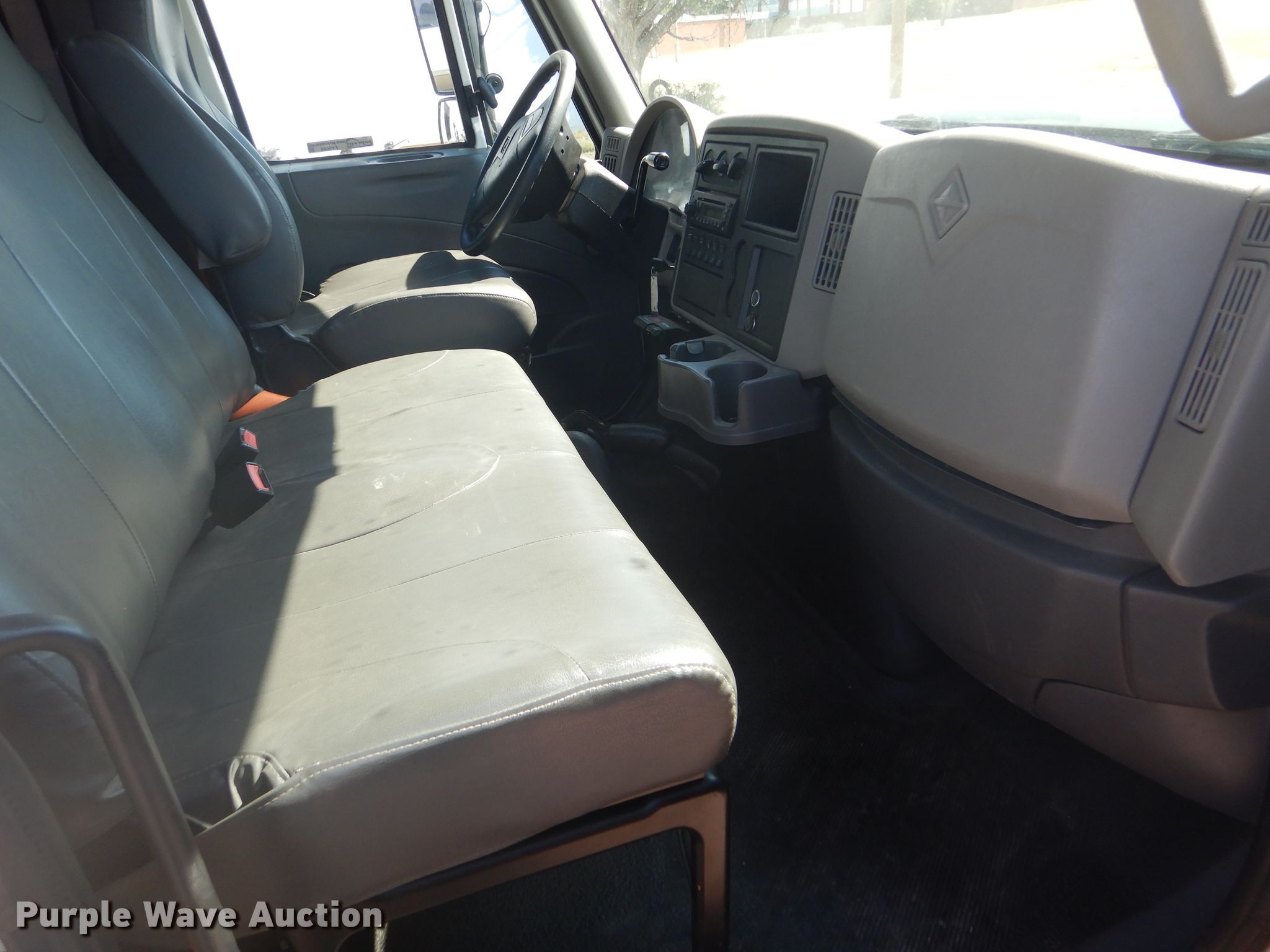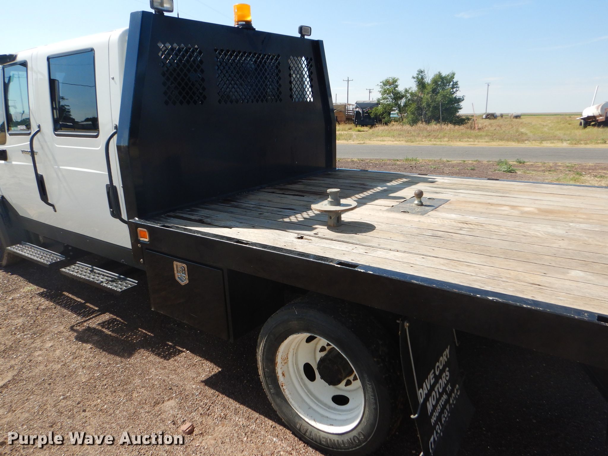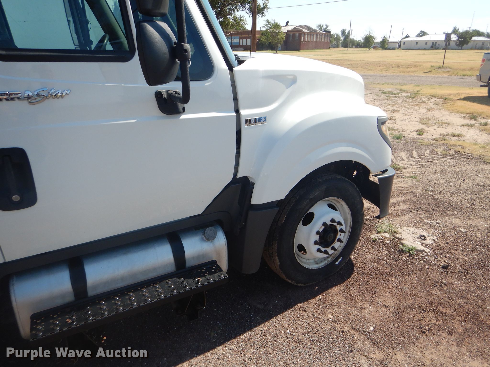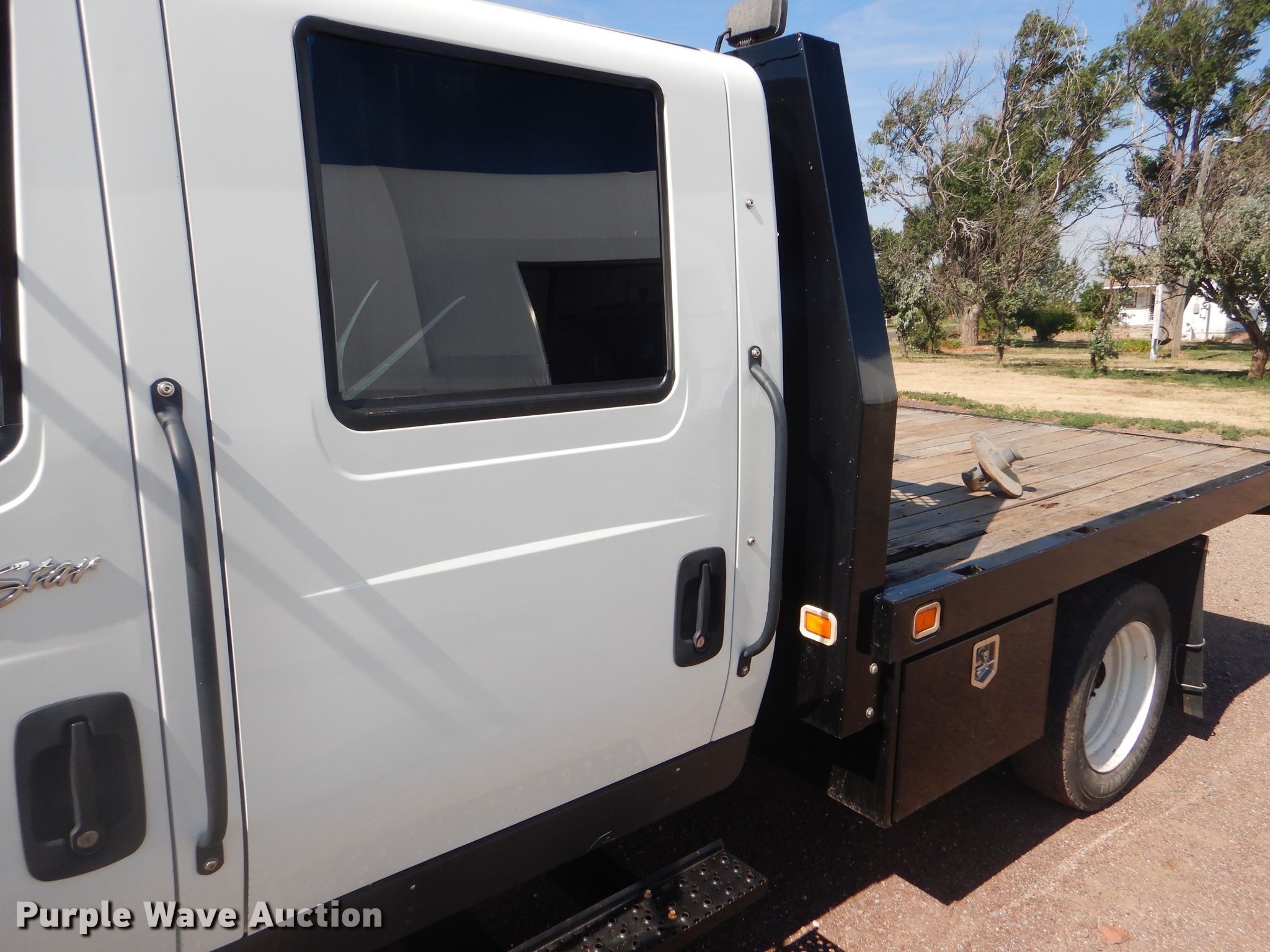 Purple Wave is selling a used Flat Bed Truck in Oklahoma. This item is a 2012 International TerraStar Crew Cab flatbed truck with the following: 55,464 miles on odometer, International MaxxForce 7 6.4L V8 diesel engine, Automatic transmission, Single axle, AC and heat, Power windows and locks, Brake controller, 9'3"L x 96"W flatbed, Gooseneck ball, Spring suspension, Hydraulic brakes, 225/70R19.5 tires, GVWR 19,500 lbs, Two-way radio not included