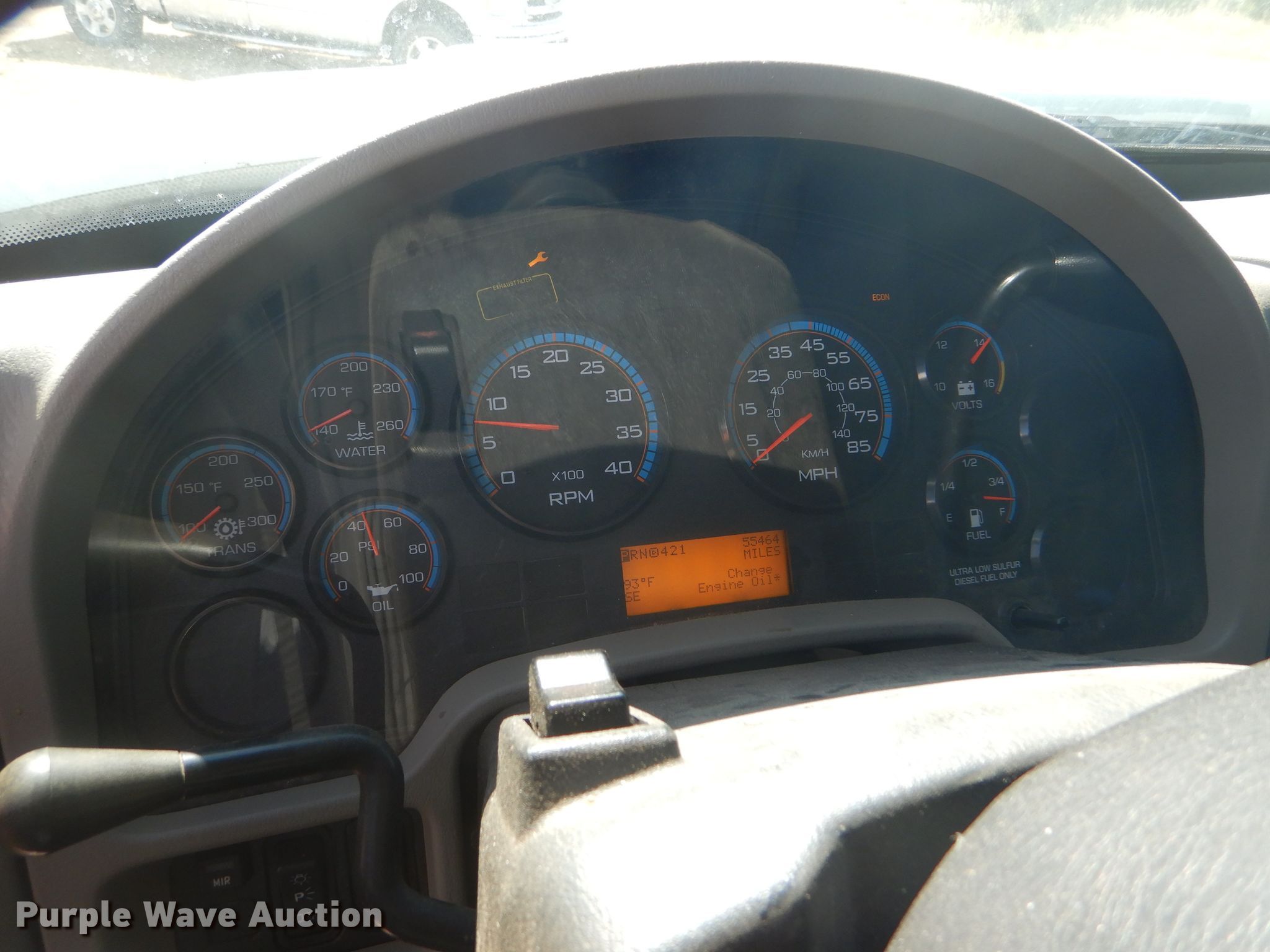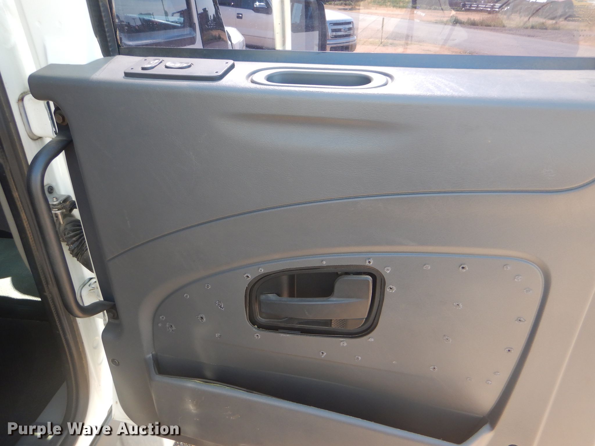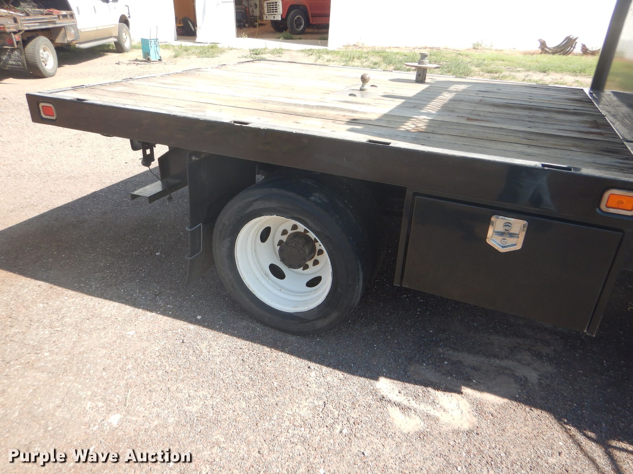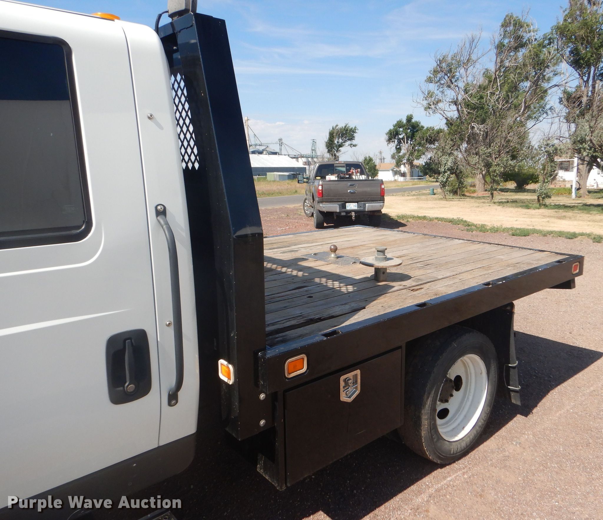 Purple Wave is selling a used Flat Bed Truck in Oklahoma. This item is a 2012 International TerraStar Crew Cab flatbed truck with the following: 55,464 miles on odometer, International MaxxForce 7 6.4L V8 diesel engine, Automatic transmission, Single axle, AC and heat, Power windows and locks, Brake controller, 9'3"L x 96"W flatbed, Gooseneck ball, Spring suspension, Hydraulic brakes, 225/70R19.5 tires, GVWR 19,500 lbs, Two-way radio not included