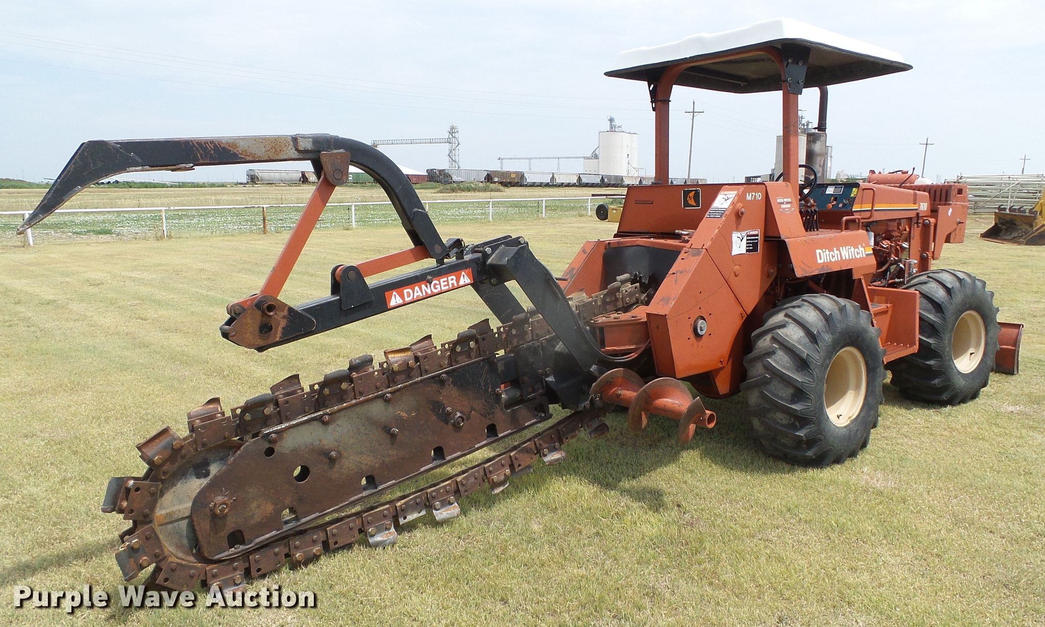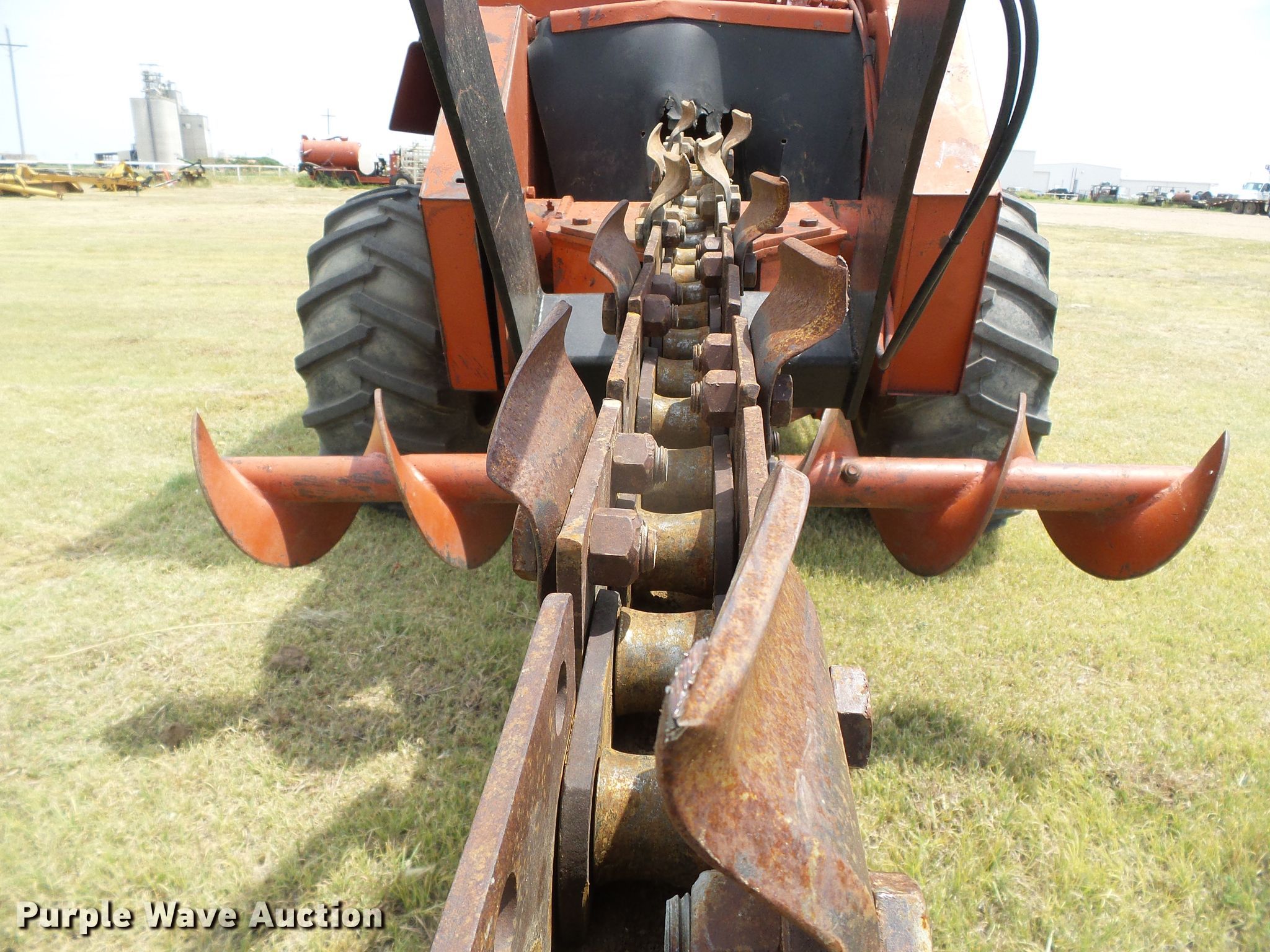 Purple Wave is selling a used Trencher or Rock Saw in Kansas. This item is a 1996 Ditch Witch 7610 trencher with the following: 391 hours on meter, Deutz four cylinder diesel engine, Four speed manual transmission, Four wheel drive, Canopy, Six-way backfill blade, Trencher model M710, 84" boom length, 6" cutting width, 19" wheel diameter, Dirt teeth, Hydraulic crumber, 16.5L-16.1 tires, Serial 5N0293