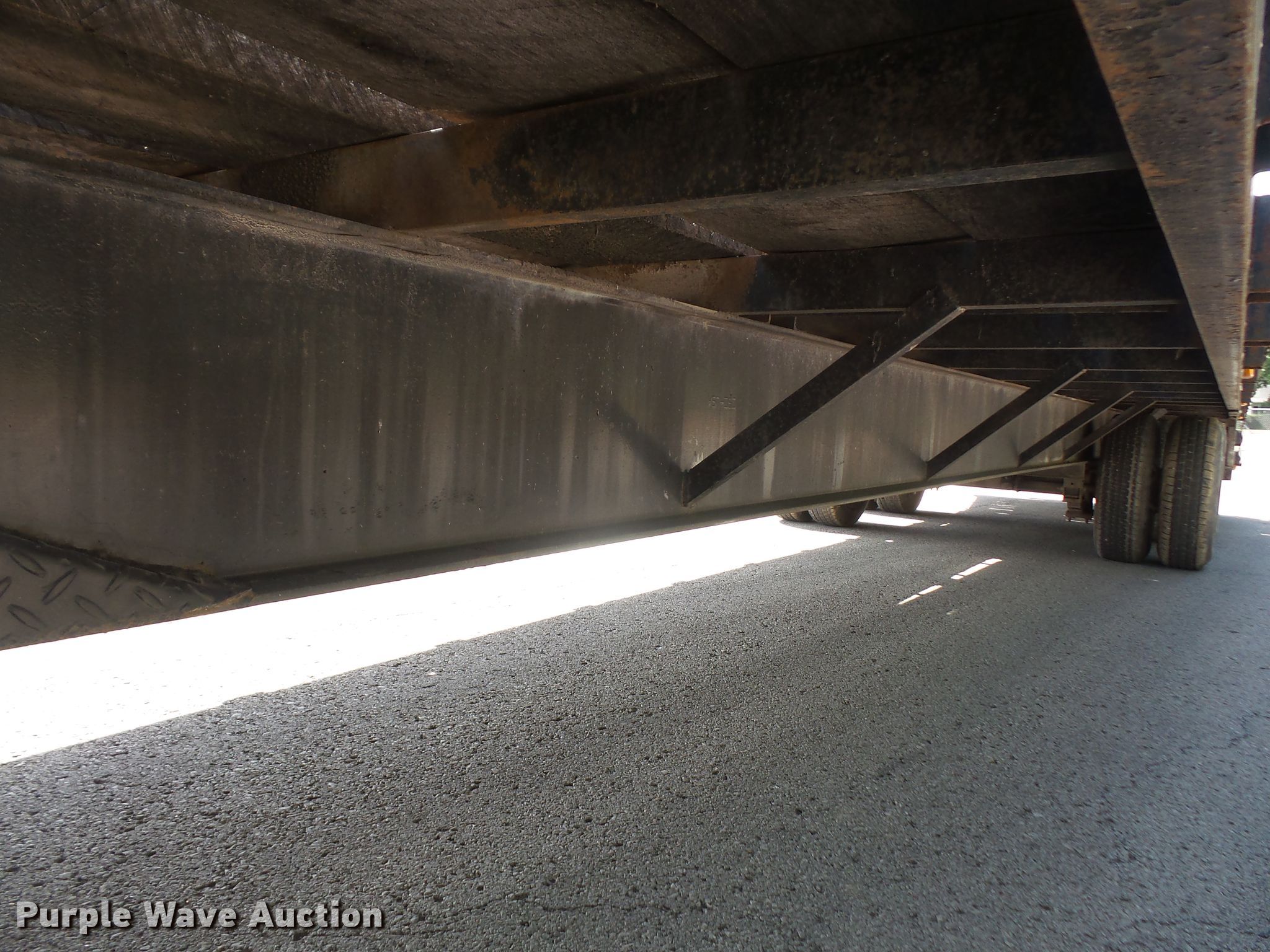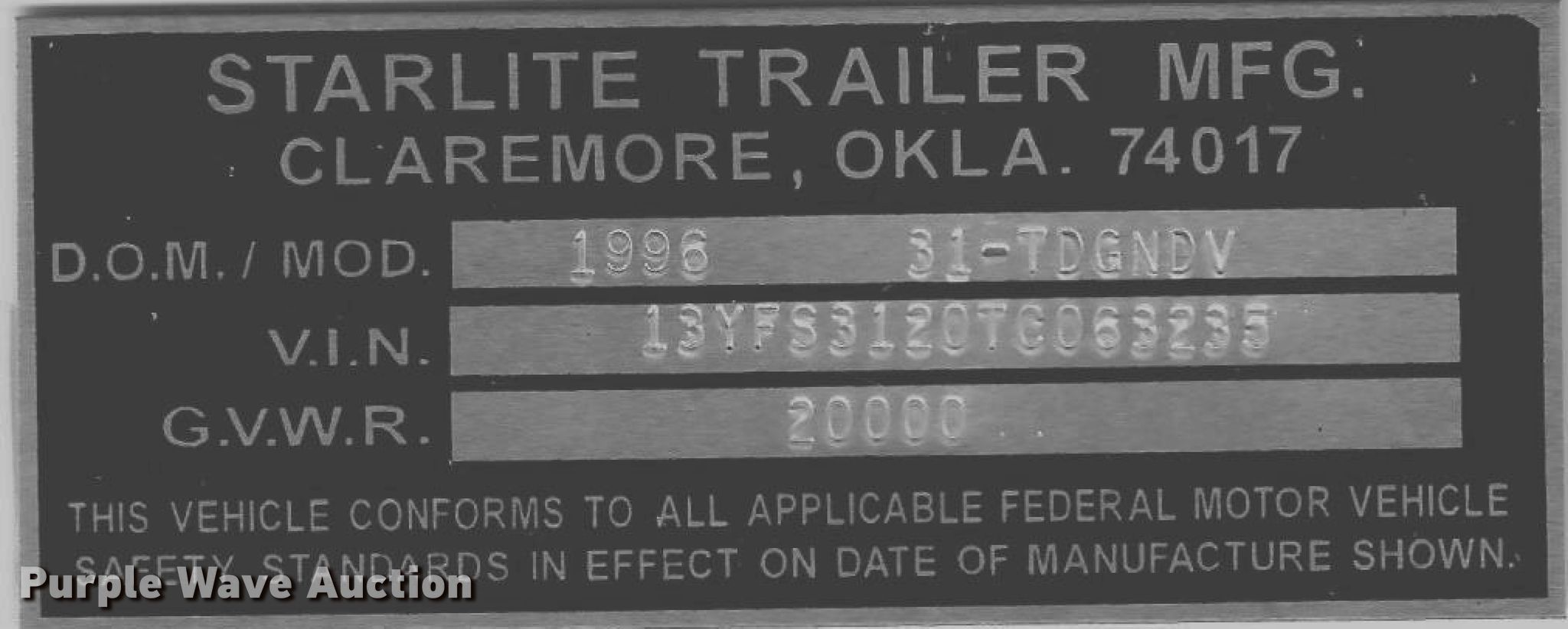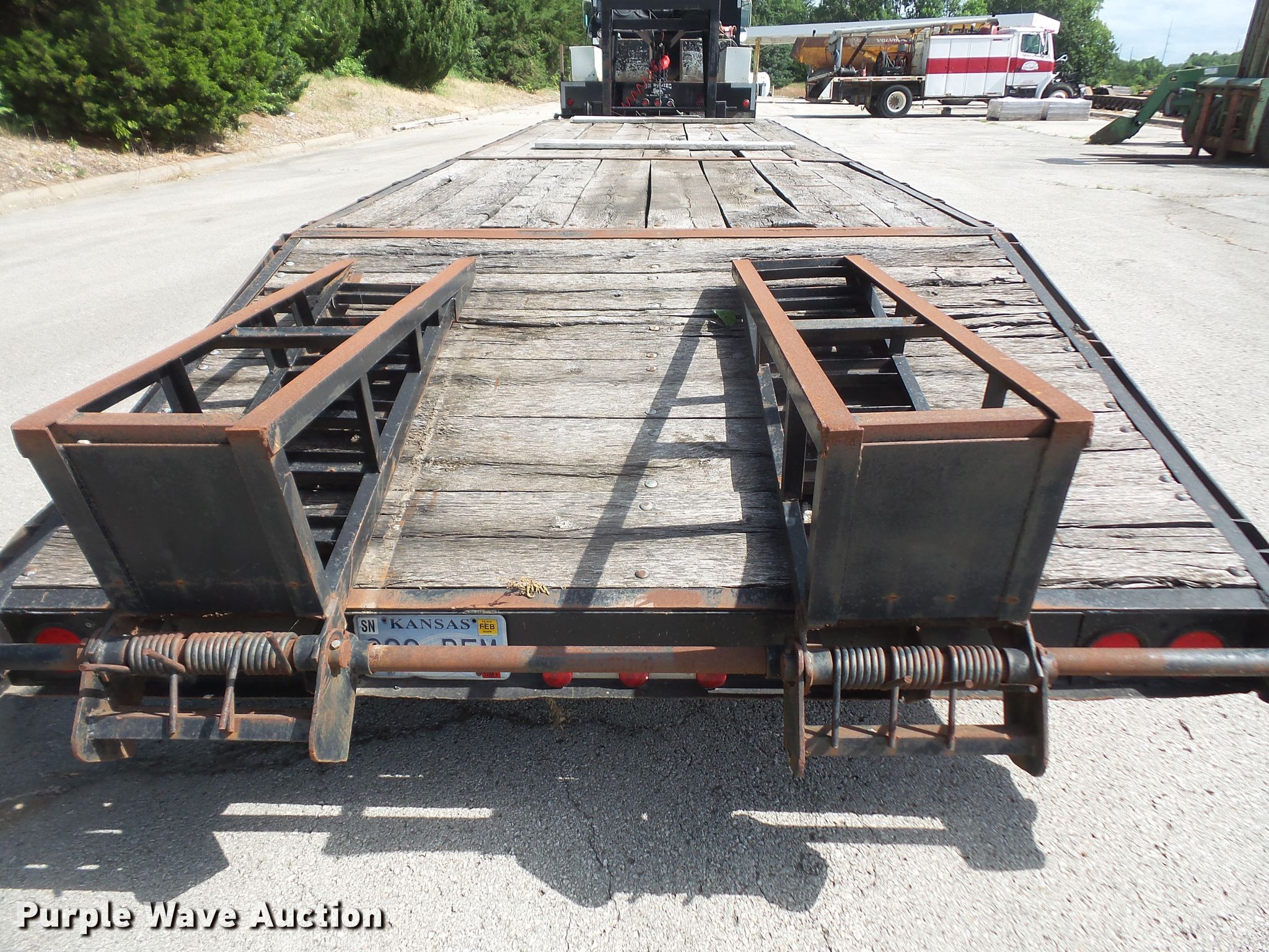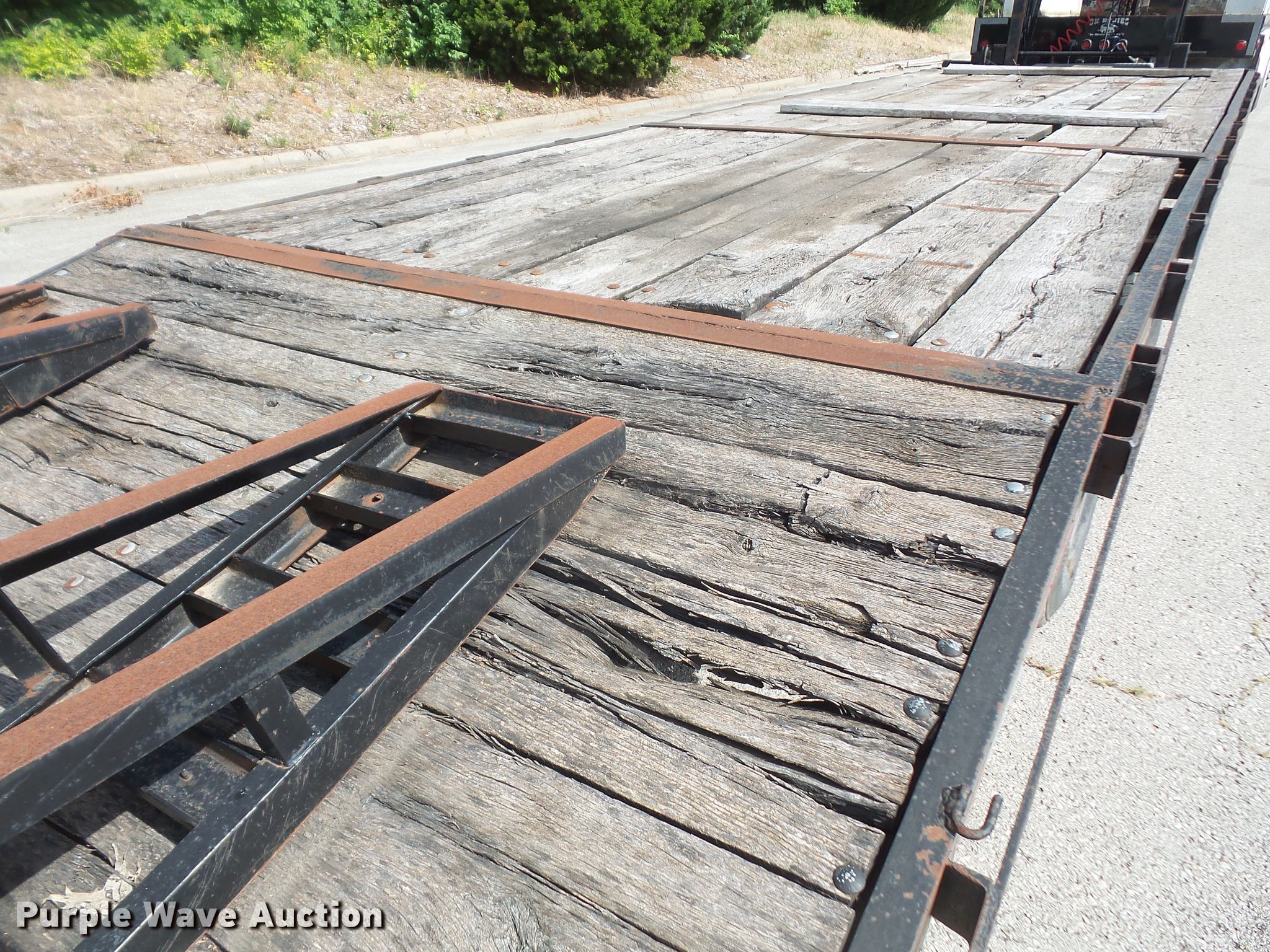 Purple Wave is selling a used Equip. Trailer in Kansas. This item is a 1996 Starlite equipment trailer with the following: 31'L overall length, 25'L x 101.5"W wood deck, 6' tail length, 5'L ramps, Dual leg landing gear, Spring suspension, Air brakes, Tandem axle, 235/85R16 tires