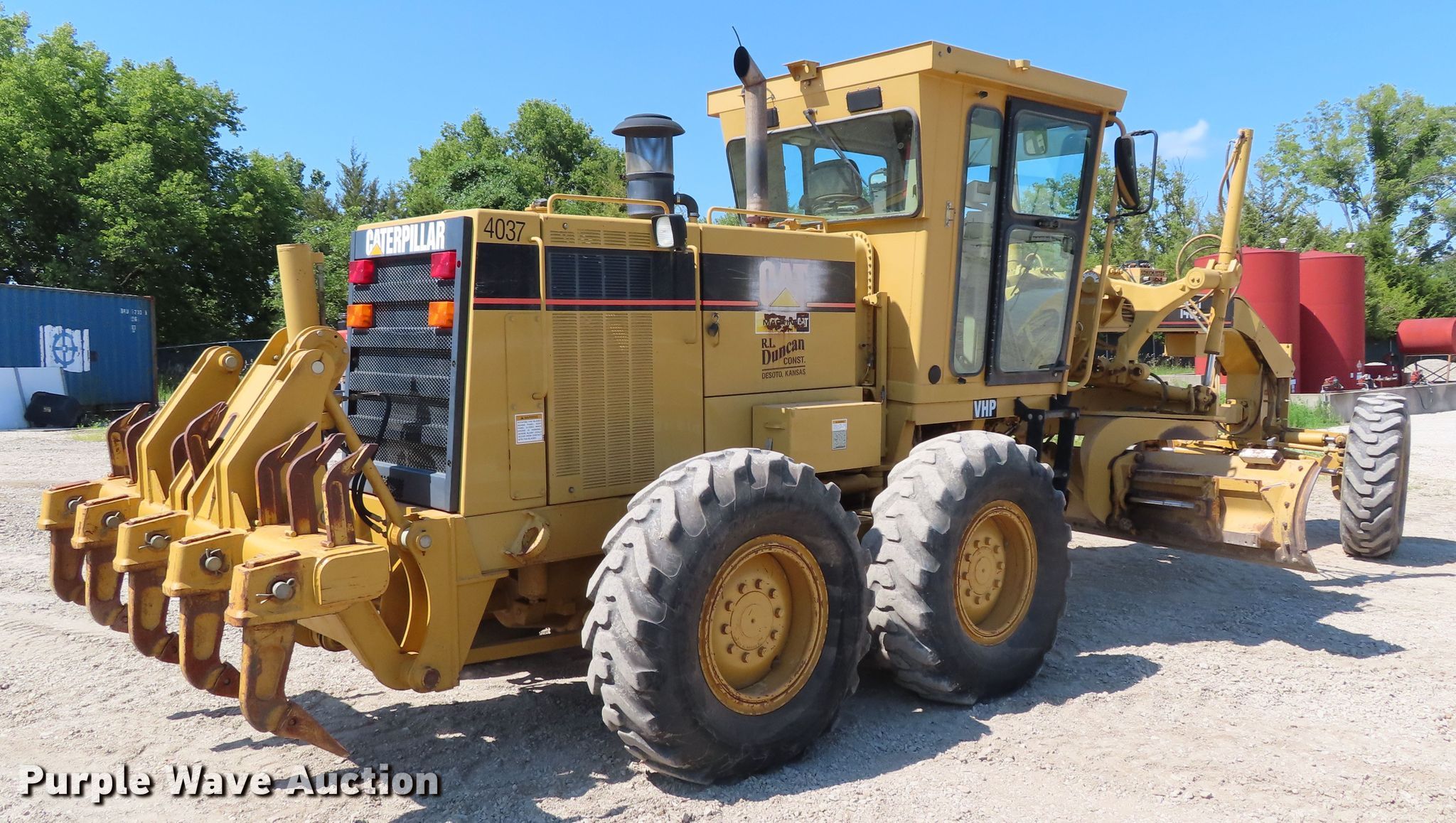 Purple Wave is selling a used Motor Grader in Kansas. This item is a 2002 Caterpillar 140H VHP motor grader with the following: 11,778 hours on meter, Caterpillar 3306 six cylinder diesel engine, 185 HP, Serial 6NC28190, Powershift transmission, 8F-6R gears, Enclosed cab, AC and heat, AM/FM, Nine control valves, Leica Icon grade control, Laser, Sonic, 14'W moldboard, Tip control, Side shift, Diamond rear ripper, (5) shanks, (9) scarifier teeth, 14.00-24 tires, Serial CAT0140HCTN01293