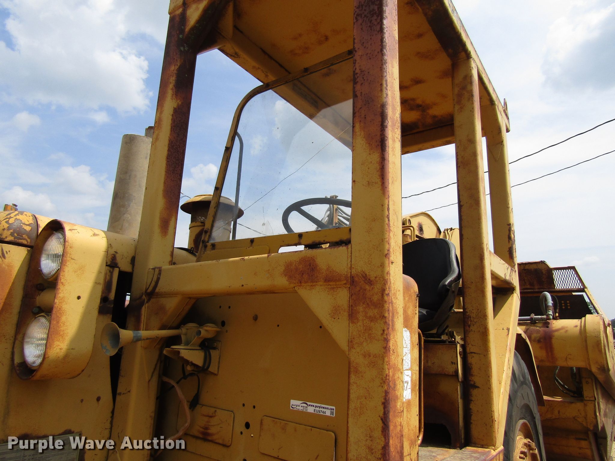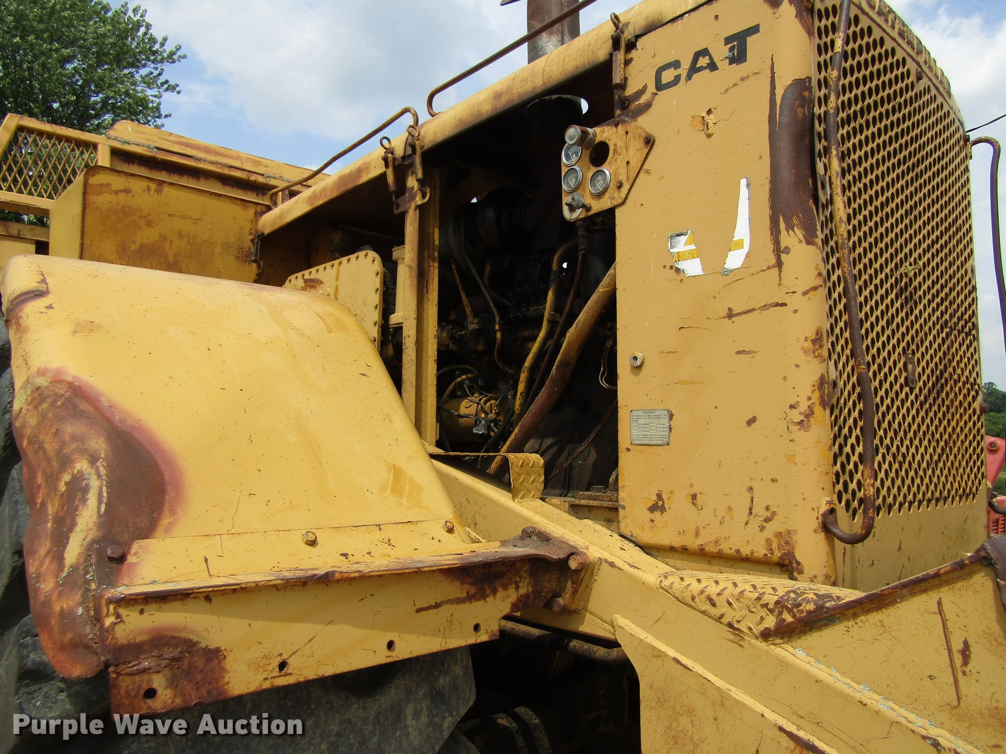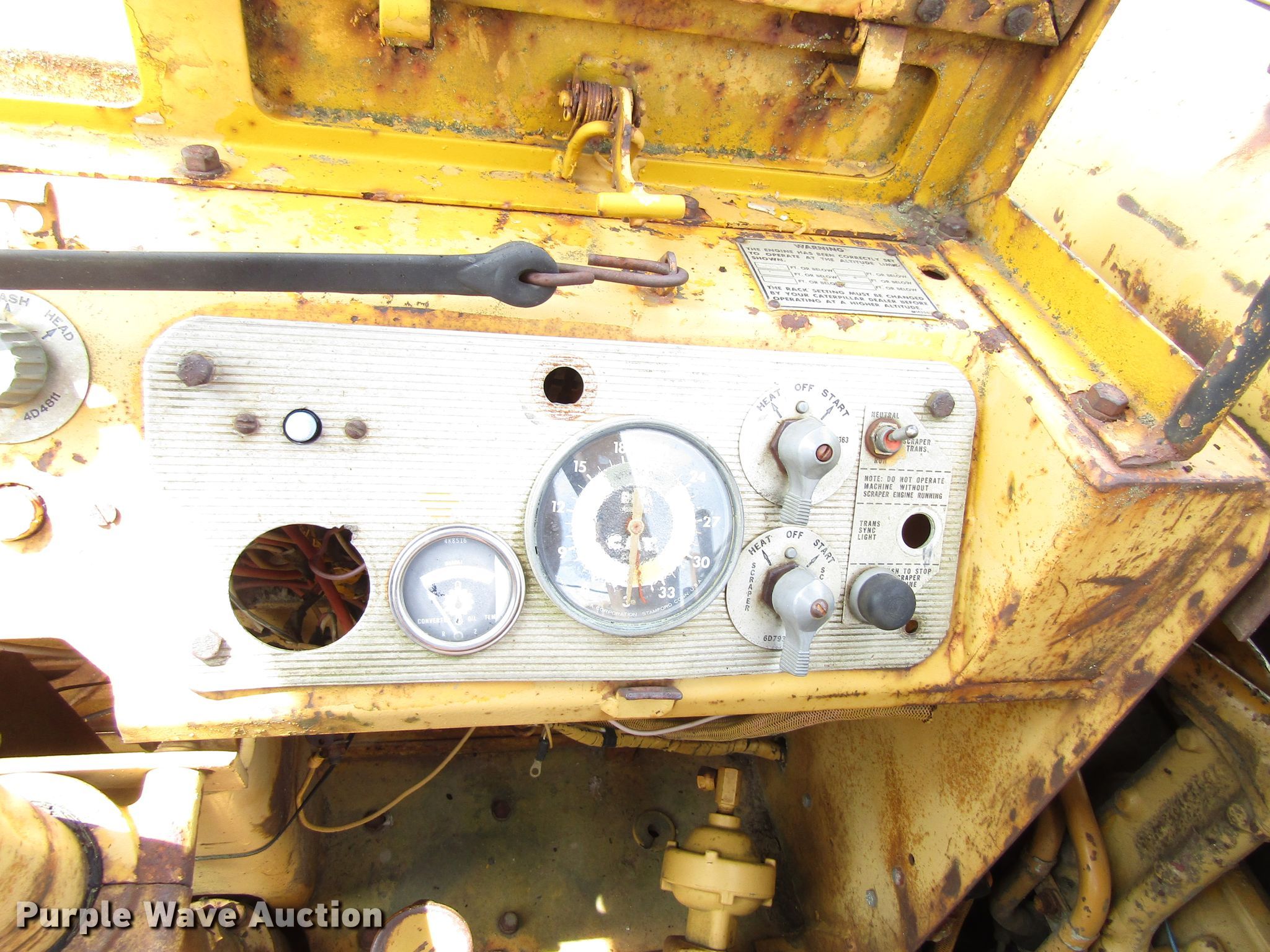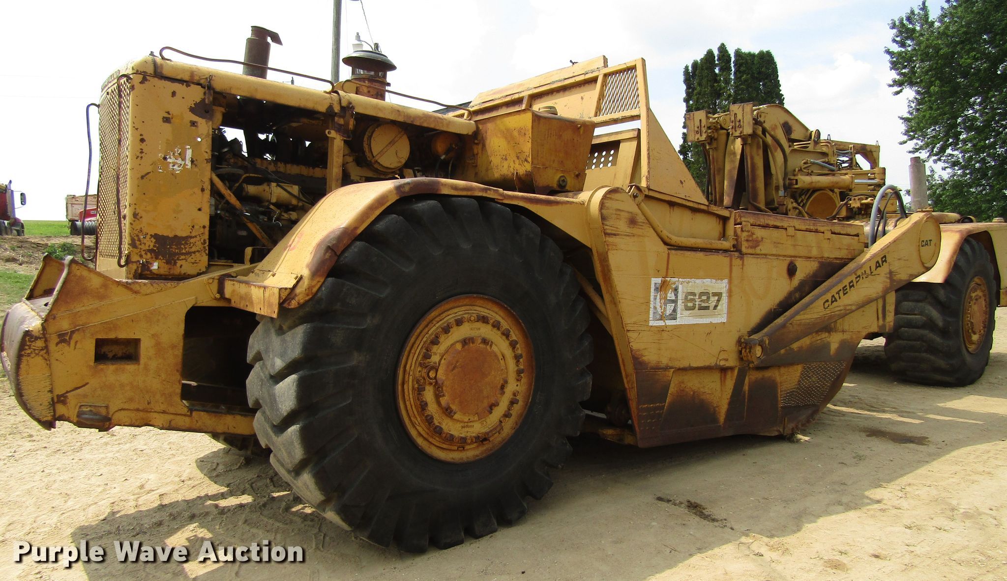 Purple Wave is selling a used Conventional Scraper in Iowa. This item is a 1969 Caterpillar 627 conventional scraper with the following: Caterpillar 3306 six cylinder diesel engines, Powershift transmission, 8F-1R gears, OROPS, 21 cu.yd. bowl capacity, Hydraulic lift, Three lever controls, Cushion hitch, Air brakes, 29.5-29 tires, Hydraulic leak, Serial 54K285