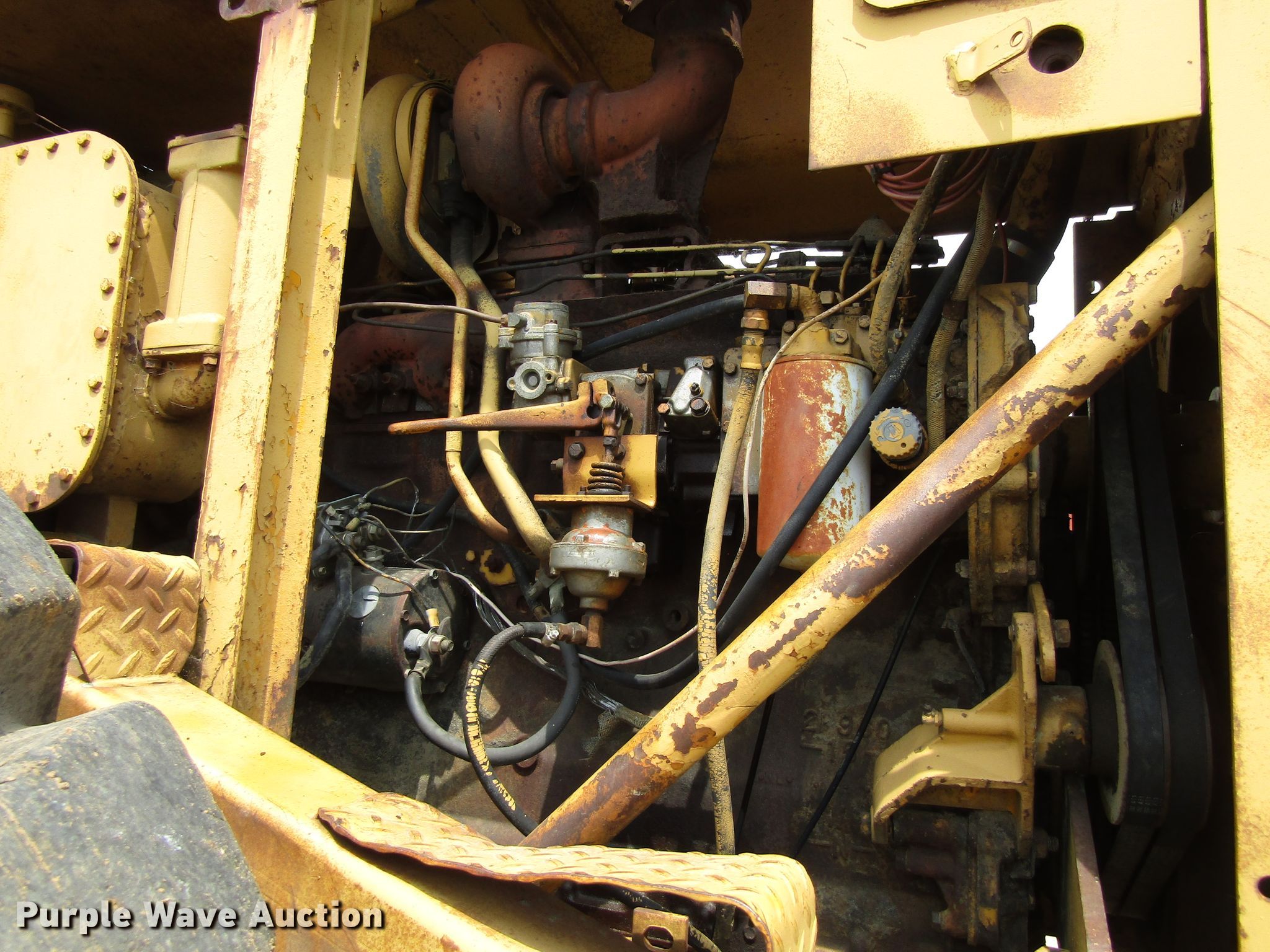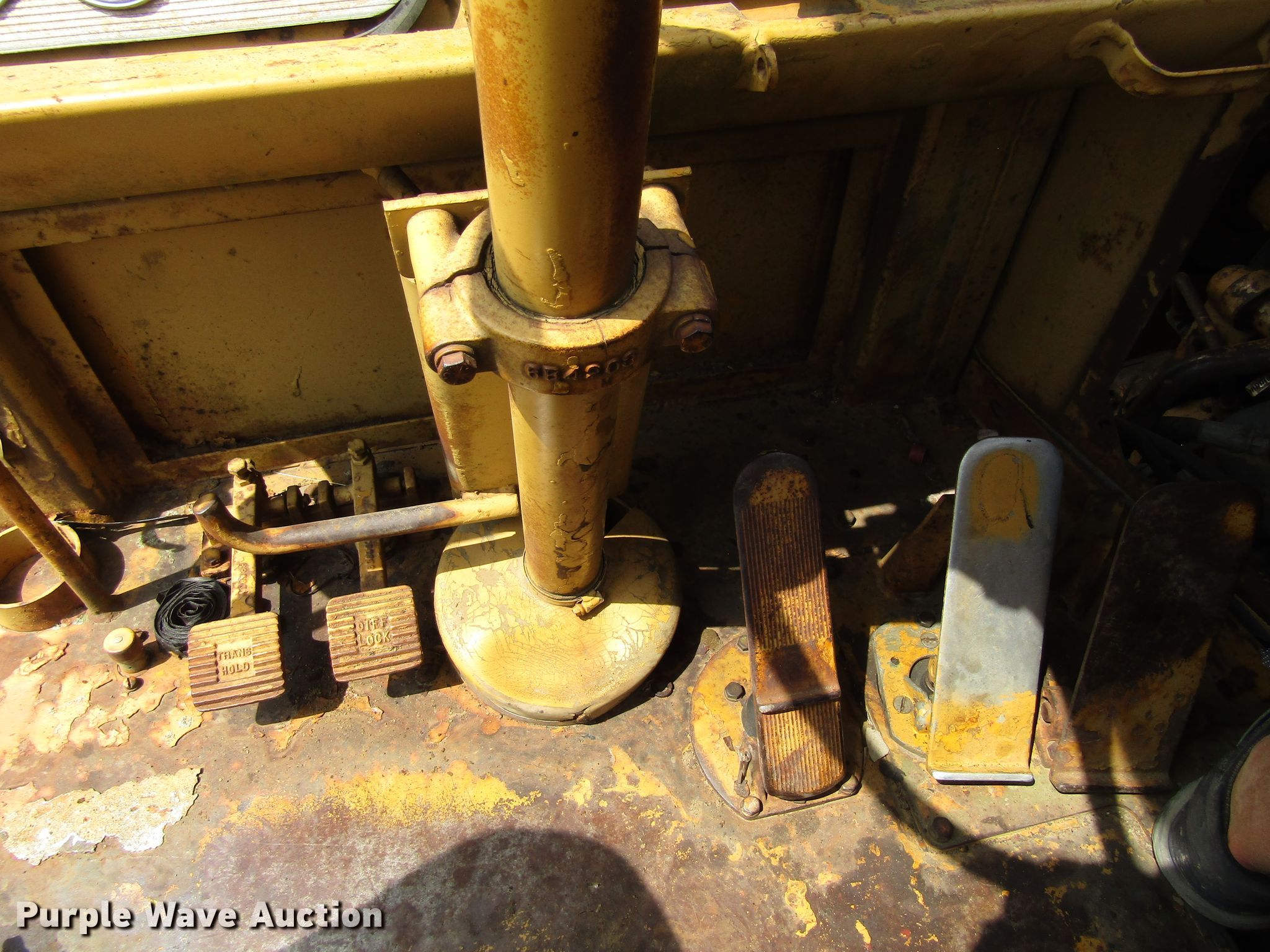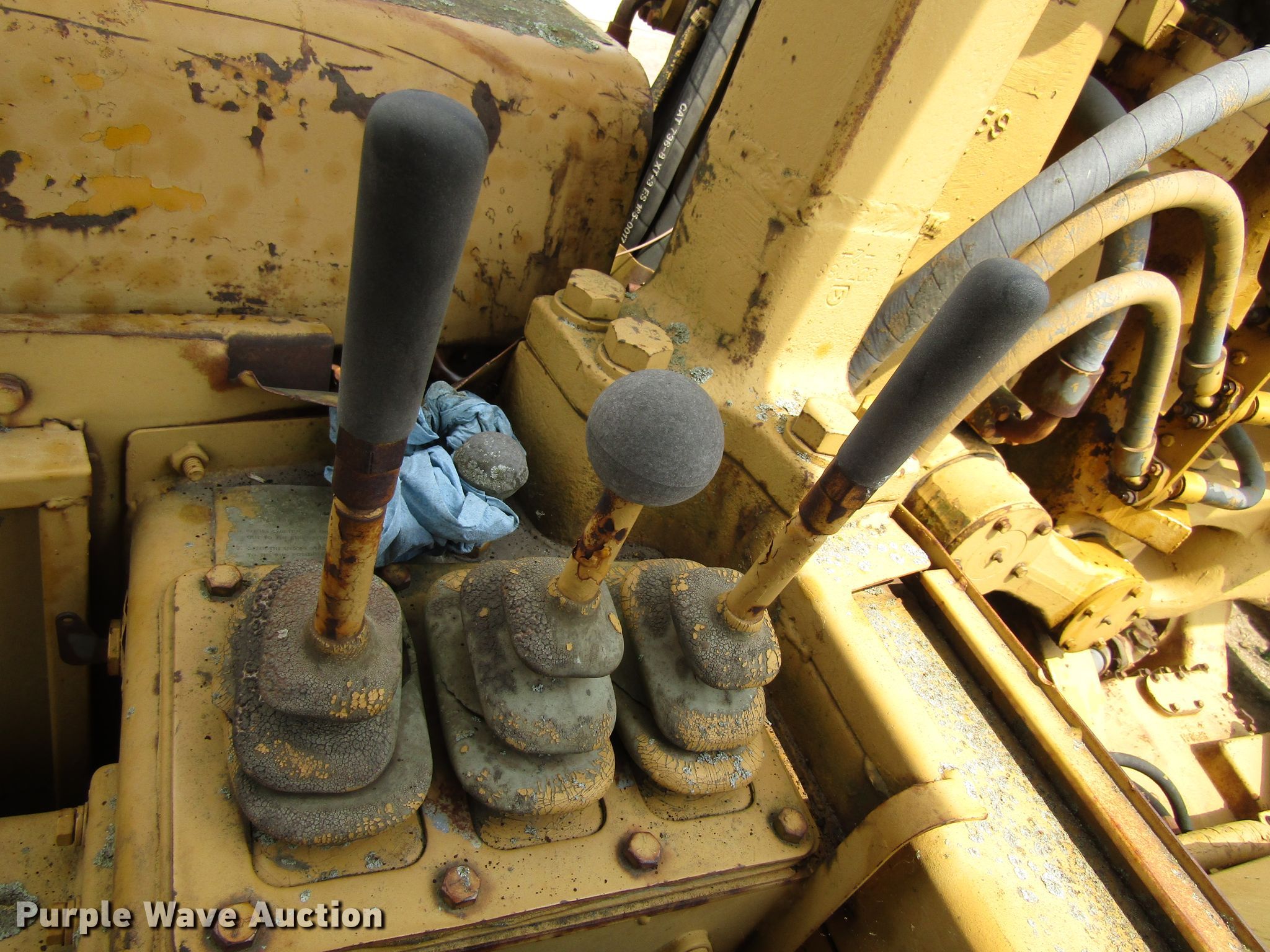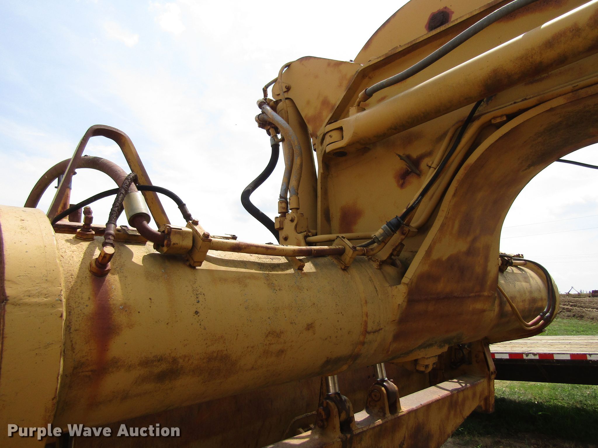 Purple Wave is selling a used Conventional Scraper in Iowa. This item is a 1974 Caterpillar 627B conventional scraper with the following: 12,188 hours on meter, Caterpillar 3306 six cylinder diesel engines, Powershift transmission, 8F-1R gears, OROPS, 21 cu.yd. bowl capacity, Reversible cutting edge, Hydraulic lift, Three lever controls, Cushion hitch, 29.5-35 tires, Serial 14S50