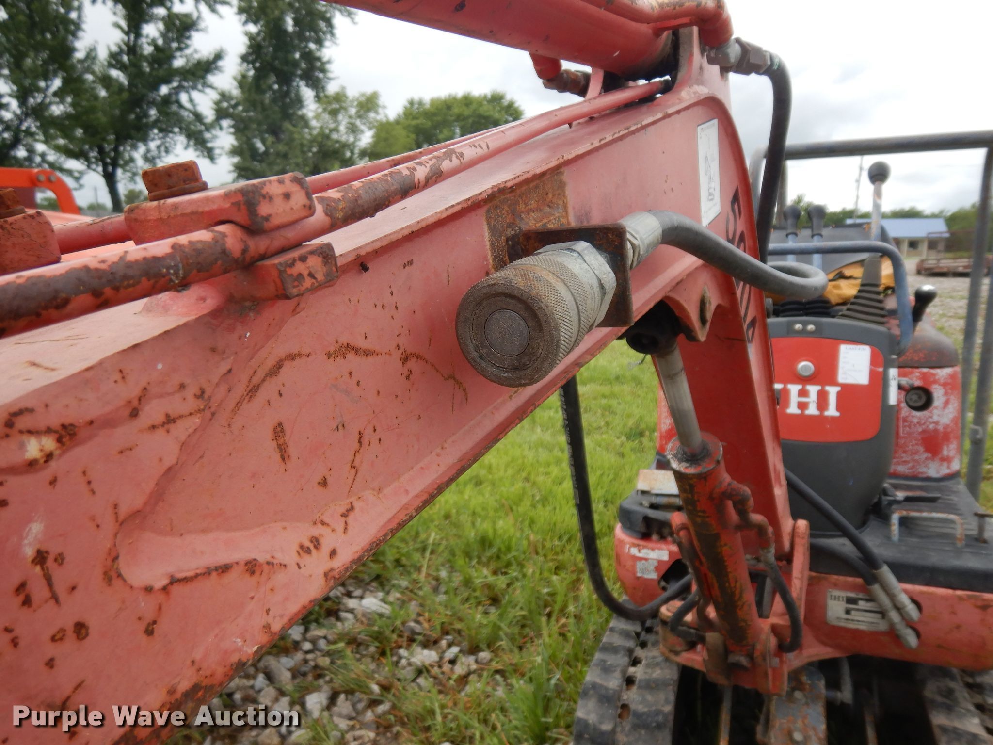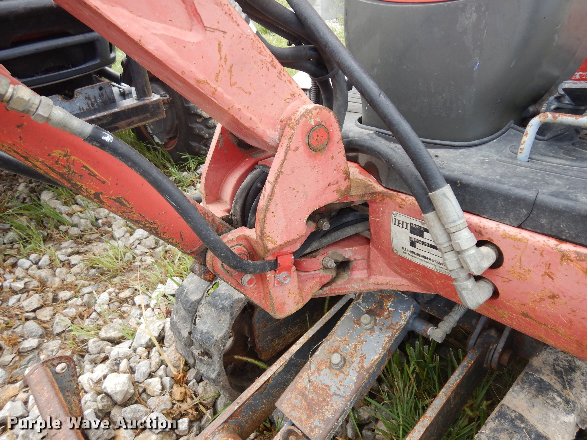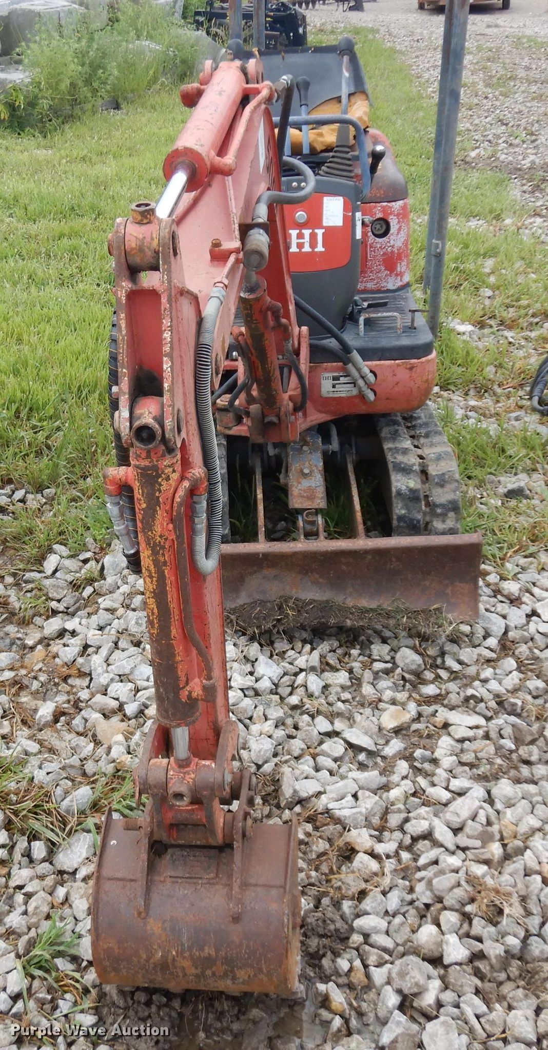 Purple Wave is selling a used Mini Excavator in Kansas. This item is a IHI mini excavator with the following: 1,947 hours on meter, Isuzu two cylinder diesel engine, Serail 506248, Hydrostatic transmission, 31"W backfill blade, Weing boom, 28" stick length, 12"W bucket, Weld-on cutting edge, (4) teeth, Breaker, Auxiliary hydraulics, 7"W rubber tracks, Serial BR001425