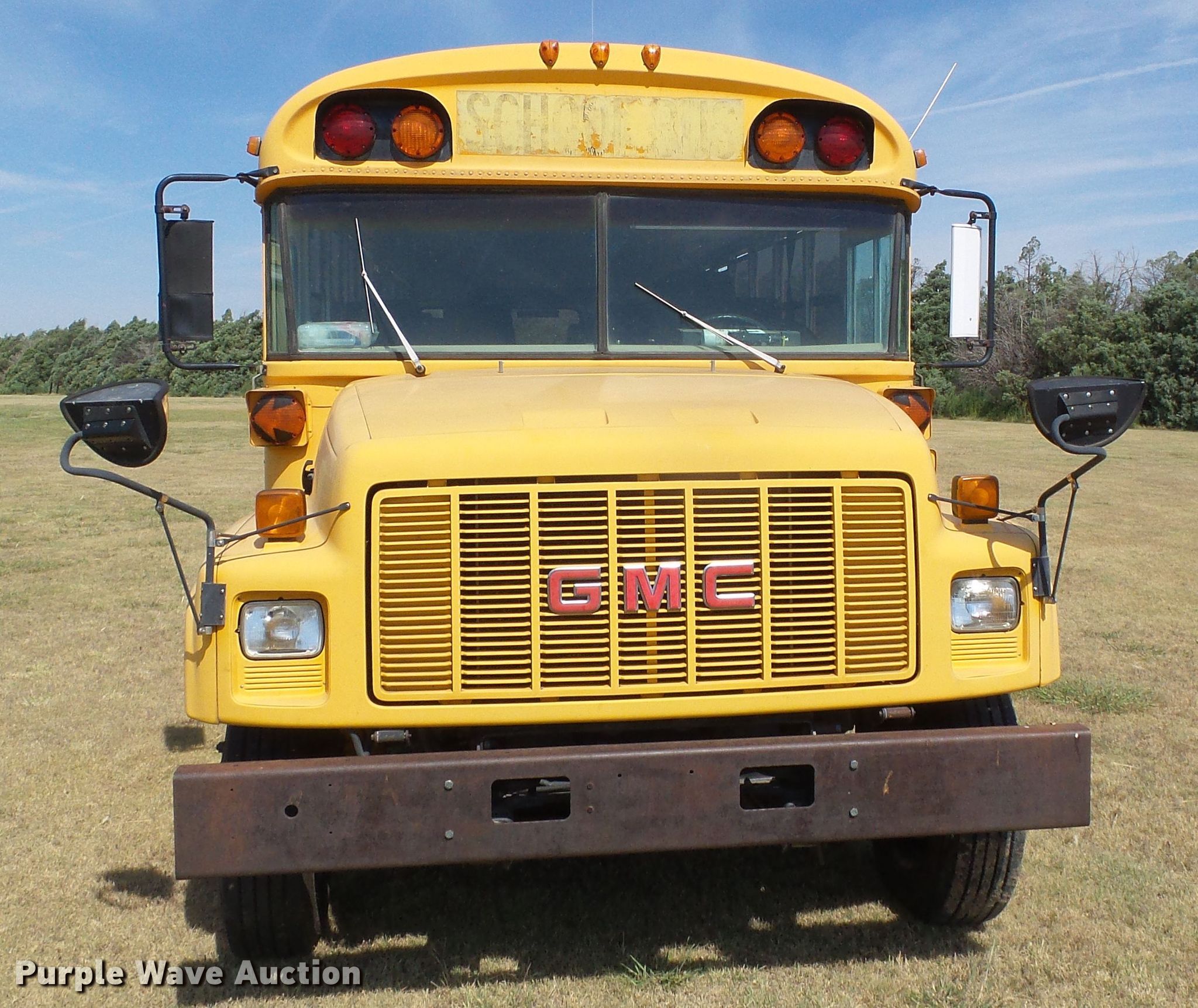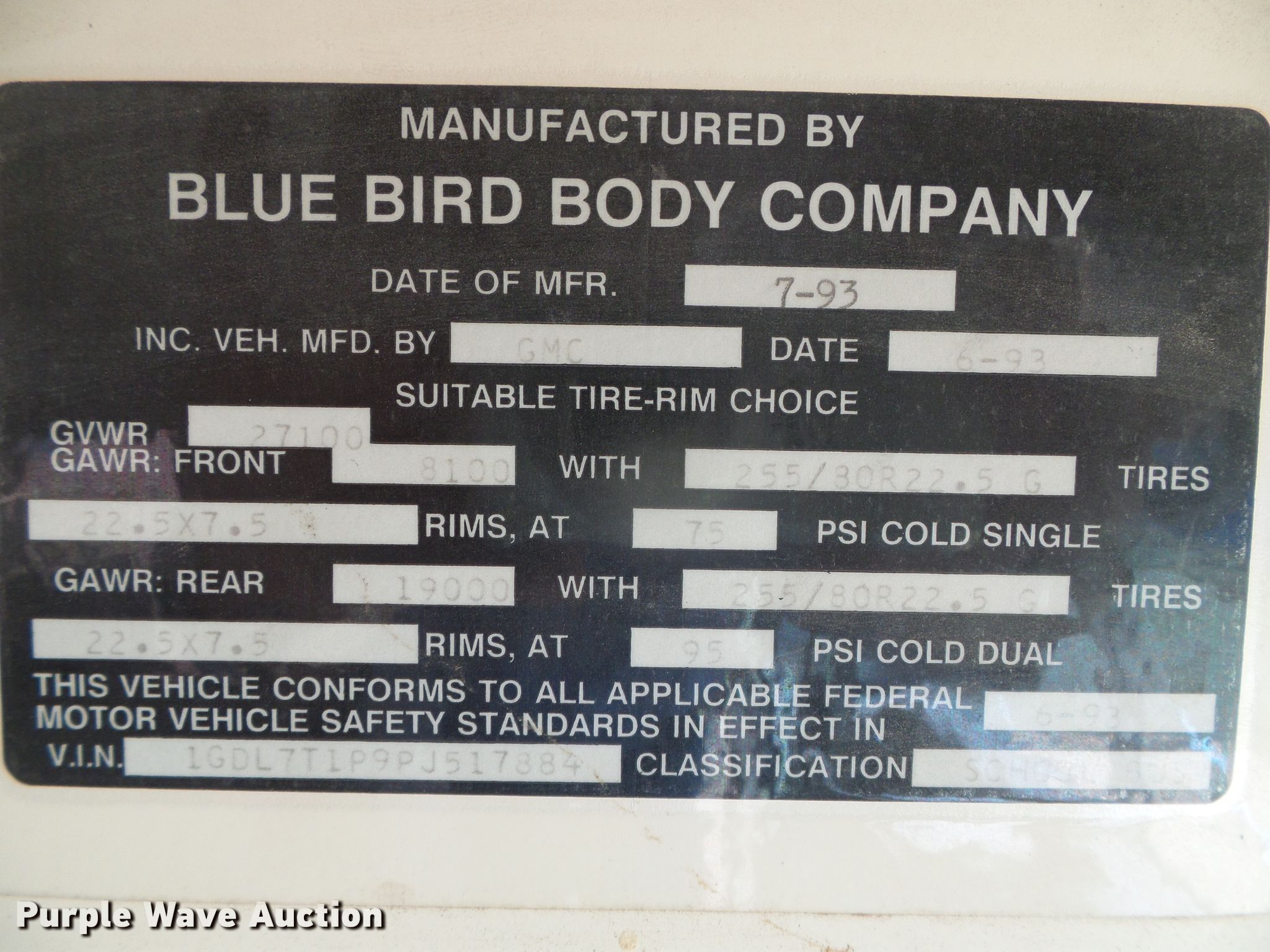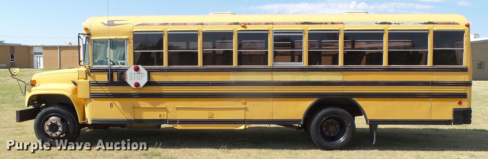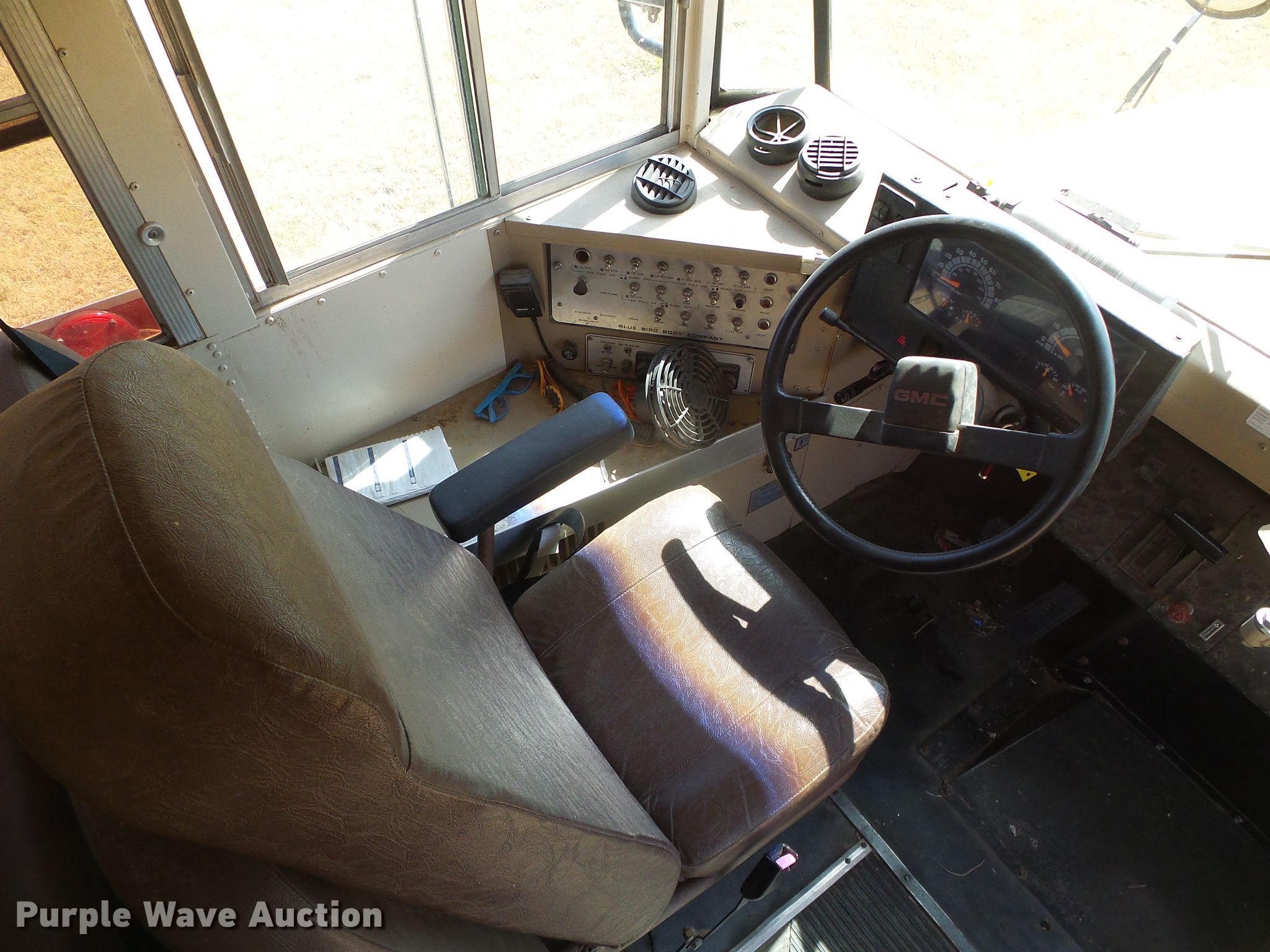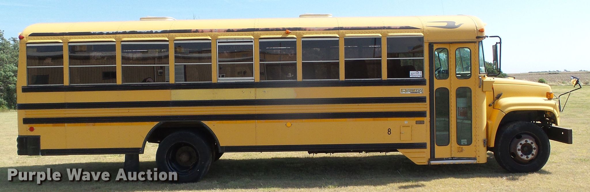Purple Wave is selling a used Bus in Kansas. This item is a 1993 GMC Blue Bird school bus with the following: 89,410 miles on odometer, 6.0L V8 gas engine, Automatic transmission, Single axle, Heat, 28 passenger capacity, Spring suspension, Hydraulic brakes, 255/70R22.5 tires, Unit# 8