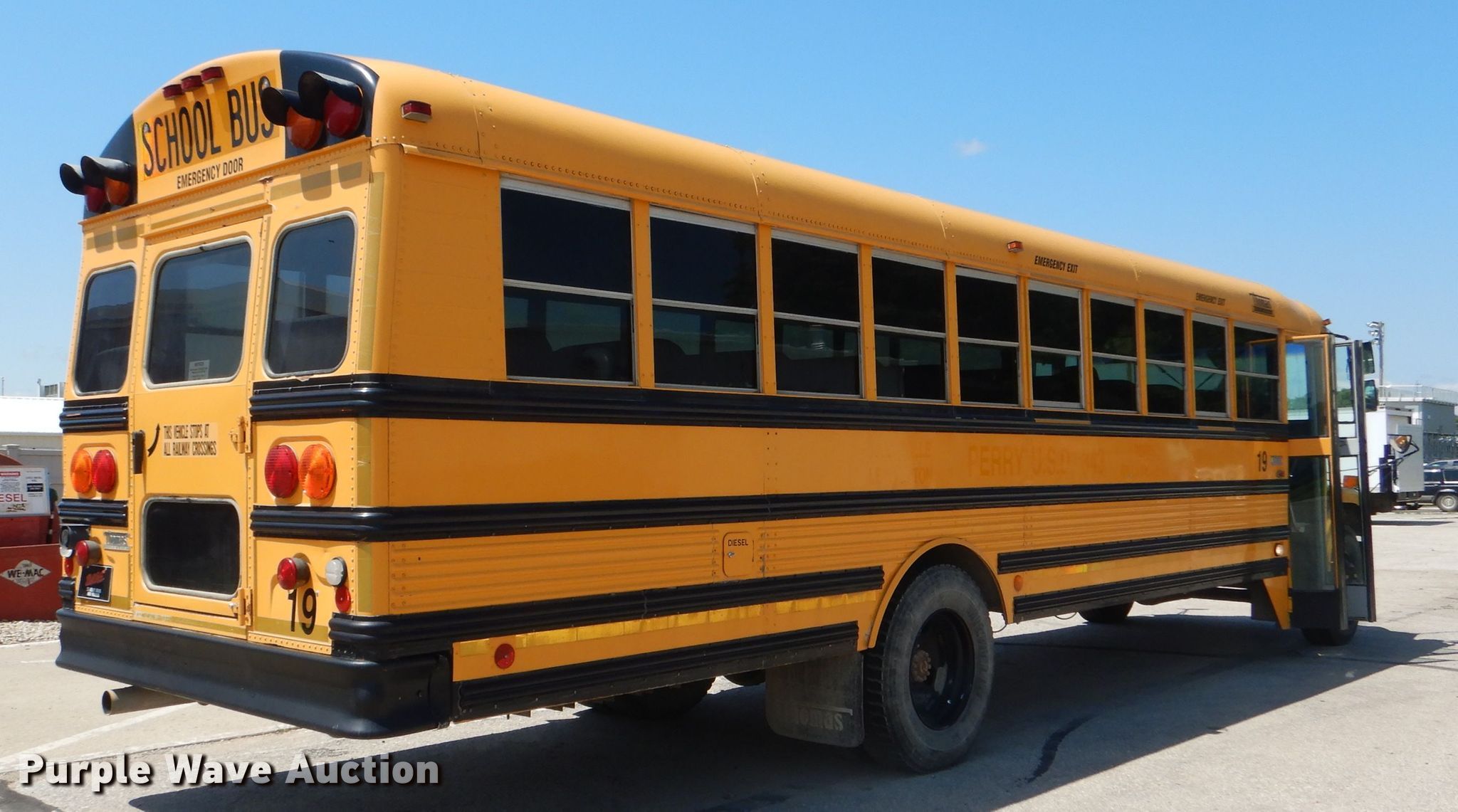 2001 Freightliner FS65 school bus. 164,275 miles on odometer, 7,517 hours on meter, Caterpillar 3126 7.2L L6 diesel engine Serial 8YL70127, Automatic transmission, Single axle, Heat, Heated mirrors, 65 passenger capacity, Spring suspension, Hydraulic brakes, 254" wheelbase, Firestone 11R22.5 tires, GVWR 29,000 lbs, Maintenance records available upon request, Unit# 19. Kansas title. 4UZAAXAL81CH63868. Perry , KS 66073