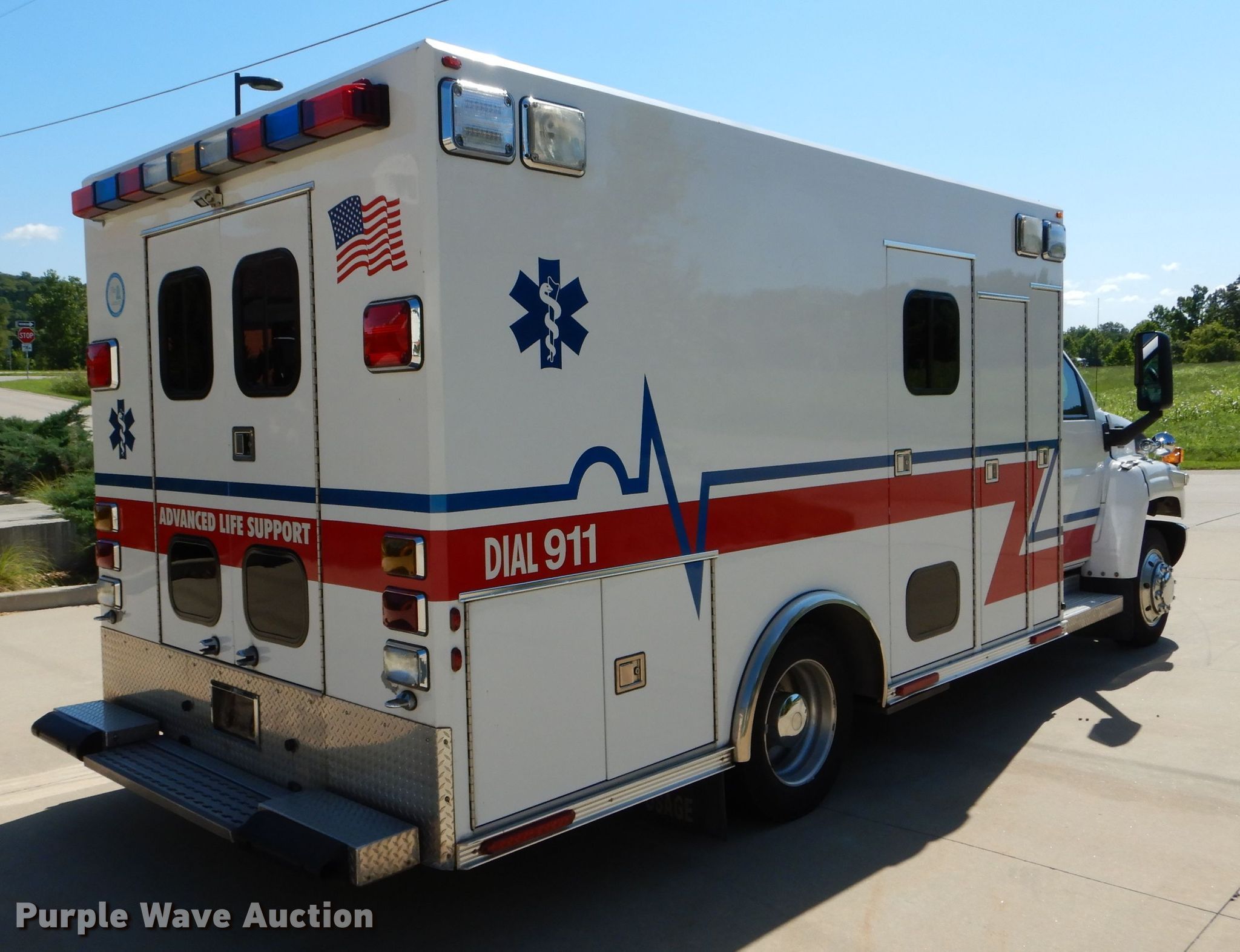 Purple Wave is selling a used Fire Truck or Emergency Vehicle in Missouri. This item is a 2009 Chevrolet C4500 ambulance with the following: 205,298 miles on odometer, 6.6L V8 OHV 32V diesel engine, Automatic transmission, Single axle, AC and heat, Power windows and locks, Backup camera, Osage Industries Type 1 Super Warrior body, PA/siren controls, Oxygen hookups, Air suspension, Hydraulic brakes, 166" wheelbase, 225/70R19.5 tires, GVWR 17,500 lbs, Dead battery, Possible transmission issues