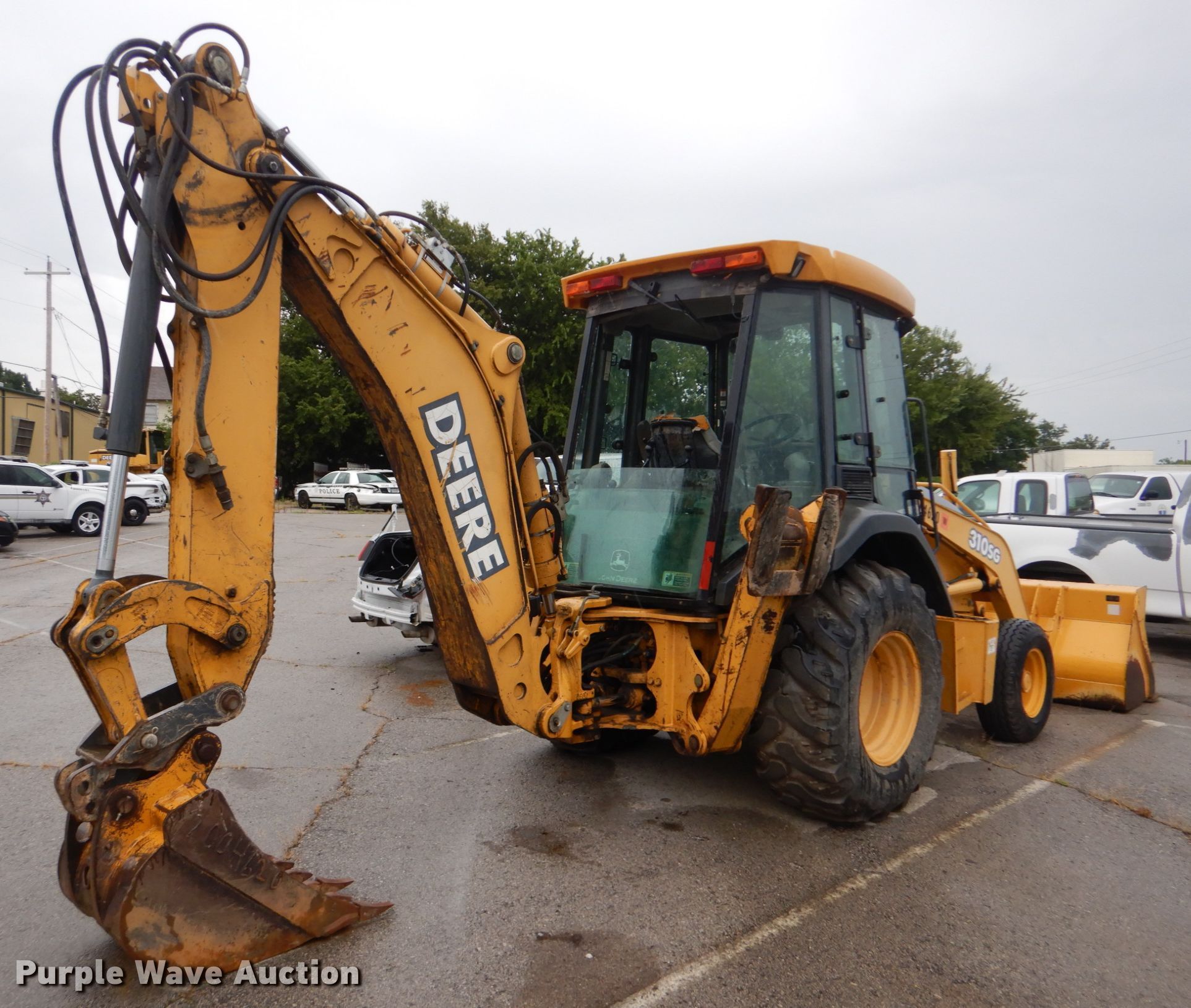 Purple Wave is selling a used Tractor Loader Backhoe in Oklahoma. This item is a 2004 John Deere 310SG backhoe with the following: 7,567 hours on meter, John Deere 4045TT089 4.5L diesel engine, Powershift transmission, 4F-4R gears, Differential lock, Enclosed cab, AC and heat, Foot control, Pattern changer, Manual quick coupler, Auxiliary hydraulics, John Deere AT308080 loader bucket, 93"W, Bolt-on cutting edge, 1.3 cu. yd. capacity, Extendable stick, John Deere 24"W backhoe bucket, Bolt-on cutting edge, (5) teeth, Galaxy 12.5/80-18 front tires, Galaxy 19.5L-24 rear tires, One tire flat, Serial T0310SG942035