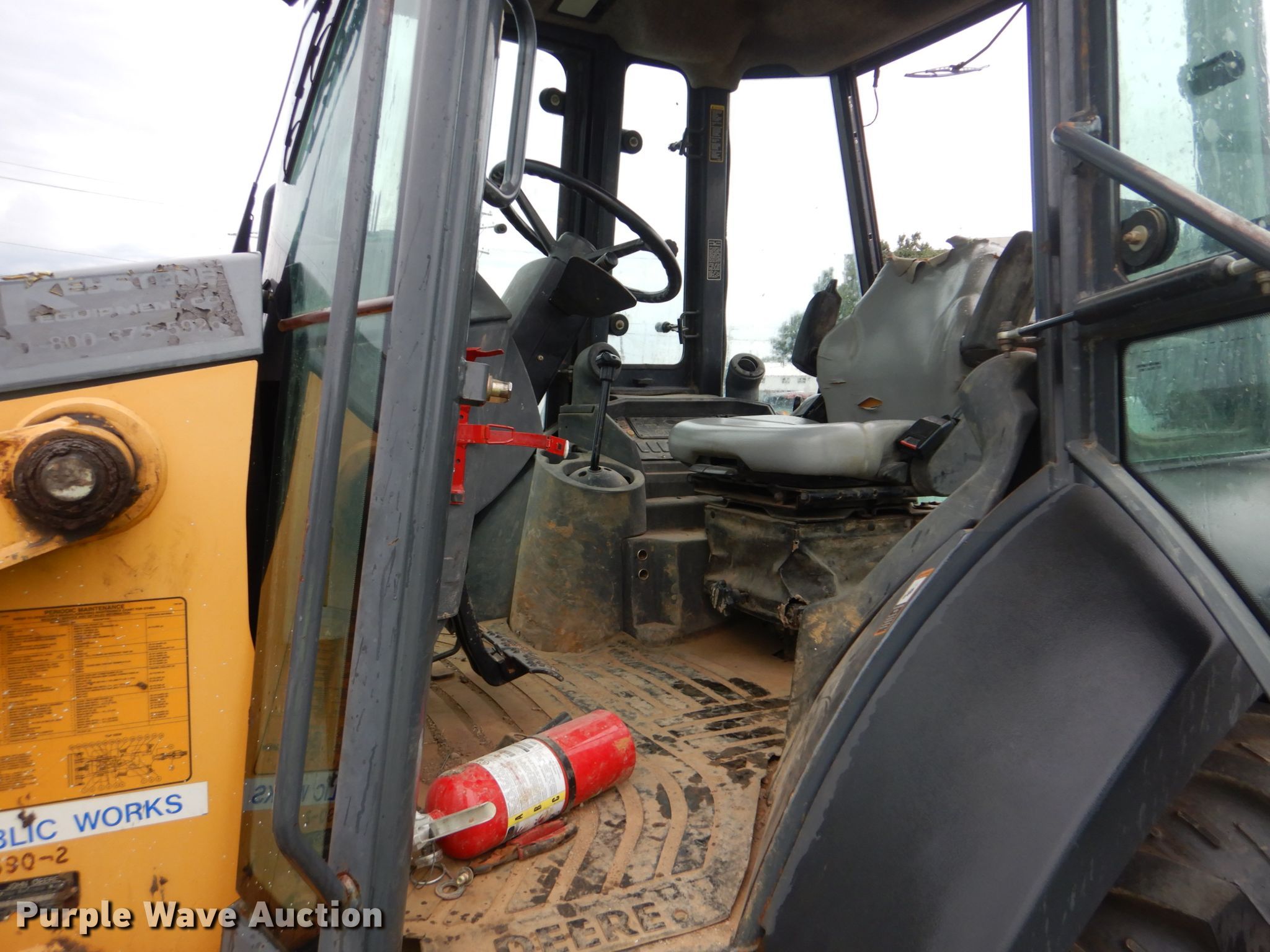 2004 John Deere 310SG backhoe. 7,567 hours on meter, John Deere 4045TT089 4.5L diesel engine, Powershift transmission 4F-4R gears, Differential lock, Enclosed cab AC and heat, Foot control, Pattern changer, Manual quick coupler, Auxiliary hydraulics, John Deere AT308080 loader bucket 93"W, Bolt-on cutting edge, 1.3 cu. yd. capacity, Extendable stick, John Deere 24"W backhoe bucket Bolt-on cutting edge, (5) teeth, Galaxy 12.5/80-18 front tires, Galaxy 19.5L-24 rear tires, One tire flat, Serial T0310SG942035. City of Tulsa. Tulsa, OK 74103