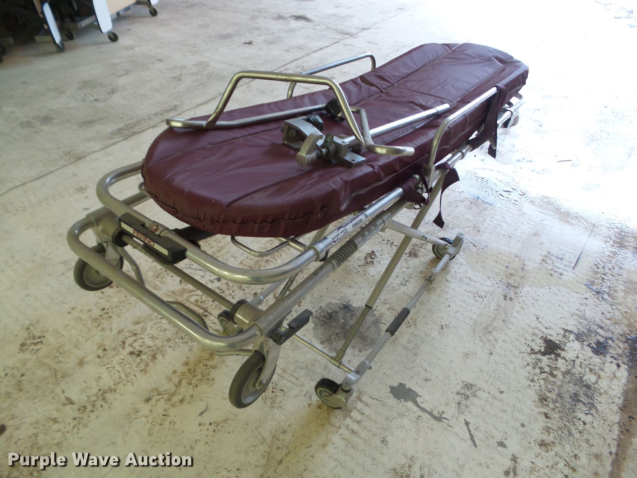 Purple Wave is selling a used Medical Equip. in Iowa. This item is a Ferno 35-A gurney with the following: 500 lbs capacity