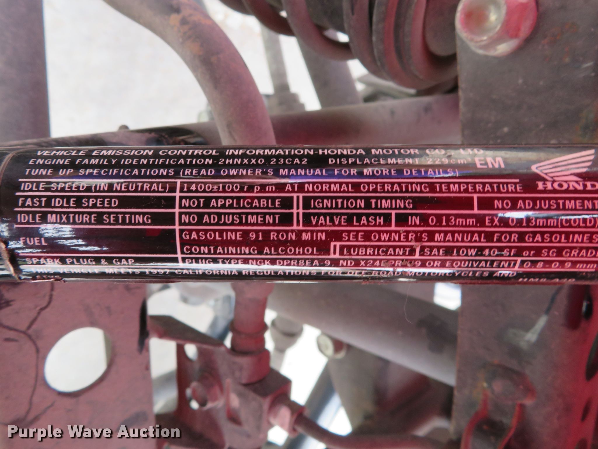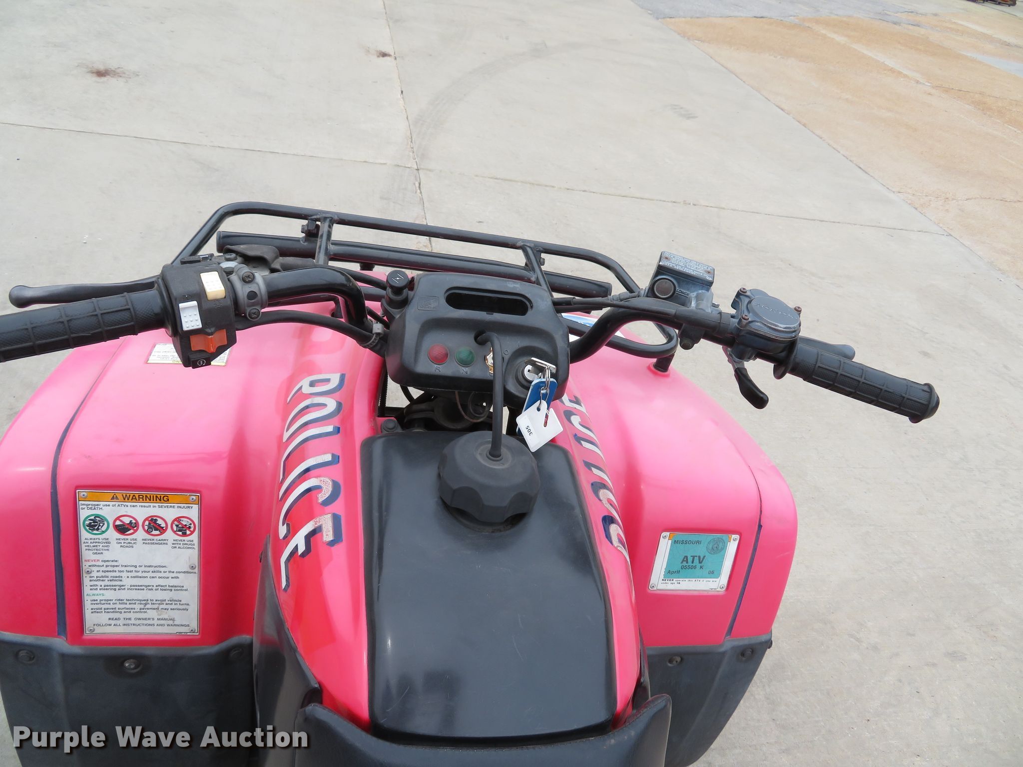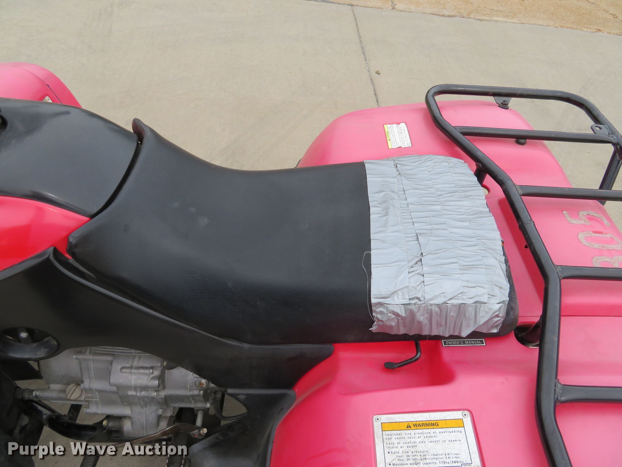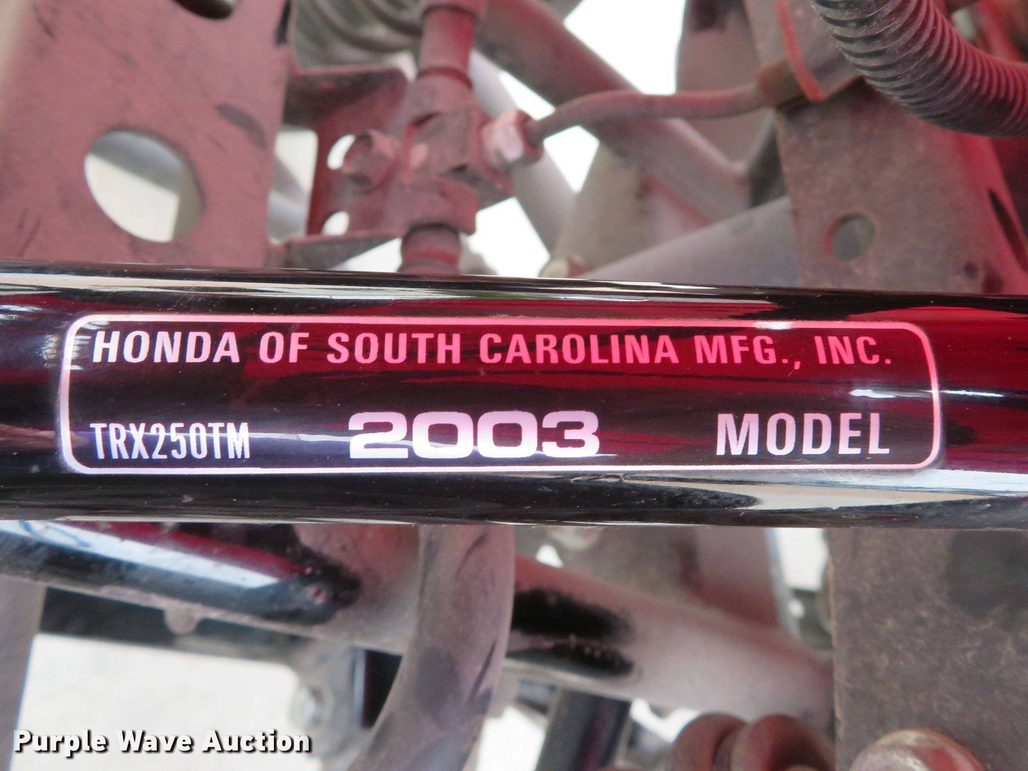 Purple Wave is selling a used ATV in Missouri. This item is a 2003 Honda TRX250TM ATV with the following: 229cc single cylinder gas engine, Automatic transmission, 21 x 7-10 front tires, 22 x 10-10 rear tires