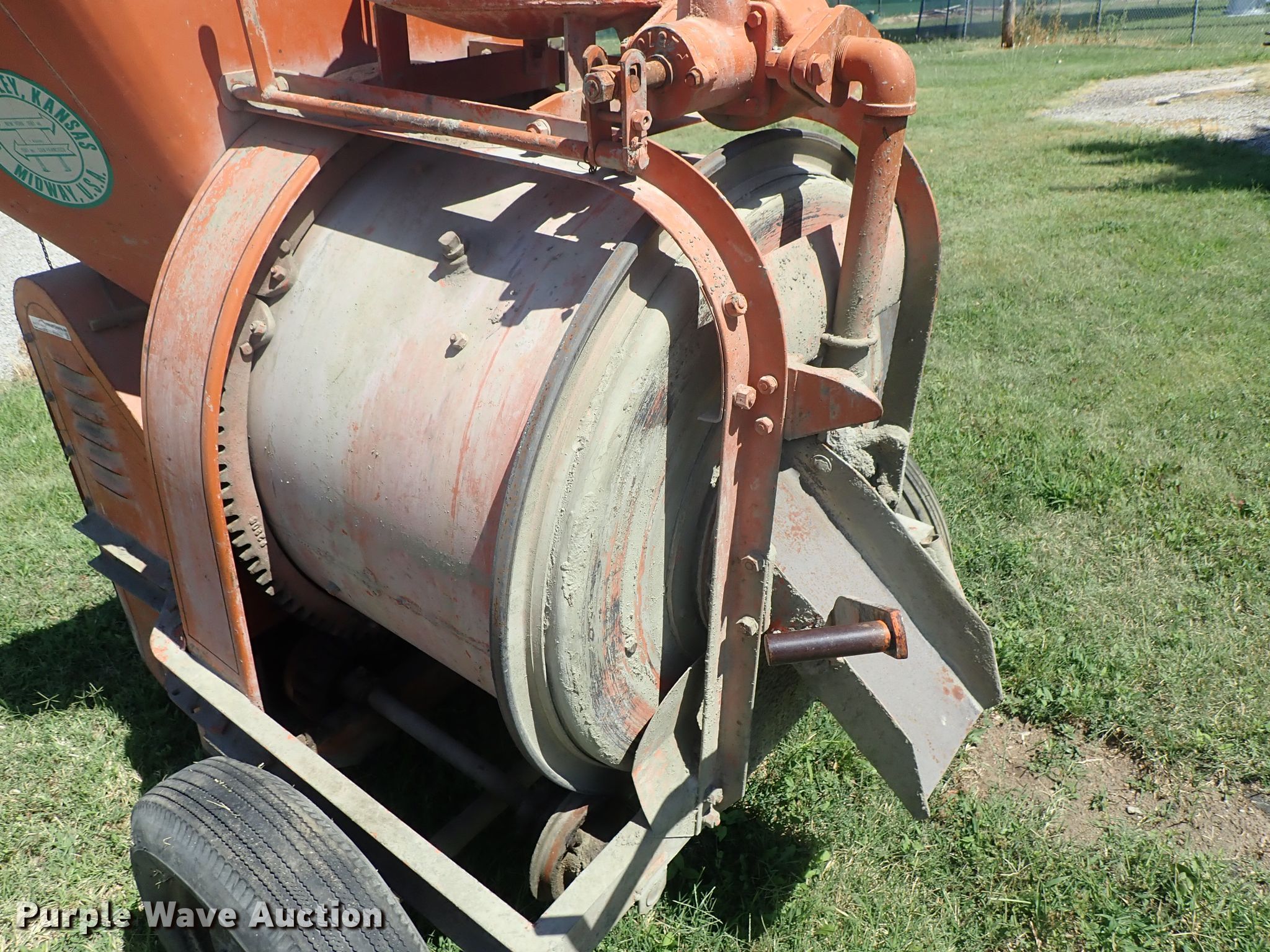 Purple Wave is selling a used Concrete Dispenser in Kansas. This item is a Cement mixer with the following: Wisconsin gas engine, 44" hopper, Pin hitch, 7.50-16 tires, Flat tires