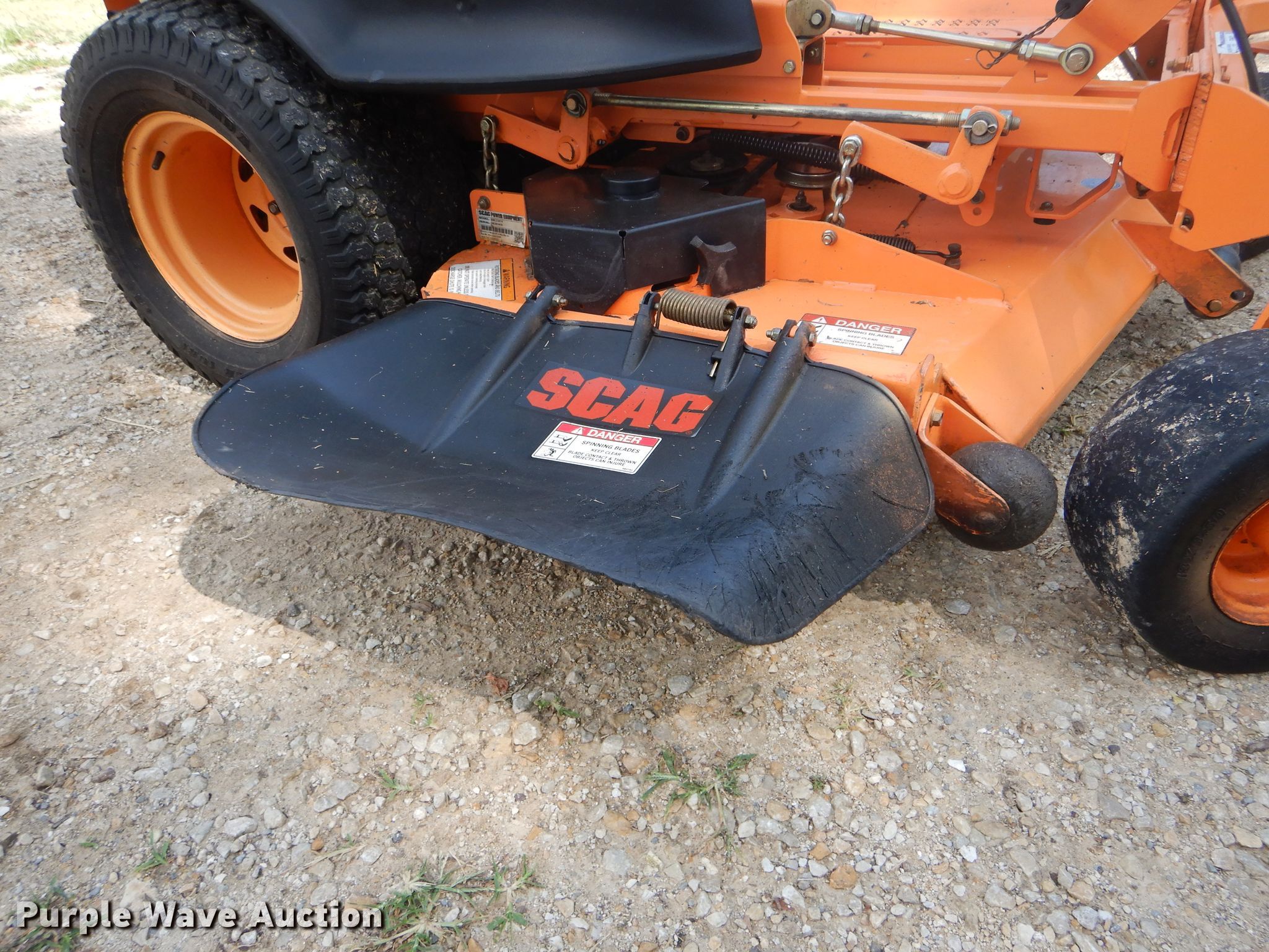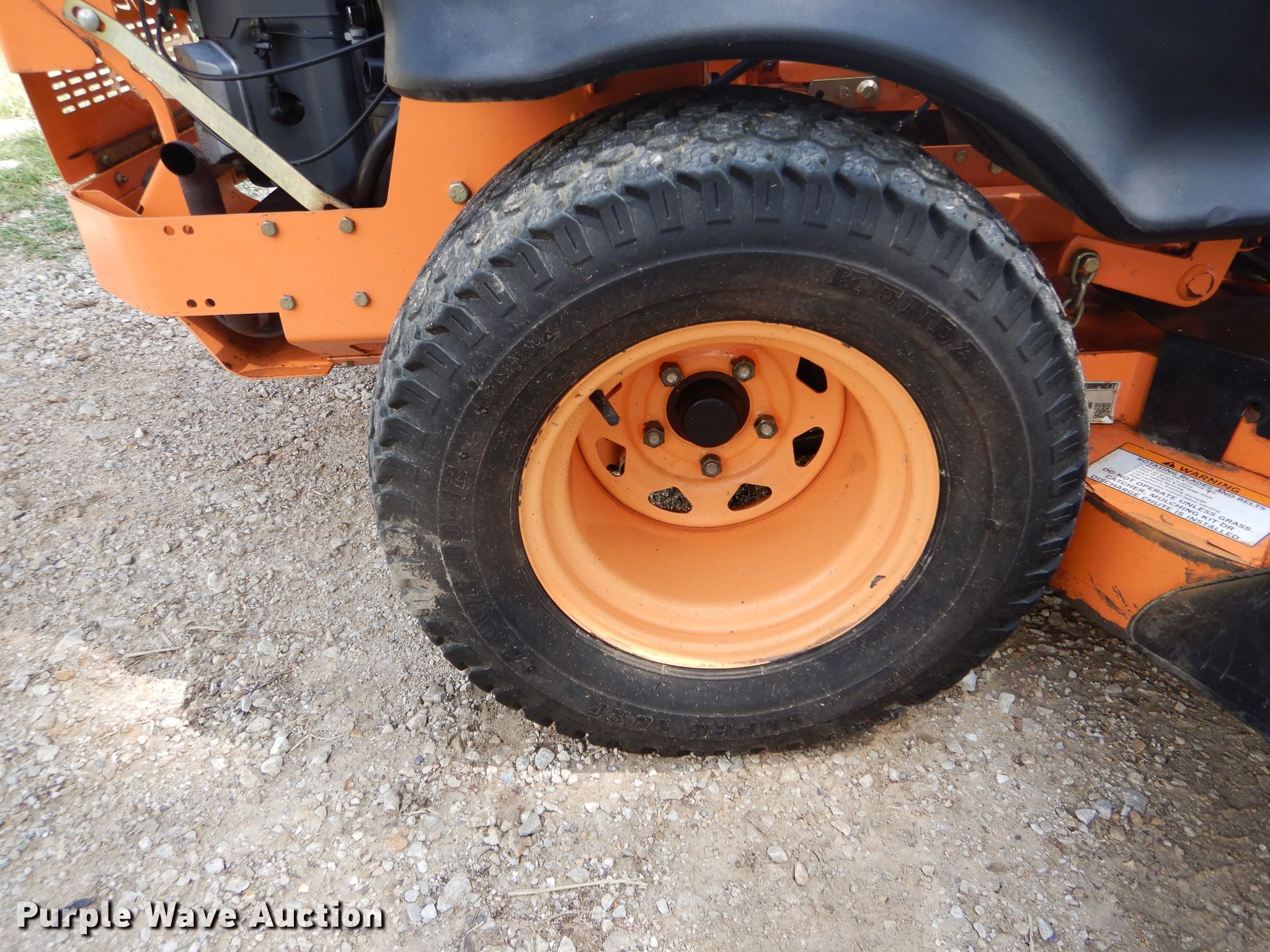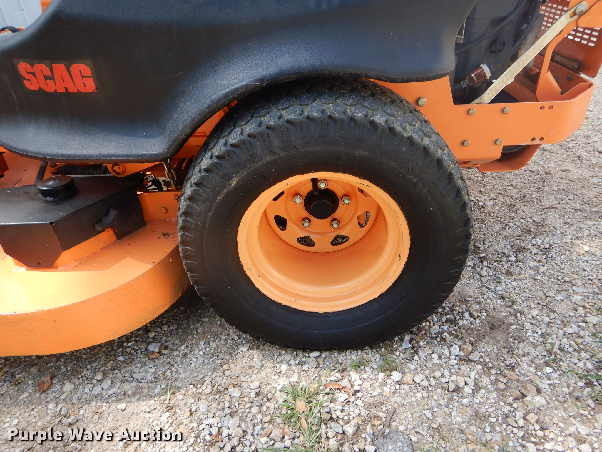 Purple Wave is selling a used Commercial Turf Mower in Missouri. This item is a Scag Cheetah ZTR lawn mower with the following: 928 hours on meter, 61" cut, Kawasaki two cylinder gas engine, Serial FX850VA48552, Hydrostatic transmission, Velocity Plus mower deck, 13x6.50-6/4.50 front tires, 24x12.00-12 rear tires, Serial H7501765