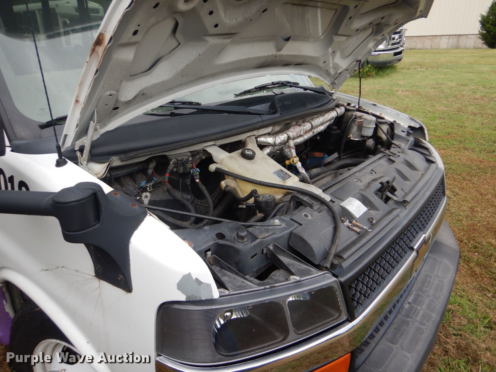 Purple Wave is selling a used Bus in Oklahoma. This item is a 2010 Chevrolet Express G4500 shuttle bus with the following: Unknown miles on odometer, 6.0L V8 OHV 16V FFV gas engine, Automatic transmission, Single axle, AC and heat, Electric passenger sliding door, 11 passenger capacity, Spring suspension, Hydraulic brakes, 159" wheelbase, Firestone LT225/75R16 tires, GVWR 14,000 lbs, No battery, Non-operational unit
