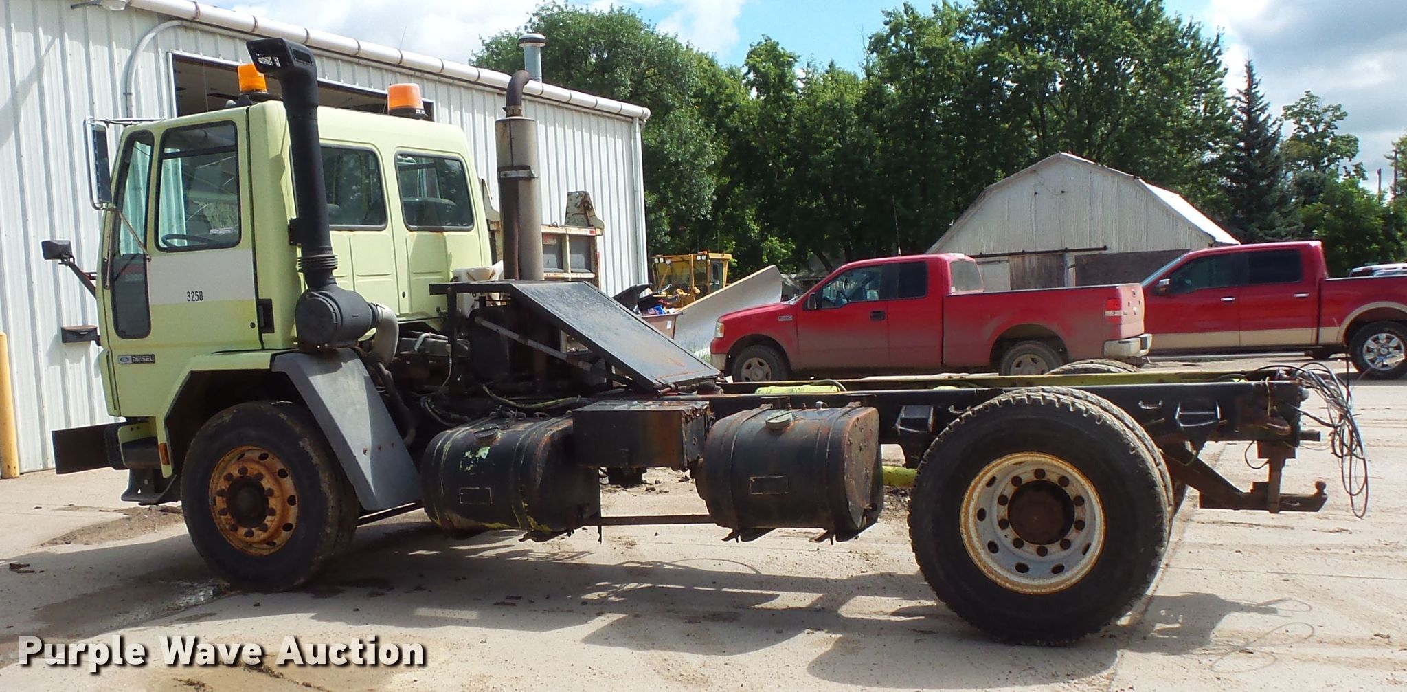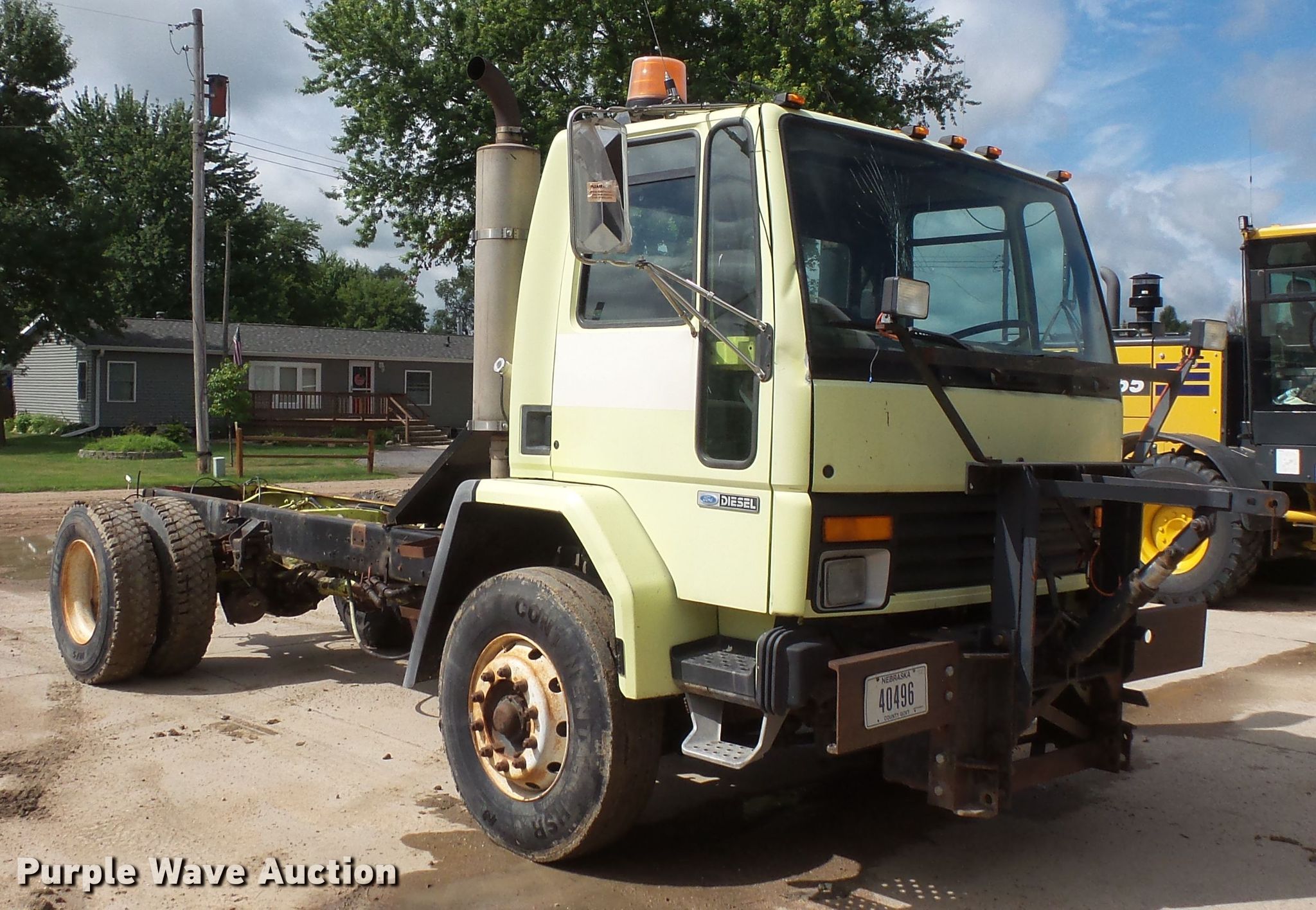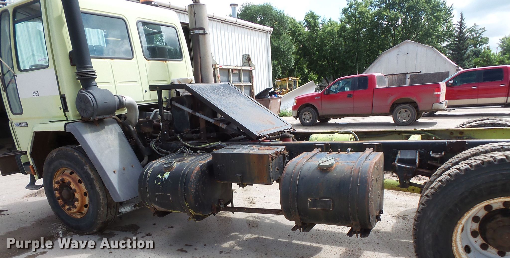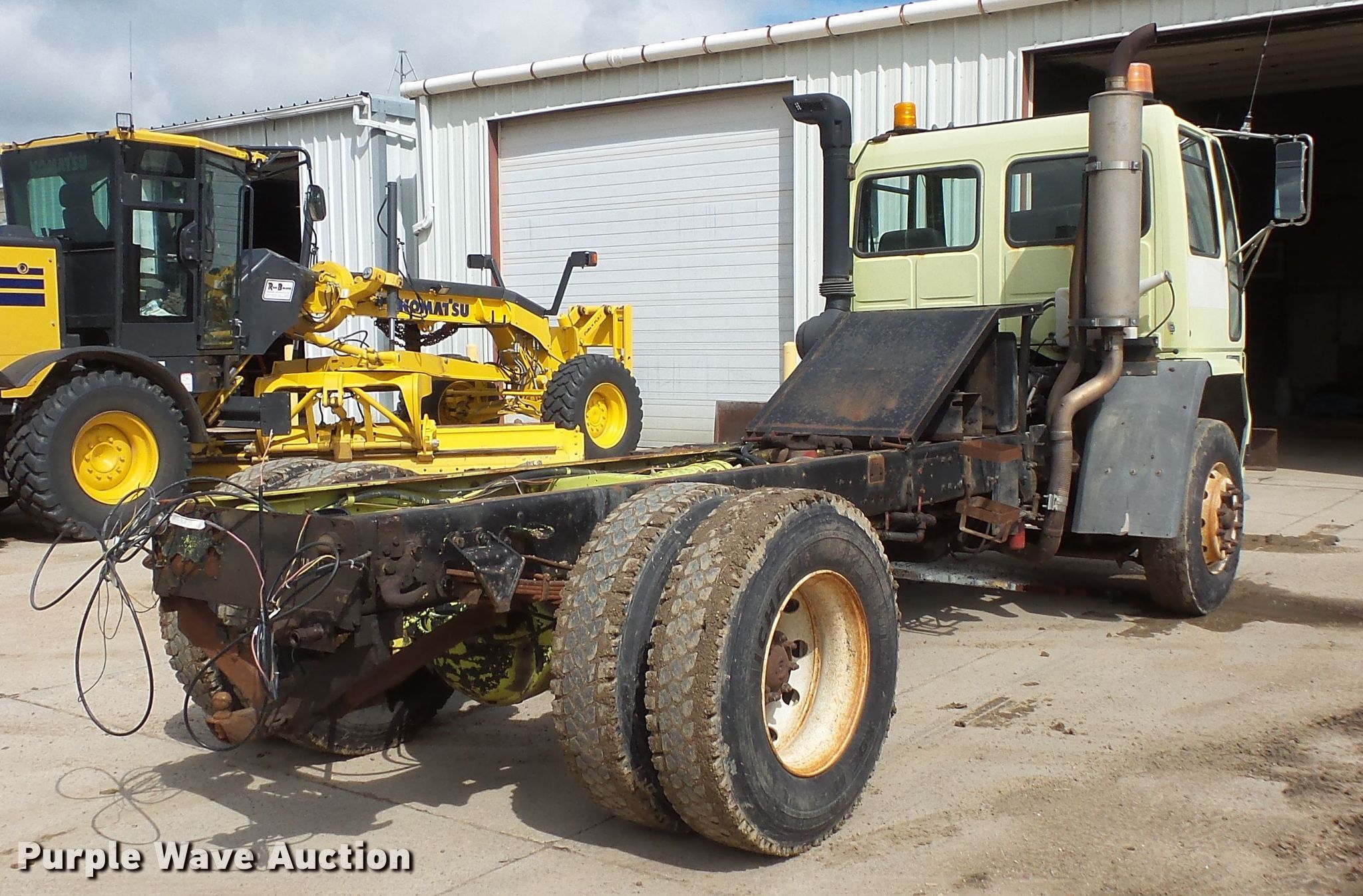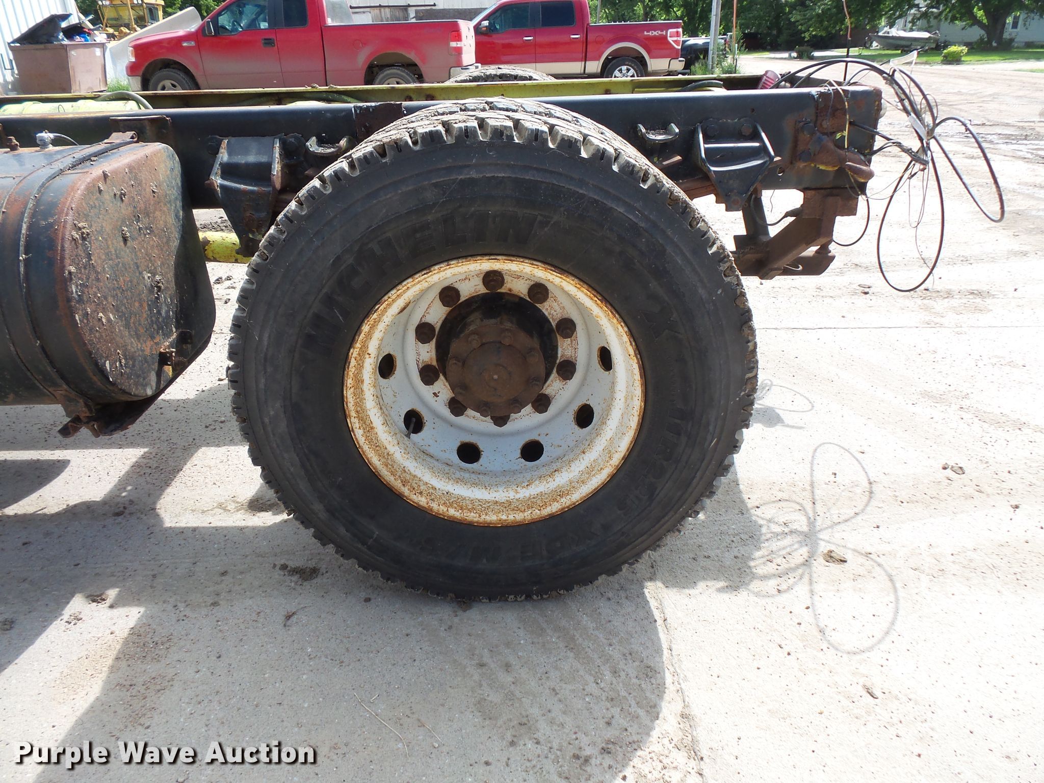Purple Wave is selling a used Truck Chassis in Nebraska. This item is a 1992 Ford CF8000 truck cab and chassis with the following: 32,720 miles on odometer, 5,120 hours on meter, 7.8L L6 diesel engine, Automatic transmission, Single axle, Heat, Electric plow lift, Spring suspension, Air brakes, 171" wheelbase, 11R22.5 tires, Cracked windshield, No taillights